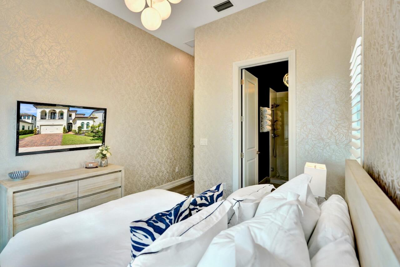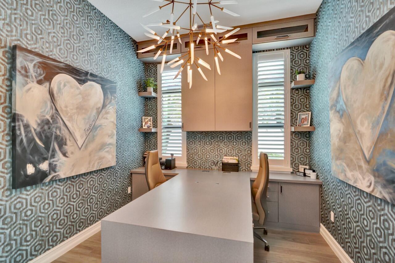 Welcome to Your Dream Home in Palm Meadows Estates!This exquisite 4BR / 4.5BA Provence Model with a dedicated office and spacious loft offers over 3,200 sq. ft. of pure luxury. Professionally decorated from top to bottom, this home features high-end upgrades including plantation shutters, designer lighting, elegant trims, custom built-ins, and premium carpeting. It truly shows like a model home- and will not disappoint!Step through upgraded glass double doors into a bright, open-concept living area with custom media cabinetry and an entirely upgraded chef's kitchen. The main level also includes a luxurious primary suite, a home office with barn doors and integrated storage, a second ensuite bedroom, and a custom mudroom with built-in seating.
