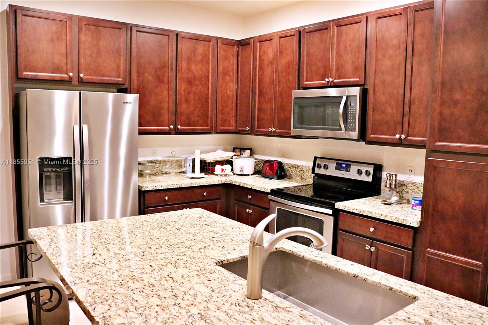 Beautifully maintained 3-bedroom, 2.5-bath townhome offering modern style and serene lake views. This spacious home features a sleek, updated kitchen with a large island—perfect for entertaining or casual dining. Enjoy peace of mind with impact windows and a newer 2018 roof. The open-concept layout flows effortlessly to the living and dining areas, while upstairs you'll find generously sized bedrooms and ample storage. Relax on the patio while taking in the tranquil lake views. Located in a gated community with fantastic amenities—this home has it all!