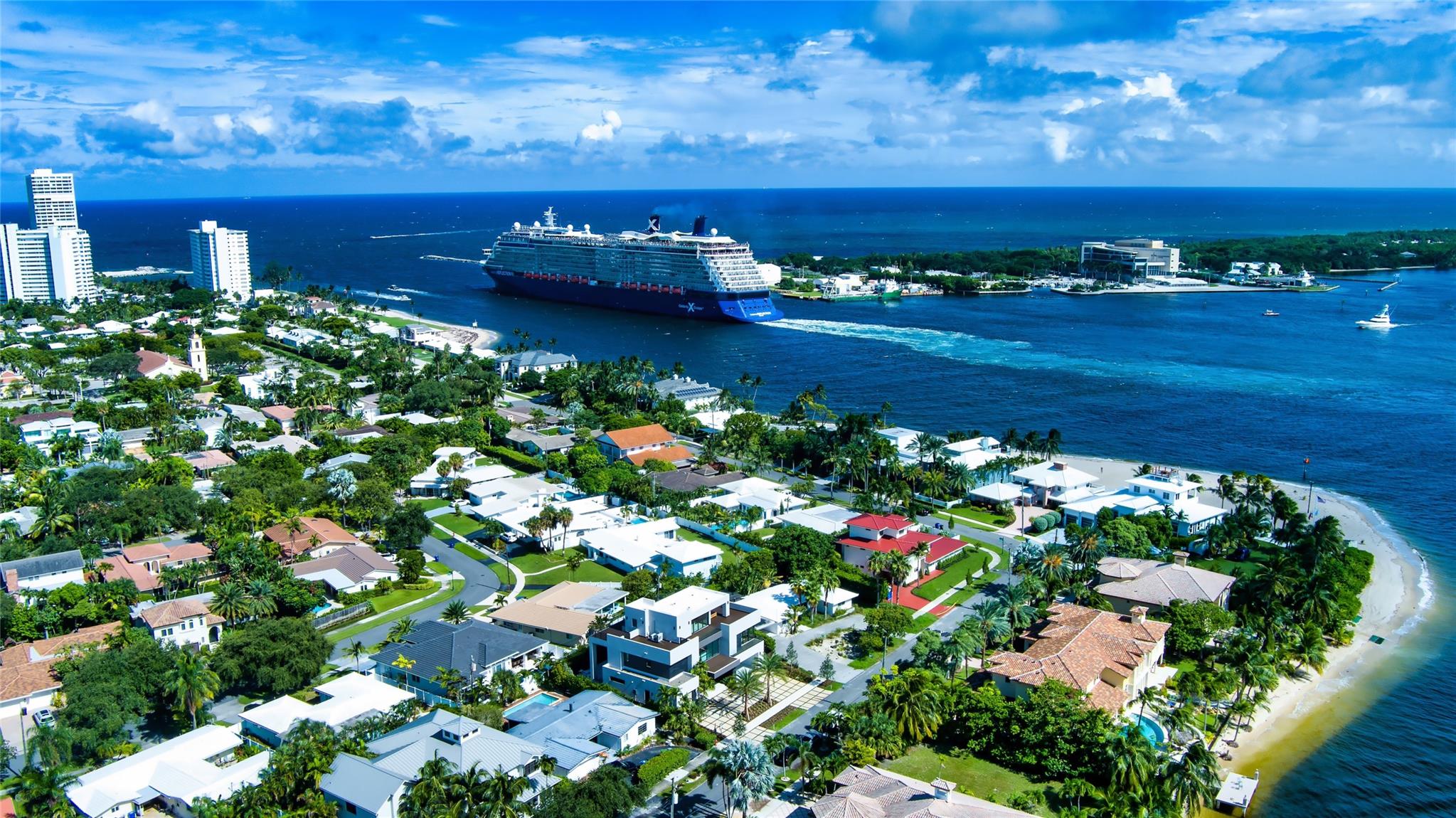 Unparalleled luxury with 360° VIEWS, 1,500 sq. ft. 3rd floor terrace. Newly completed four-bedroom, five-and-a-half bath masterpiece. Every detail has been thoughtfully crafted to enchant the most discerning buyer in this custom built home. Open, light-filled space where indoor and outdoor living blend seamlessly. The gourmet kitchen, with top-tier appliances and a spacious island, invites you to entertain with ease. The main suite, a serene retreat, featuring a spa-like bath with views of the lush backyard and pool. Each bedroom offers an ensuite bath for ultimate privacy. The third-floor walk around Sky Lounge with a full bath, could be a bedroom. Outdoor living shines w/2 outdoor kitchens, covered patio, and pool—perfect for coastal living. Pier 66 Hotel & Restaurants only blocks away.