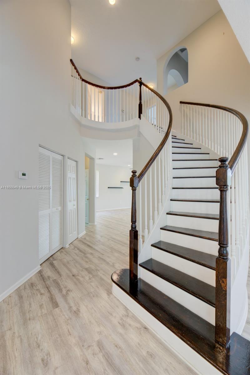 Fabulous two story home in a gated community in Riviera Isles with amazing lake view, 5 bedrooms /2.5 baths, two-car garage + 3 parking spaces. Volume ceilings and lots of natural light. Formal & separate dining / living room. Spacious kitchen with a large family room that overlooks the beautiful lake area and Great Backyard. Master bedroom on the second floor. Club House with tons of amenities: tennis-basketball courts-pool-gym. Close to I-75-Schools-Hospitals-Dining-Malls-Airports.
