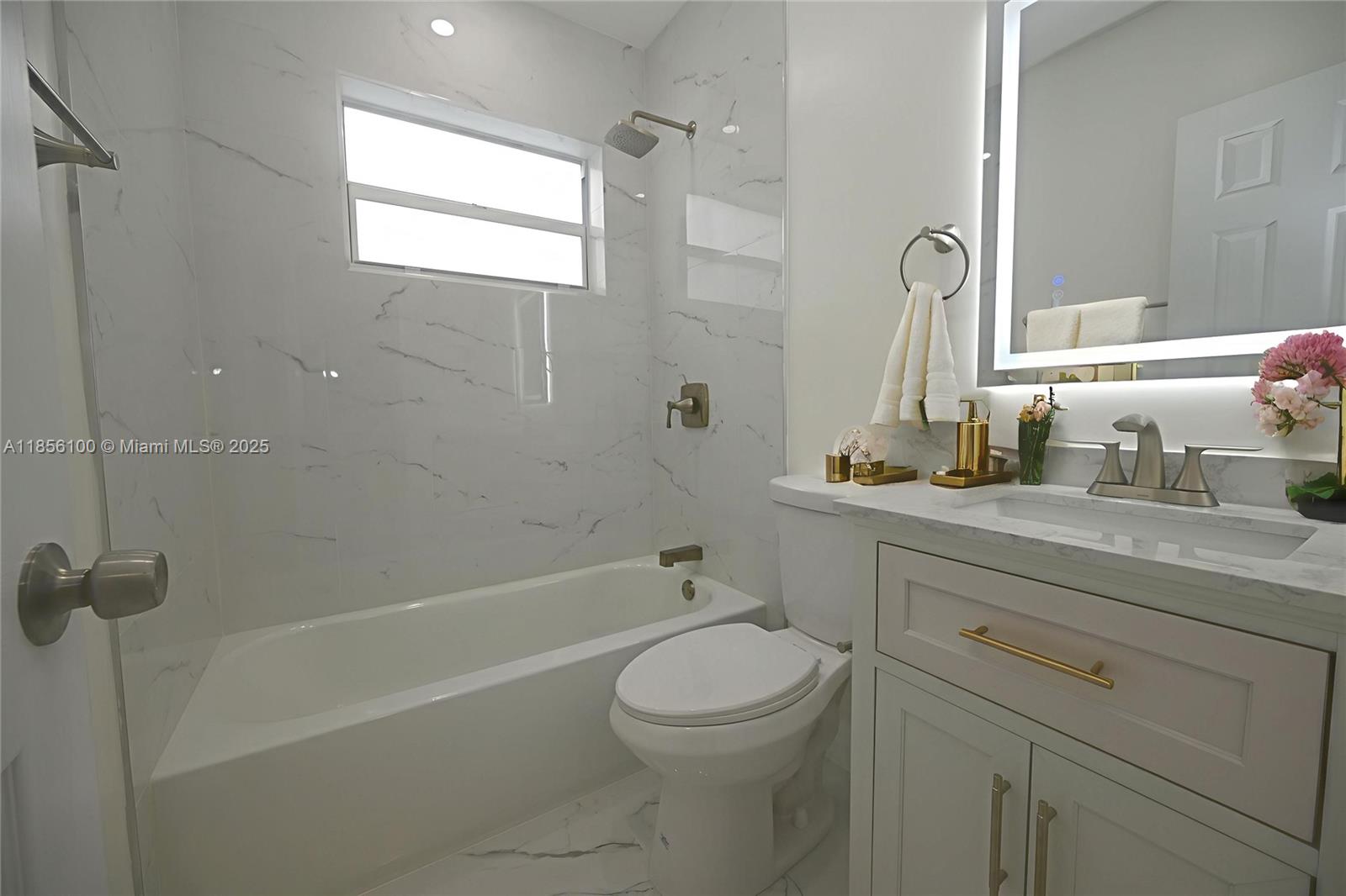 Charming and fully remodeled 2-bedroom, 2-bathroom single-family home situated on a spacious corner lot. Features a brand new A/C unit, impact windows, beautiful kitchen, renovated bathrooms and tiled throughout. This home offers abundant natural light, a spacious yard suitable for a pool or additional parking, and a one-car garage that can be customized into an in-law suite for rental income. Ideal for buyers seeking a move-in-ready property with versatile features and significant investment potential.