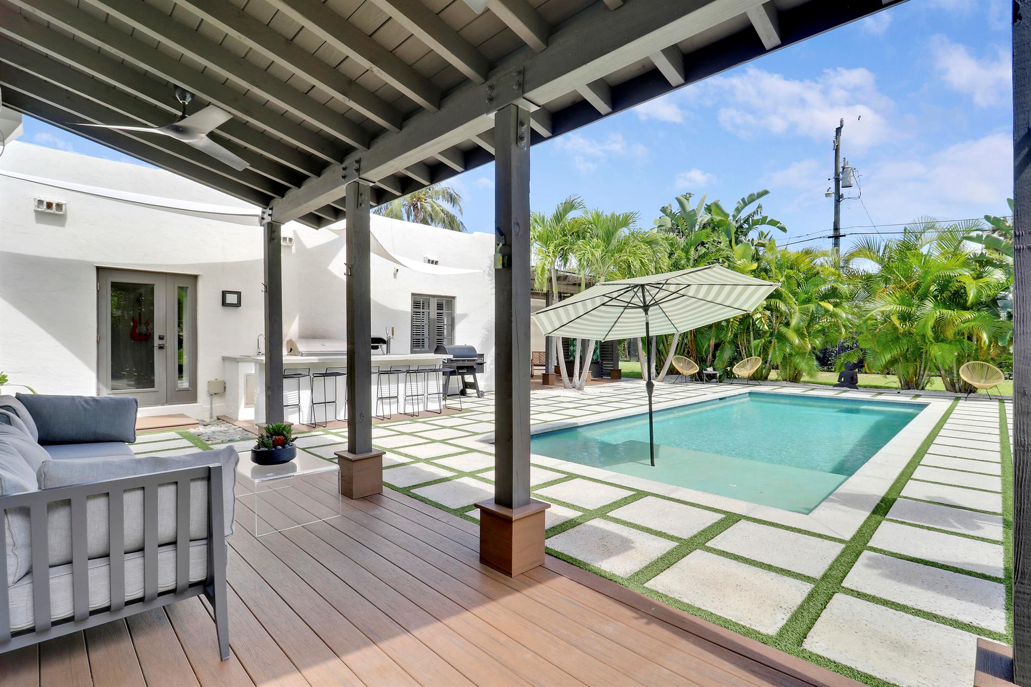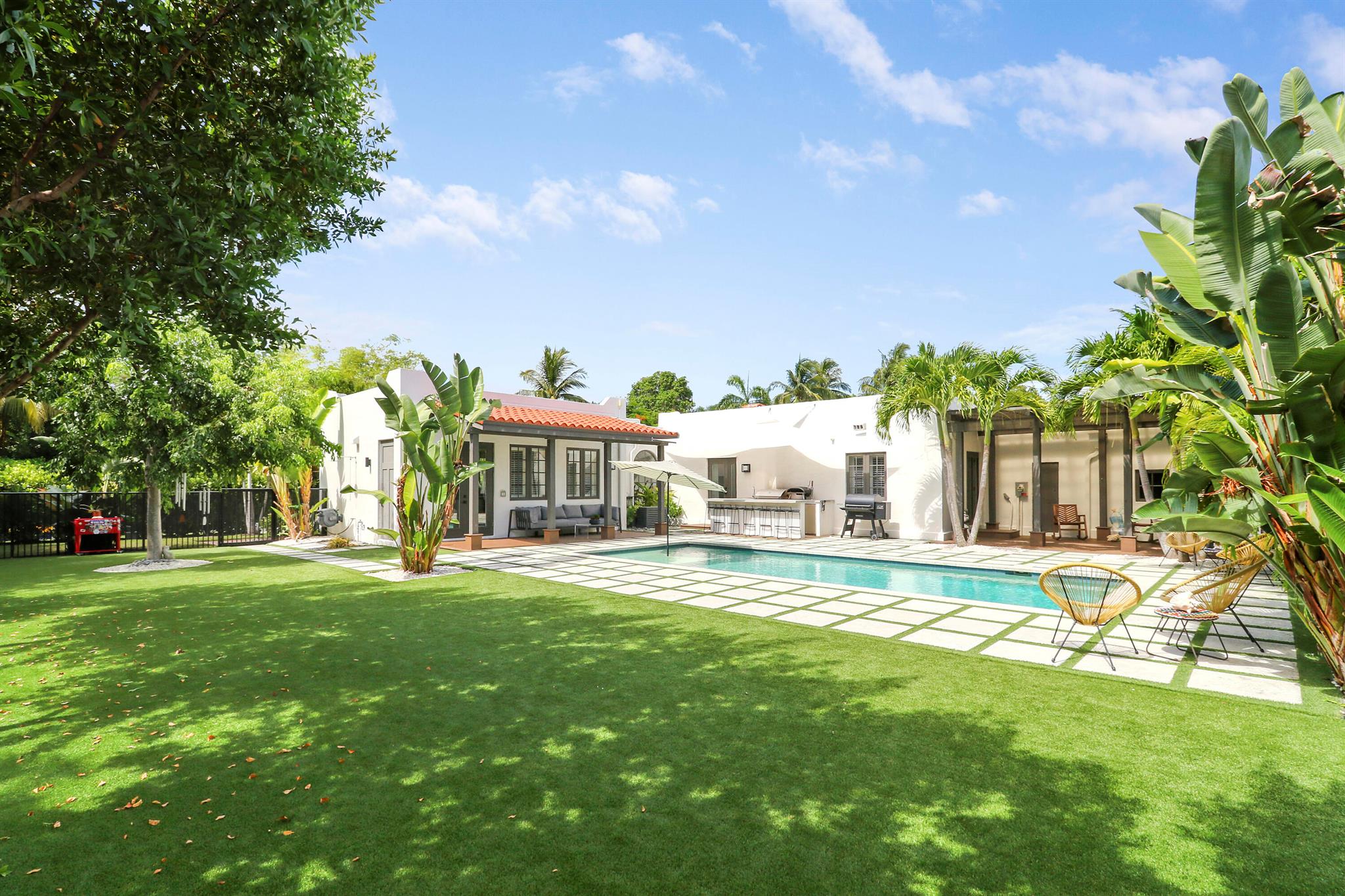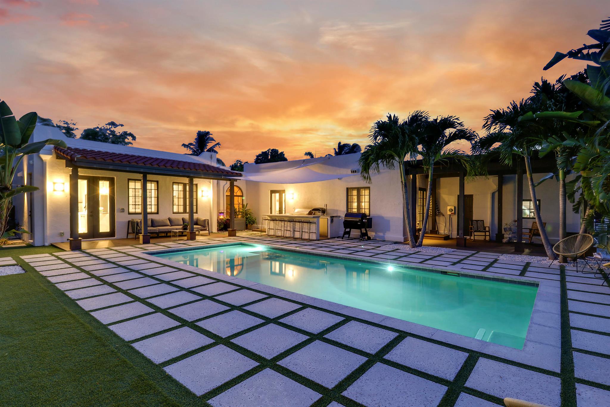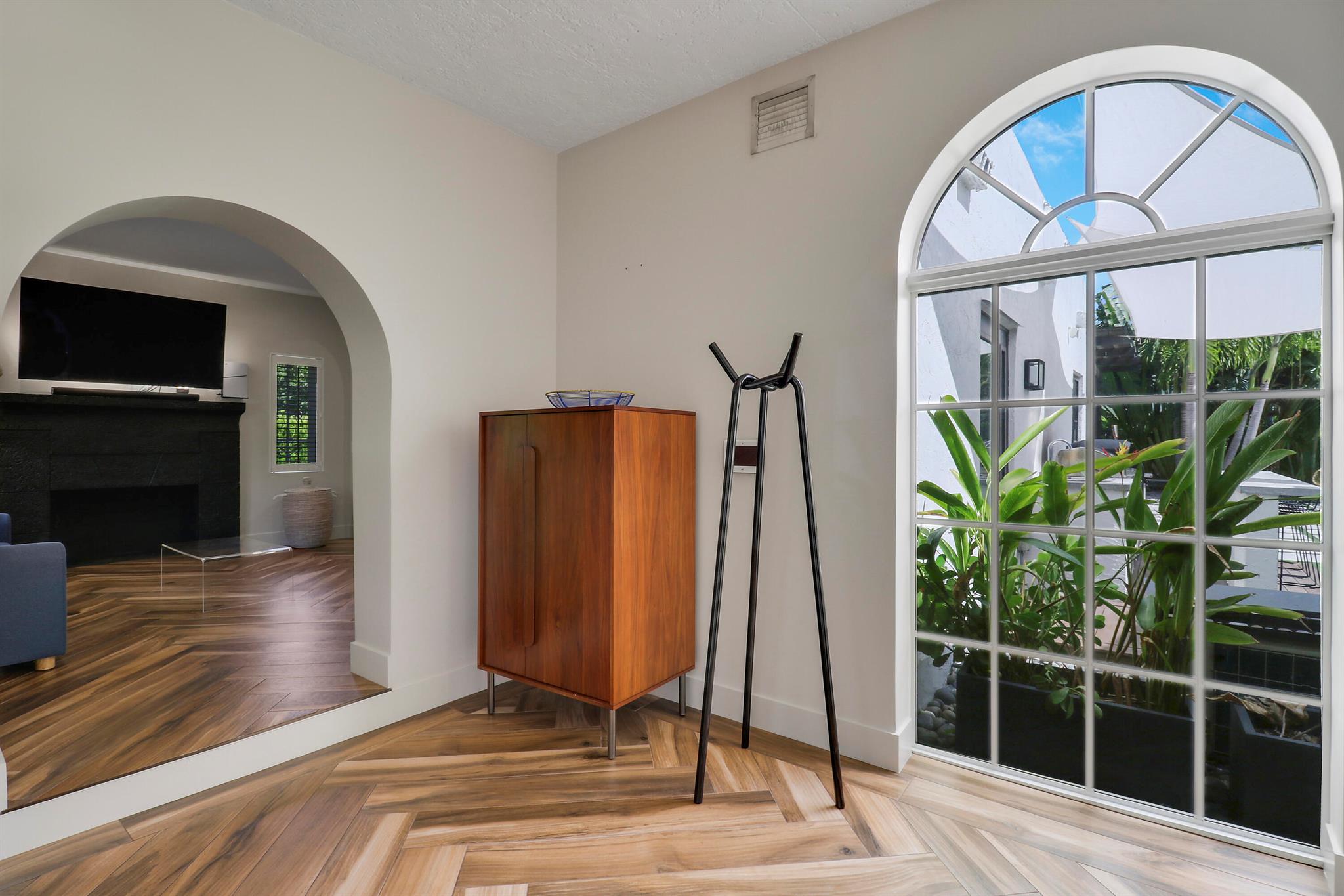Step inside this 1925 Spanish Mission home in West Palm Beach's sought-after Flamingo Park, where historic character meets a full scale renovation. Every major system--from electrical and plumbing to foundation, roof, and windows--has been replaced, offering peace of mind while preserving historic charm. Sitting on a rare double corner lot, there's plenty of room to add an extra wing to the home or detached suite. Inside, you'll find arched doorways and windows, natural wood beams, herringbone tile floors throughout, and the original fireplace--all thoughtfully keeping the home's character alive. The stunning chef's kitchen and beautifully designed bathrooms, along with recessed lighting and smart home features, make daily living easy and modern.