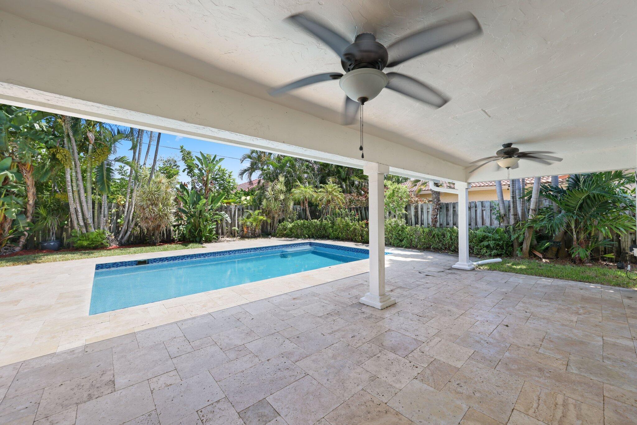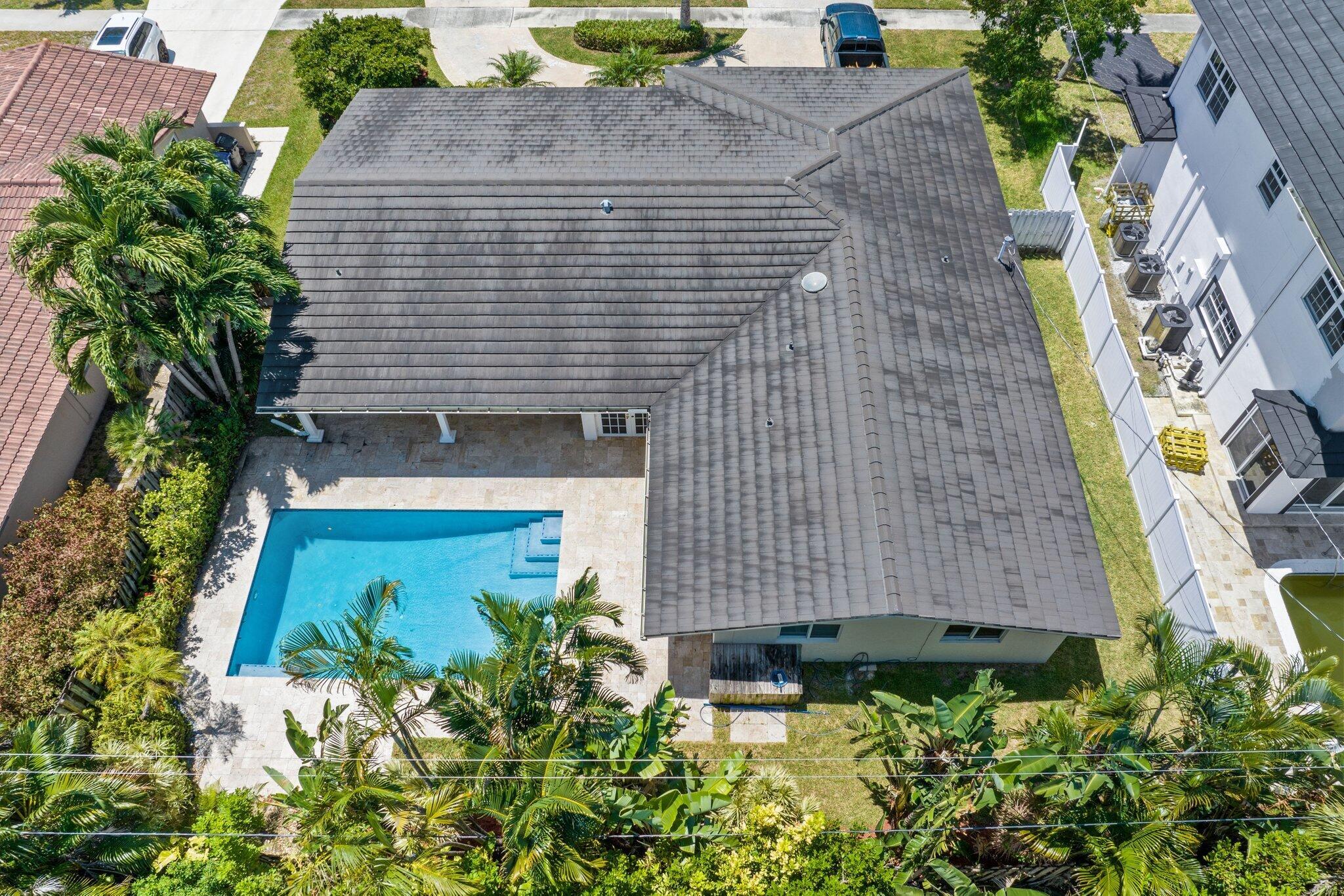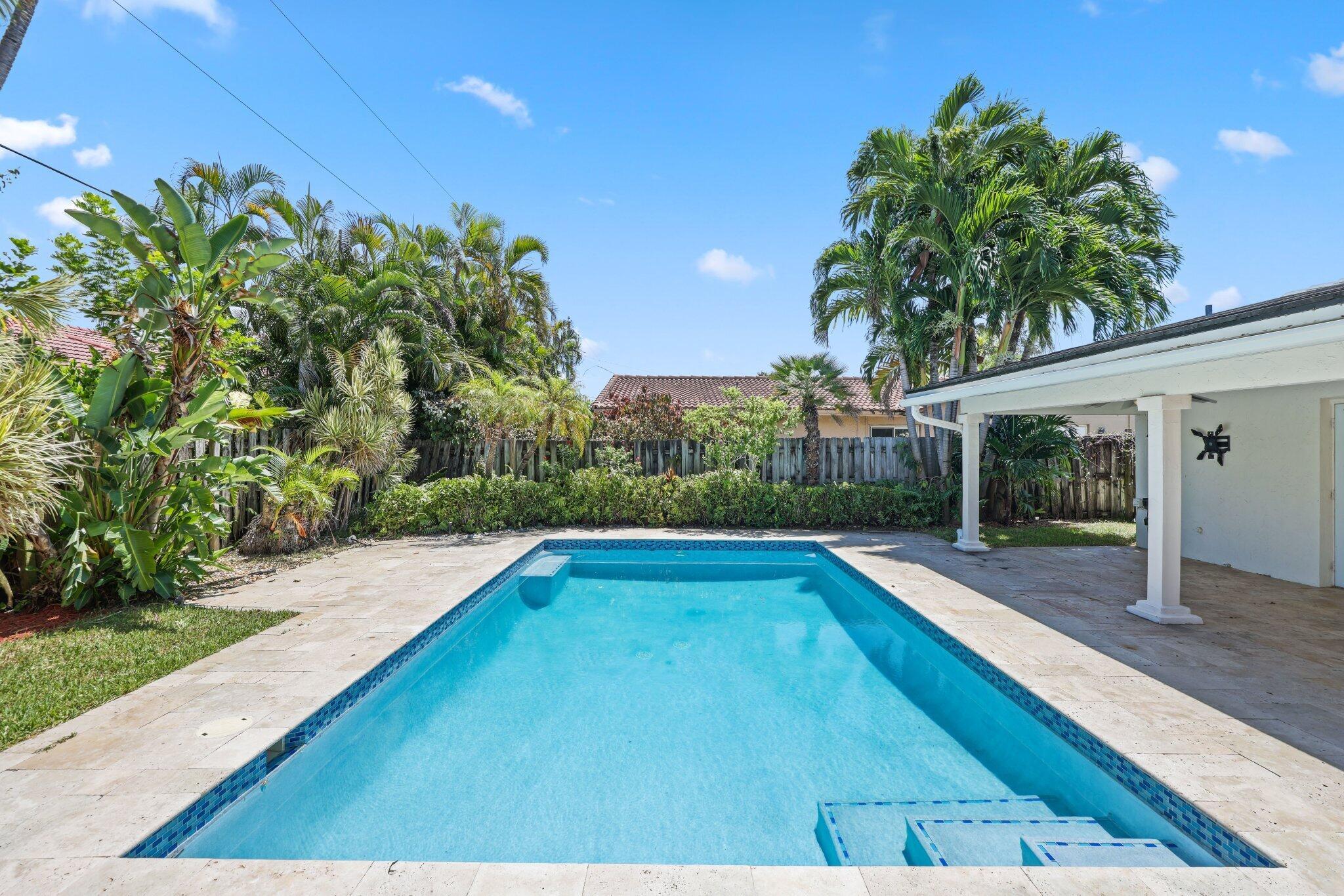 This beautifully maintained four-bedroom, two-bathroom split-bedroom home is located in the heart of Coral Ridge and offers exceptional style and comfort. At the center of the open-concept layout is a spacious kitchen featuring granite countertops and stainless steel appliances--both practical and functional, perfect for everyday living and entertaining. The home includes a formal family room at the front, along with a formal dining room, providing plenty of space for gatherings. Notable upgrades include a durable metal roof installed in 2020, along with hurricane impact windows and doors for added peace of mind. Step outside to your private outdoor oasis--an entertainer's dream--with a modern pool and elegant travertine flooring throughout the patio area. Make this exceptional home yours!