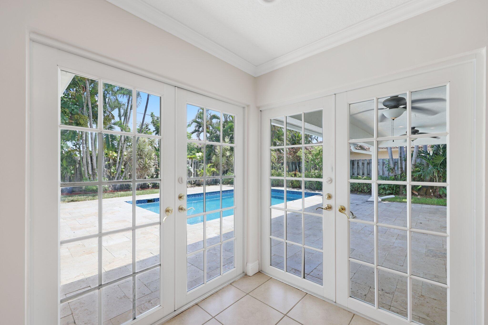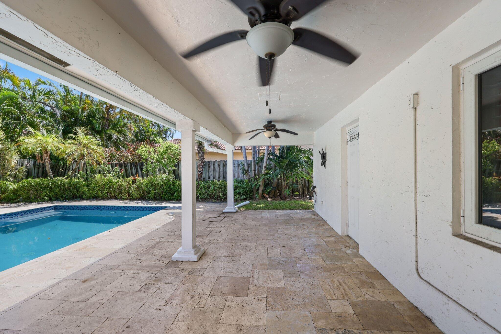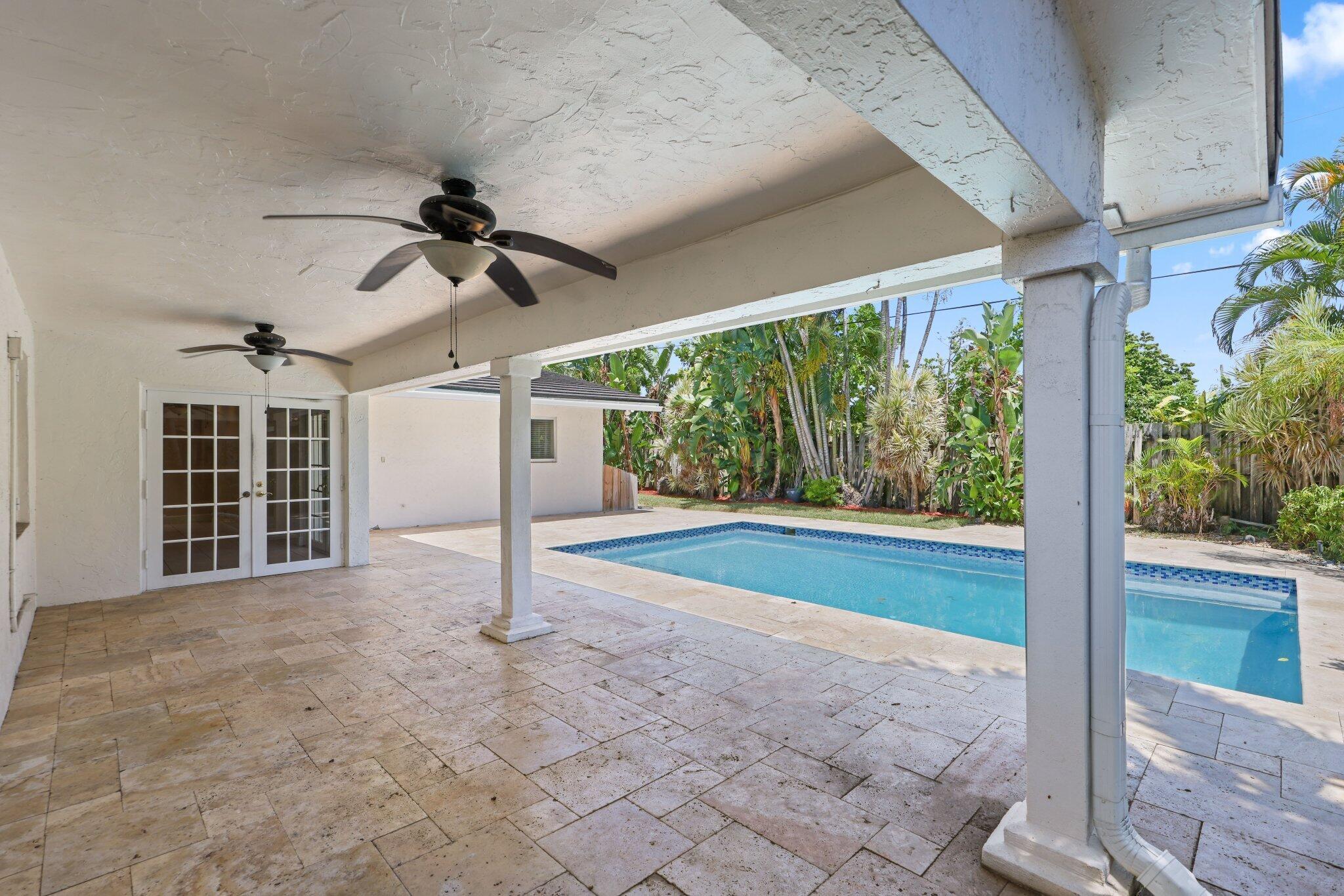 This beautifully maintained four-bedroom, two-bathroom split-bedroom home is located in the heart of Coral Ridge and offers exceptional style and comfort. At the center of the open-concept layout is a spacious kitchen featuring granite countertops and stainless steel appliances--both practical and functional, perfect for everyday living and entertaining. The home includes a formal family room at the front, along with a formal dining room, providing plenty of space for gatherings. Notable upgrades include a durable metal roof installed in 2020, along with hurricane impact windows and doors for added peace of mind. Step outside to your private outdoor oasis--an entertainer's dream--with a modern pool and elegant travertine flooring throughout the patio area. Make this exceptional home yours!