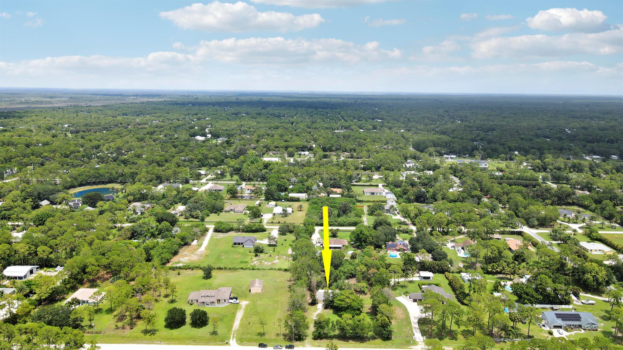 SERENE PRIVATE PROPERTY featuring 1.25 ACRES of LAND for your enjoyment in making this your home. NO HOA FEES which allows for endless opportunities for this property. This home is setback from the road with NICE TREES and a LARGE POND in the backyard. PLENTY OF SPACE for ENTERTAINING. This property features 3 bedrooms/2 bathrooms in a well desired area of JUPITER FARMS. SPLIT OPEN FLOORPLAN. BEAUTIFUL KITCHEN cabinets with upgraded countertops. DID I MENTION THE LARGE SCREENED IN PORCH OVERLOOKING THE BACKYARD POND as well as the PROPERTY HAS A BRAND NEW ROOF?