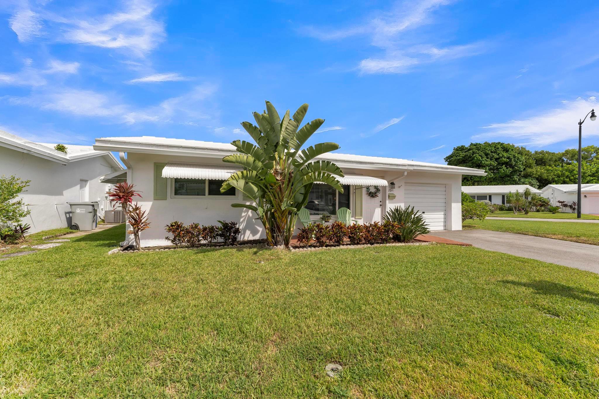 Peace of mind comes built- in with this beautifully maintained, 2 bedroom, 2 bath, gem on a huge corner lot in a vibrant 55+ community. Move right in and enjoy the many major updates. Upgraded second bath 2023, new A/C 2022, impact windows 2024 with stylish old Florida charm window awnings. New roof 2019, energy efficient Simpson roof coating 2022, upgraded double driveway leading to your 1 car garage. Relax in the bright Florida room, leading to your private outdoor patio. Take advantage of this active community, golf, 2 pools, clubhouse, classes, shuttle and so much more. Community is centrally located close to all Pompano Beach has to offer, shopping, casino, beach, wonderful dining, Pompano Pier. Community includes painting of house, lawn, landscape, water, so much more NO LAND LEASE