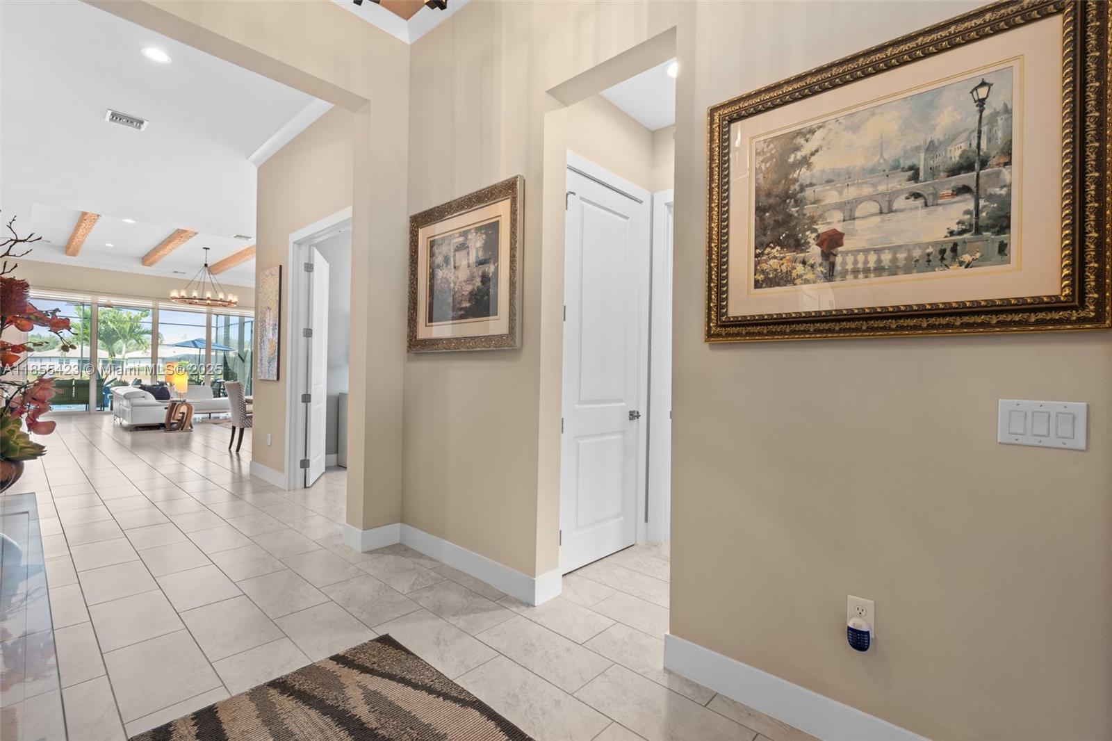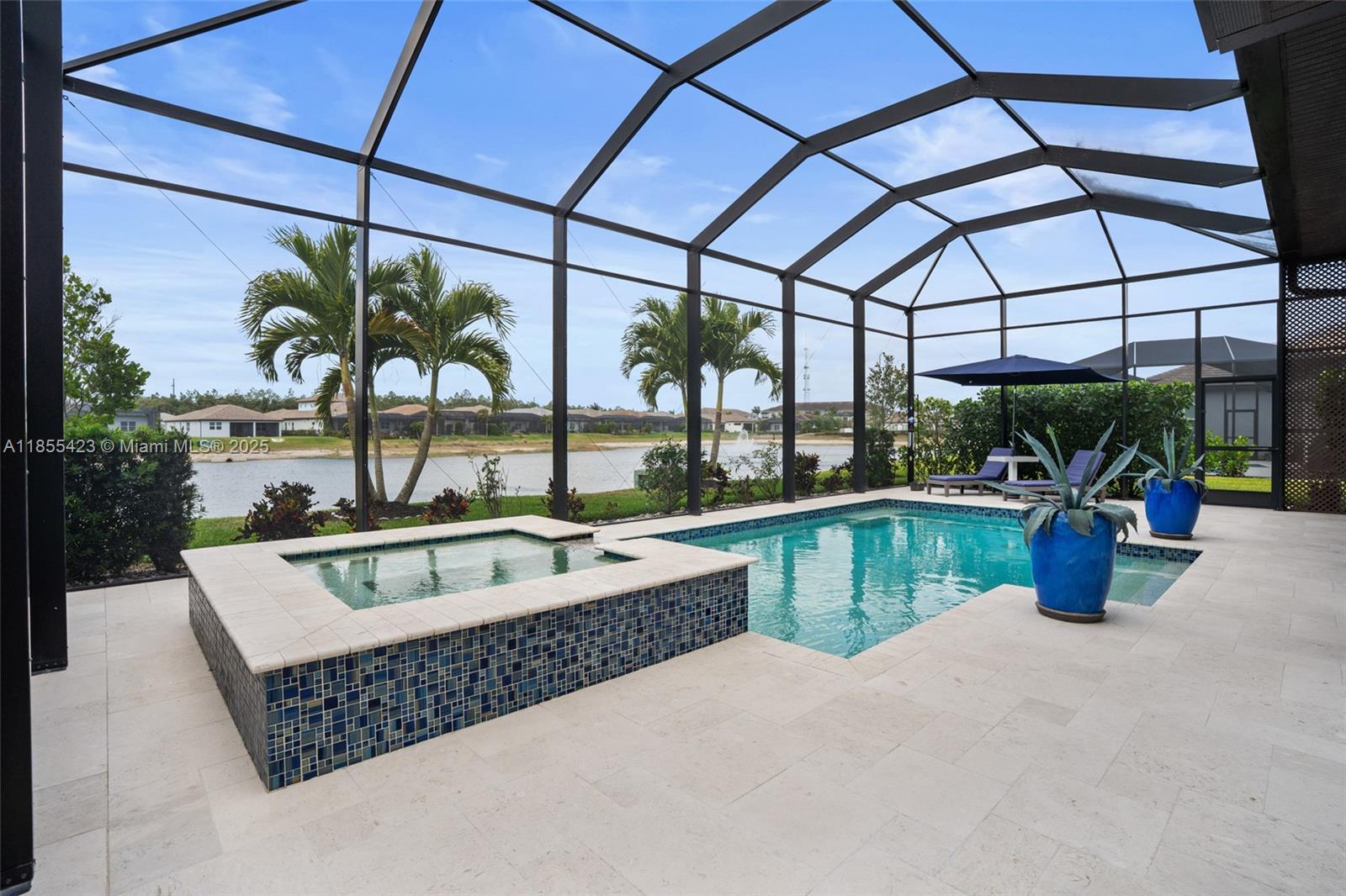This breathtaking lakefront sanctuary in Sapphire Cove offers a refined blend of elegance and comfort. Featuring 3 BR + Den, 3.5 baths, gourmet kitchen with granite countertops, KitchenAid appliances, and custom cabinetry. Soaring ceilings with designer beams lead to 10 FT pocket sliders and a resort-style lanai with outdoor kitchen, custom pool/ spa, and tranquil lake views. Additional highlights include impact windows/door, stone-accent fireplace, 3-car garage, and 360° security system. Located near US 41 - 5 mins to NCH, near I-75, 20 mins to Downtown 5th Ave, Marco Island and Mercato. This elegant, move-in-ready retreat in a gated, pet-friendly community delivers the exceptional lifestyle today's discerning buyer desires.
