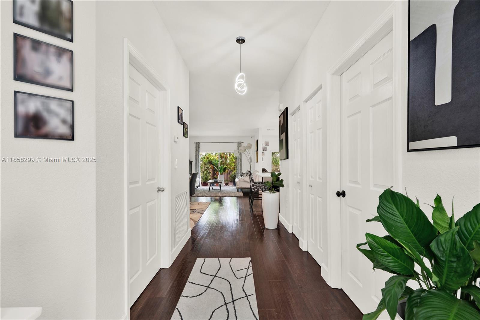 Step into this breathtaking 3BR/2BA one-story home in a quiet, gated community. This desirable corner unit welcomes you with stunning wood floors and abundant natural light flowing through the spacious living, dining, and family rooms. The updated kitchen boasts all updated appliances, perfect for everyday cooking and entertaining. The primary suite features a relaxing tub and separate shower. Enjoy the convenience of a 2-car garage and the beauty of a private patio filled with fruit trees—your own backyard oasis. Meticulously maintained and move-in ready, this home offers comfort, style, and privacy in a sought-after location close to shopping, dining, and major highways. A true gem that combines elegance and functionality—schedule your showing today!