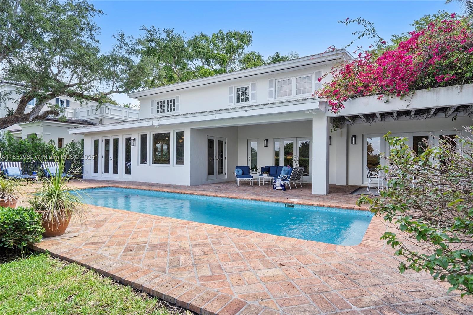 Experience luxury living in this distinctive Florida Tropical home designed by architect Walter S. Klements. Nestled within the historic Pioneer Village, a jewel in George Merrick's "City Beautiful" vision, this residence offers unmatched sophistication. Panoramic Riviera Golf Course views through oversized windows illuminate four bedrooms, four bathrooms, a large open kitchen, a spacious living room, and an expansive family room, perfectly blending historic charm with modern convenience. Indulge in resort living with a sparkling pool offering direct green access and a two-car garage. Now the lowest-priced home on prestigious Santa Maria Street, this architectural masterpiece awaits discerning buyers. A rare opportunity to own large-scale luxury in this highly coveted location!