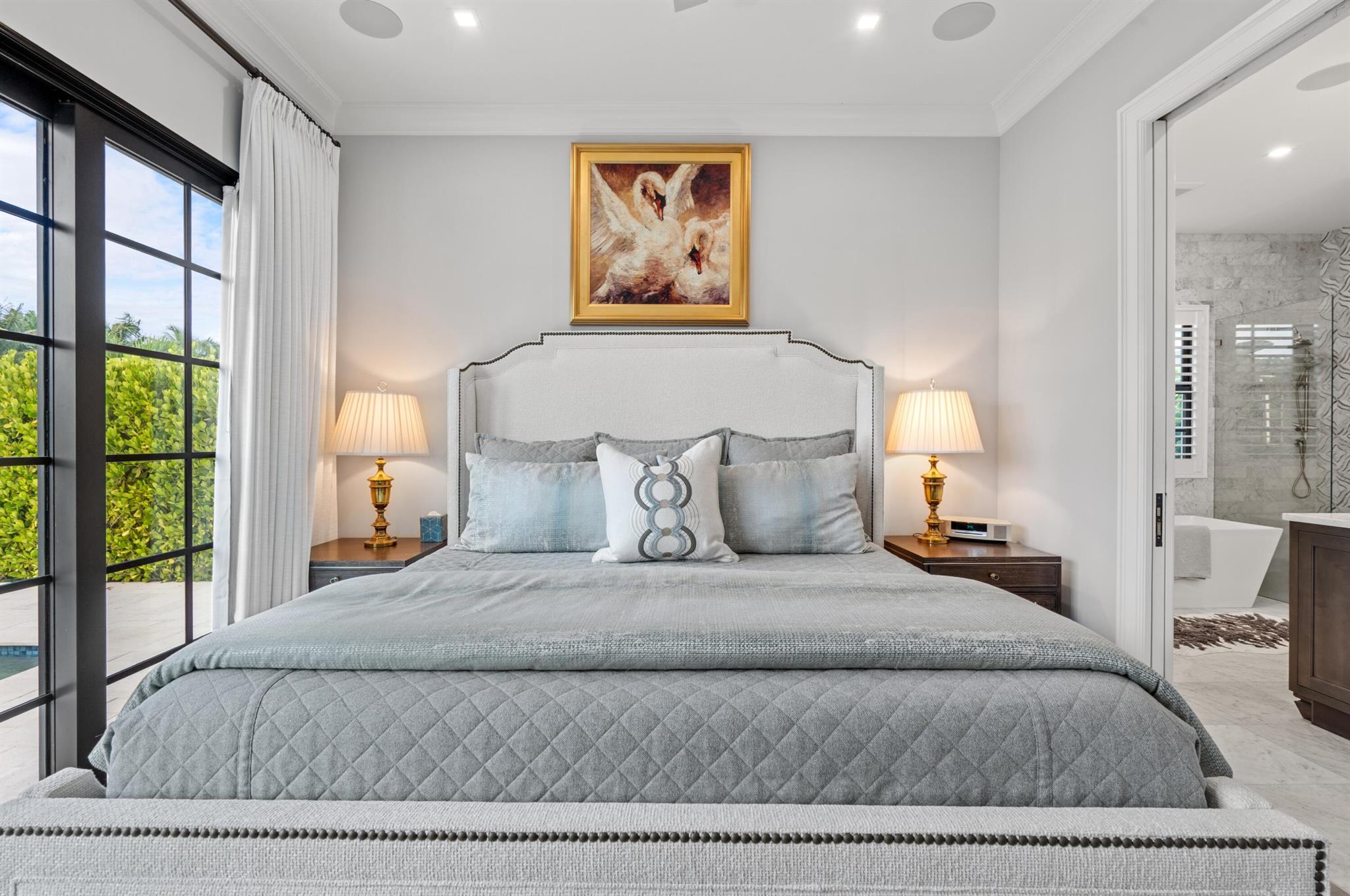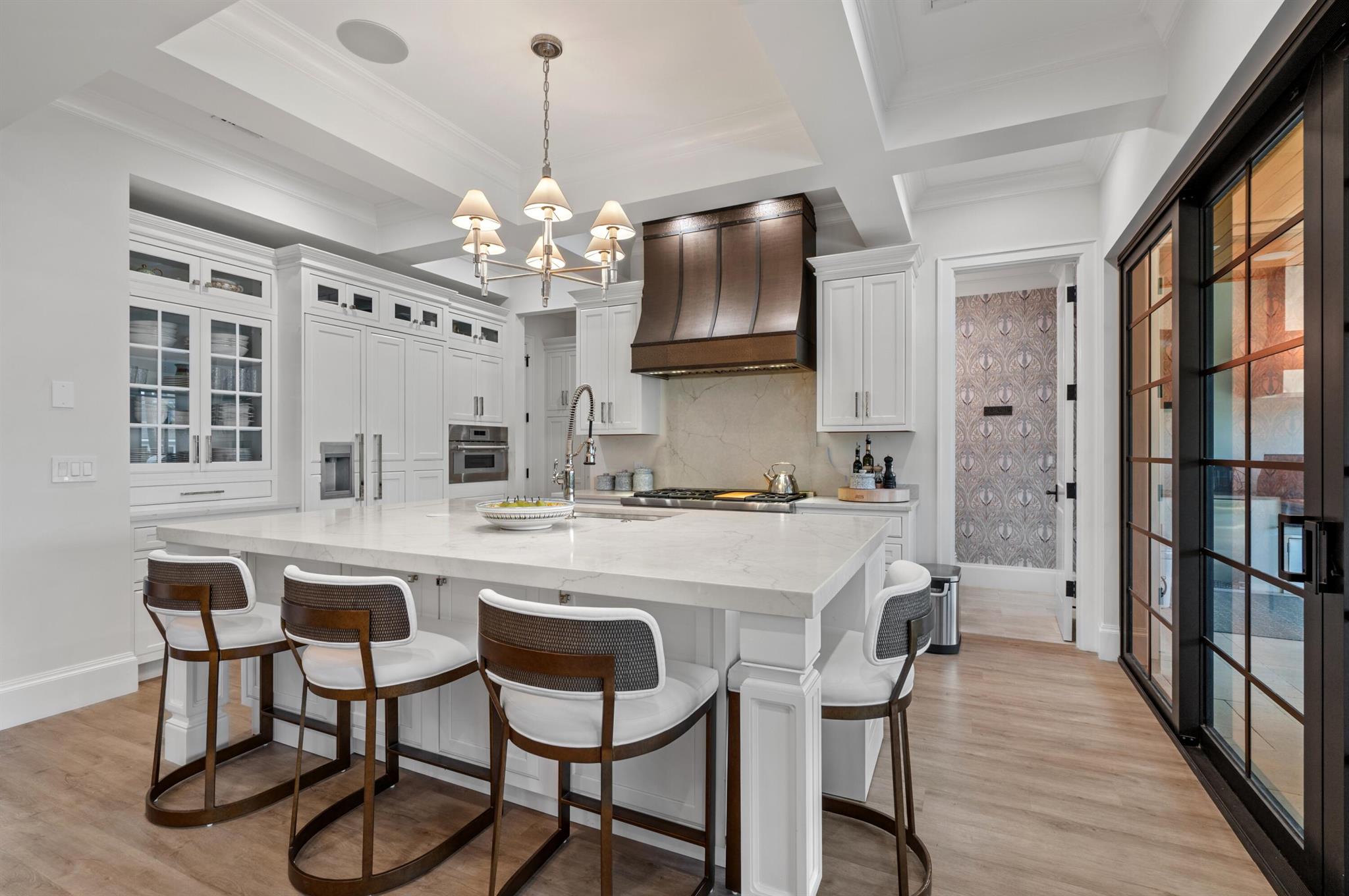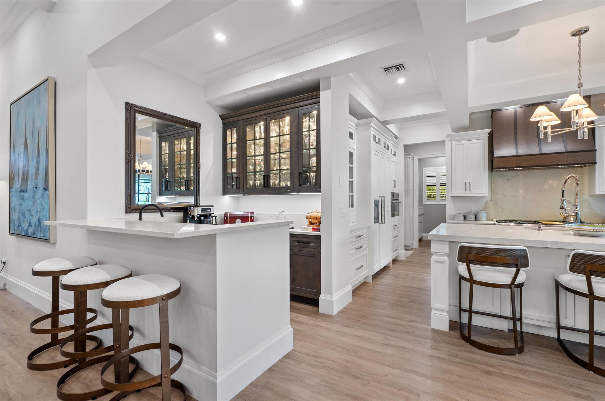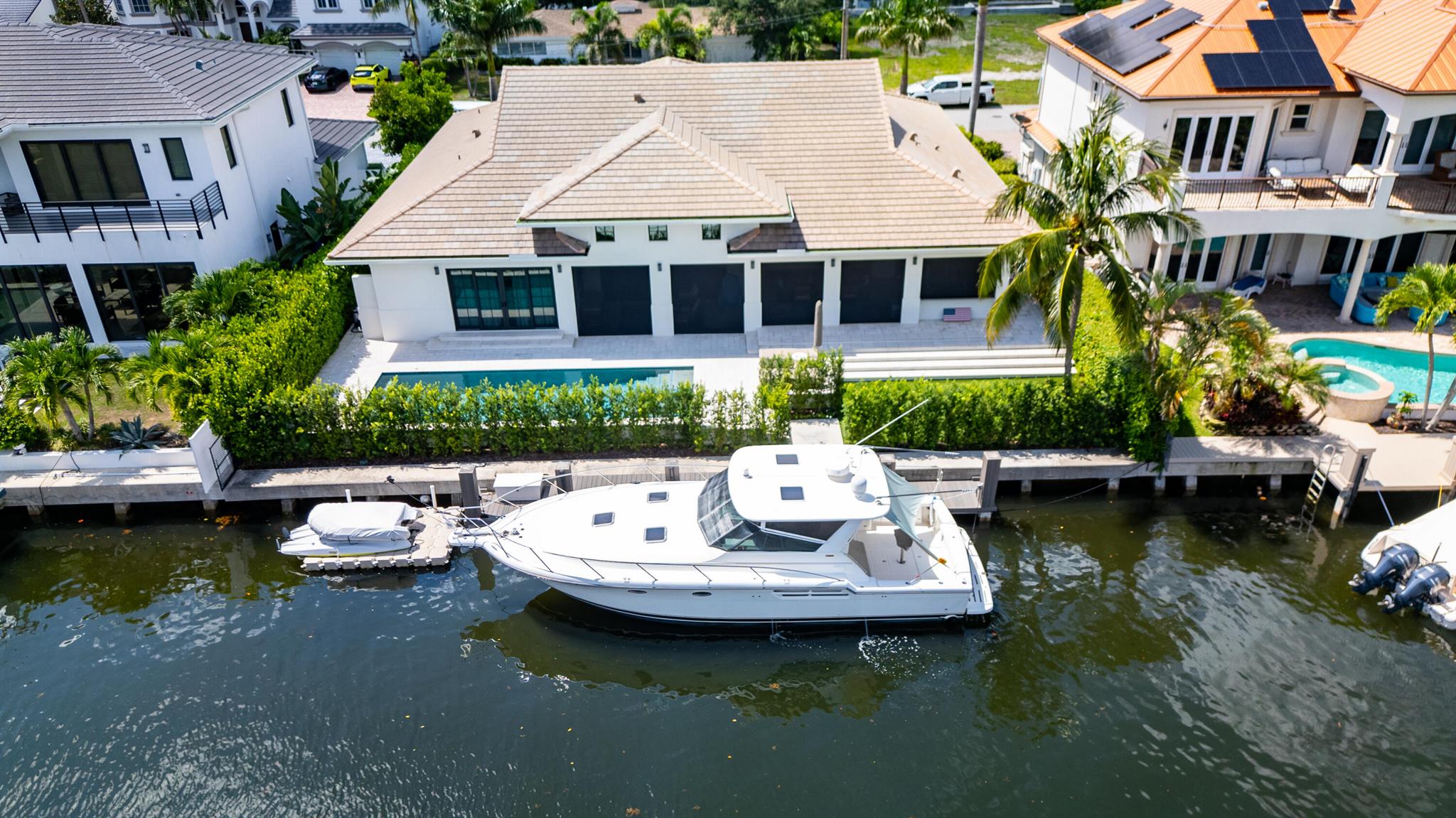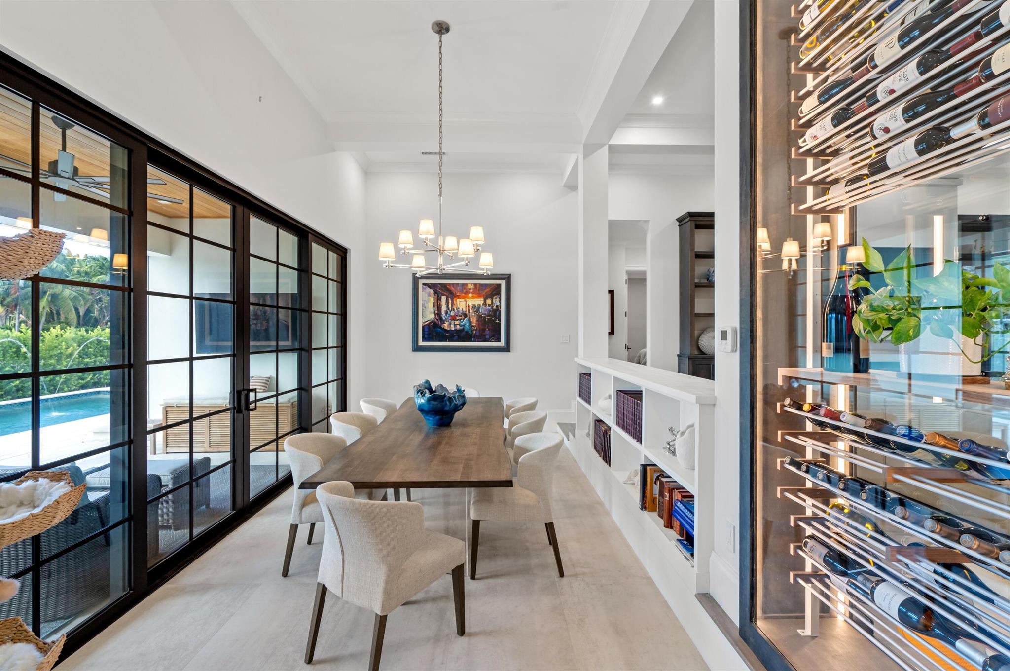 Chic 2022-built estate in desirable Tropic Isle, Delray Beach, offers 90 feet on a canal with a dock off the Intracoastal. Interior details include a chic living room with a linear gas fireplace and full bar, a stunning glass-encased wine display, gourmet cook-island kitchen with Thermador appliances, a luxurious pool-view primary suite, two offices and a poolside loggia and summer kitchen.