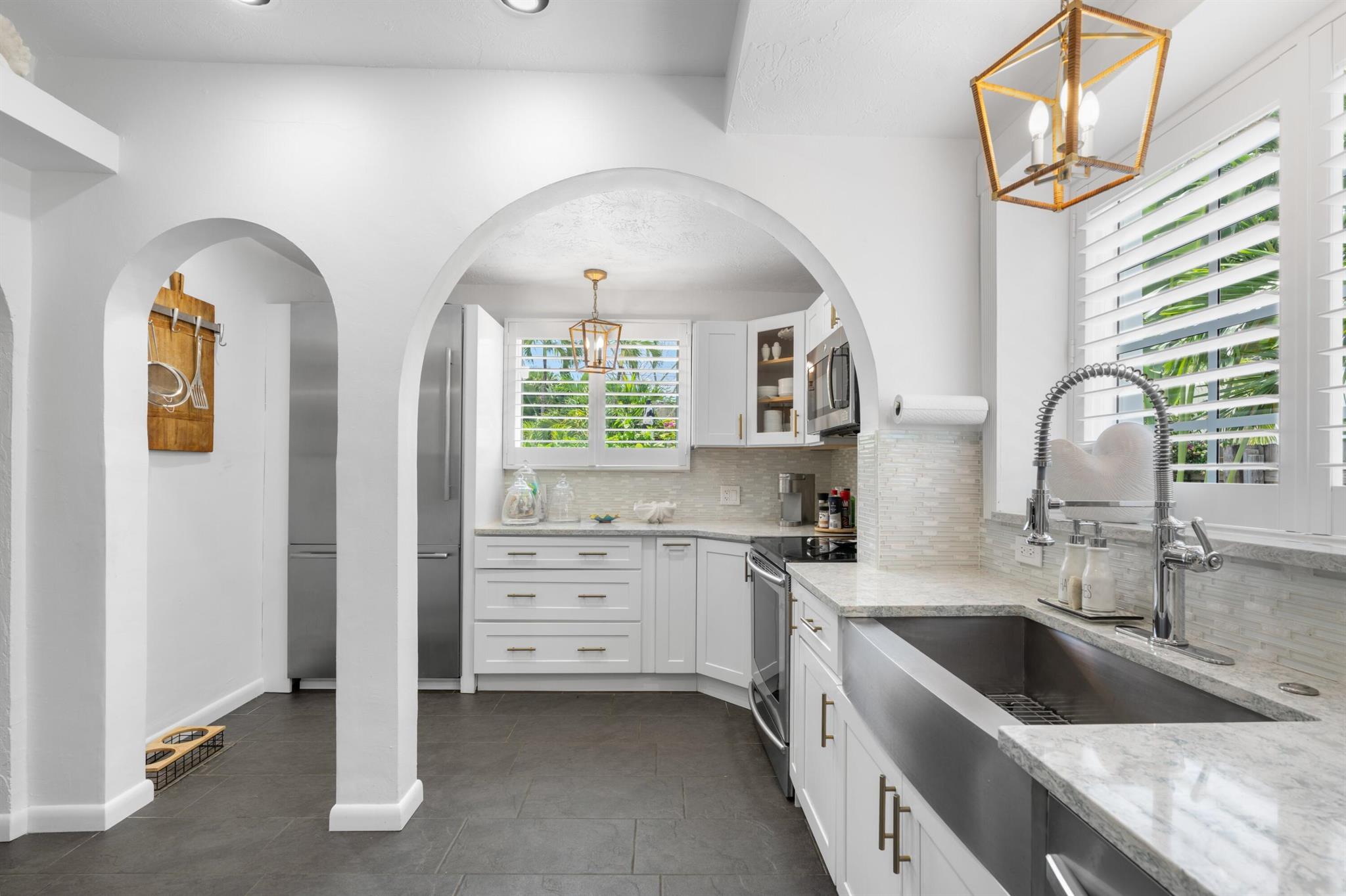 Beautifully renovated Spanish Mission style home in the heart of Old Northwood. 32nd St. is one of the prettiest streets in Northwood, with 5 John Volk homes on the block. Original pine hardwood floors, large living areas, original fireplace, and 10 ft ceilings. The home has many of the original features, plaster work, and charm. 2 bedrooms and 2 baths on the 2nd floor, with a den/office/ bonus room on the 1st floor. The home is professionally decorated, and can be sold furnished. The family room opens out to the large pool deck and lushly landscaped back yard. The pool is heated and can be both a salt or chlorine system. The Cottage has just been rebuilt to code, with permits. The property has all new impact glass doors and windows. The home's completely updated, ready for the new owner.