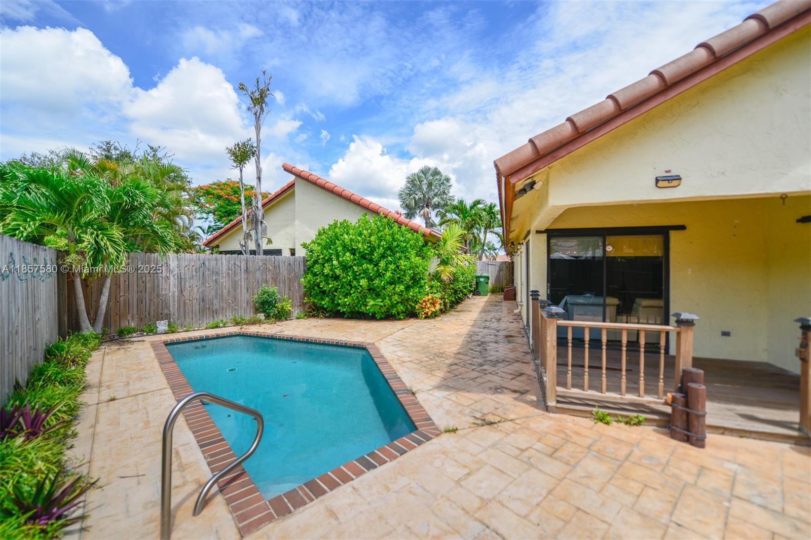 Beautifully renovated 2-bedroom, 2-bathroom single-family home featuring a stunning kitchen and modern bathrooms with glass-enclosed shower. This unit includes ceiling fans, spacious walk-in closets, and high ceilings. The primary bedroom opens to the patio and pool area, complete with a charming wood deck. Additionally, there is a one-car garage. No HOA approval is needed, and the quarterly HOA fee is low. Don’t miss out on this incredible opportunity!