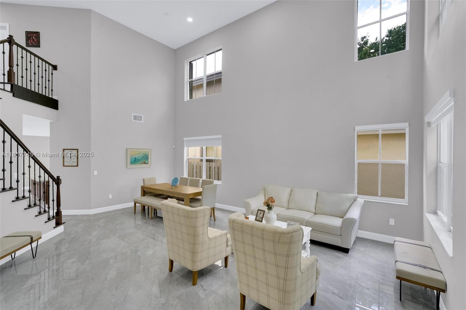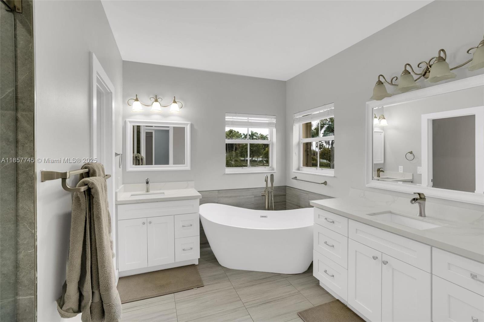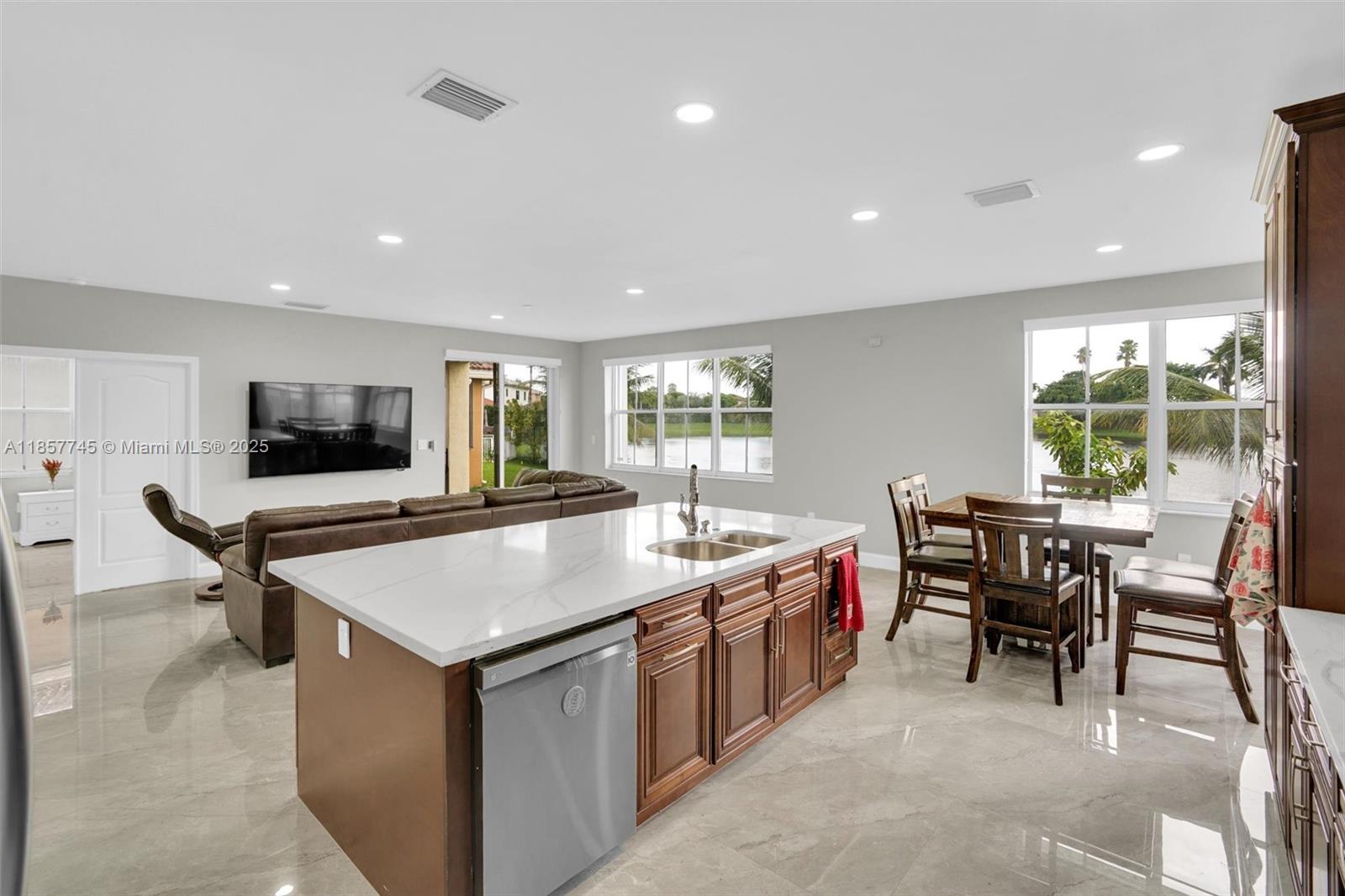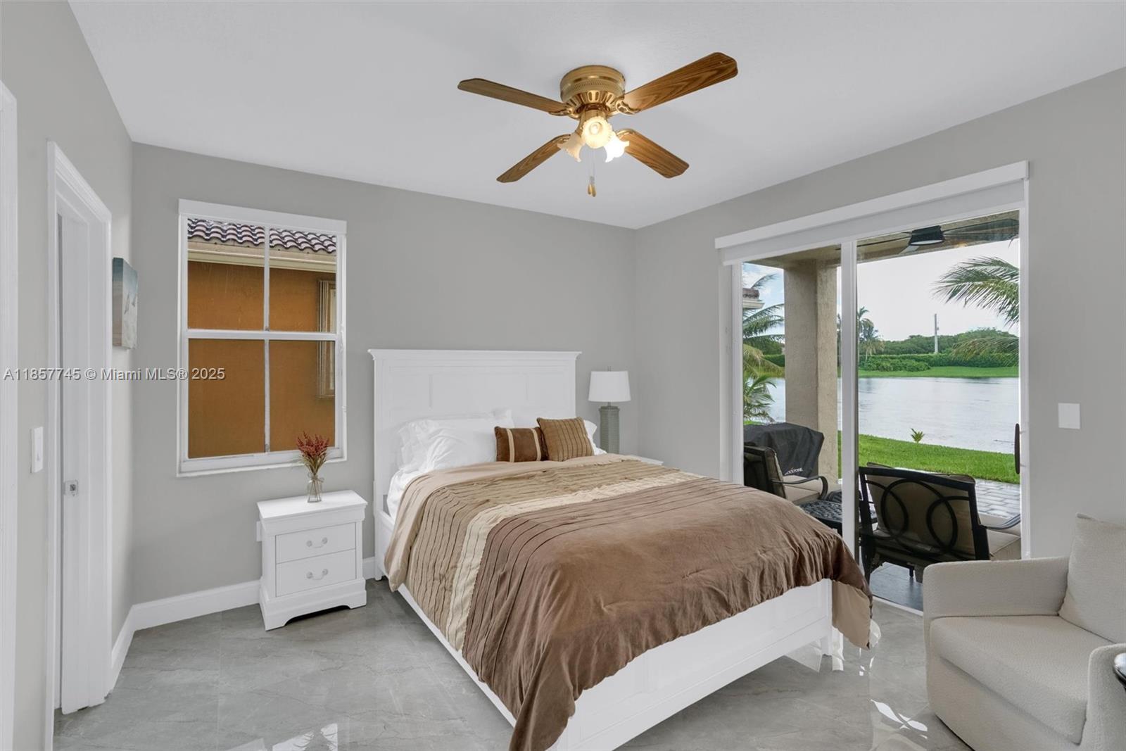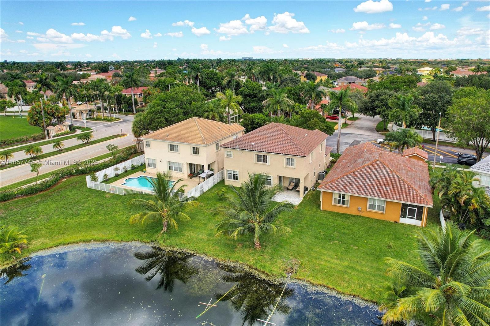 Magnificent lakefront home, lovingly maintained by its original owners and completely remodeled with many upgrades over the last years. Features include a 2-year-old barrel tile roof, accordion hurricane shutters, and new PEX-A plumbing throughout. The gourmet kitchen boasts a massive 8.5' x 5' quartz island, double ovens, newer appliances, and quartz countertops in both kitchen and baths. Elegant, oversized porcelain tile floors flow through the first floor, while upstairs showcases a beautifully redone hardwood staircase and hardwood floors in the loft. Freshly painted exterior, zebra blinds, spacious closets, and updated systems, including an improved AC, ensure comfort and peace of mind. Enjoy serene water views, community amenities, and a true turnkey property with countless extras.