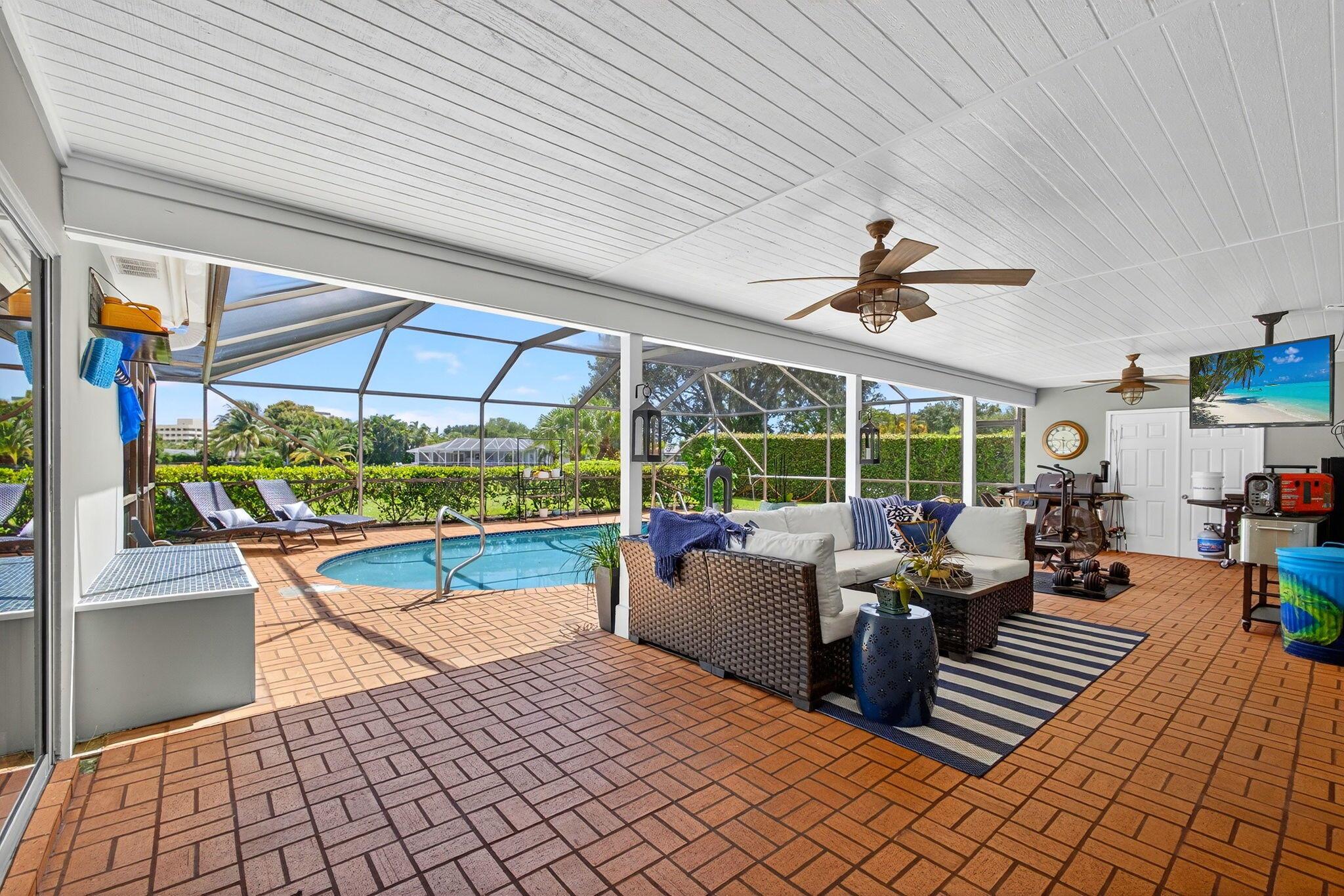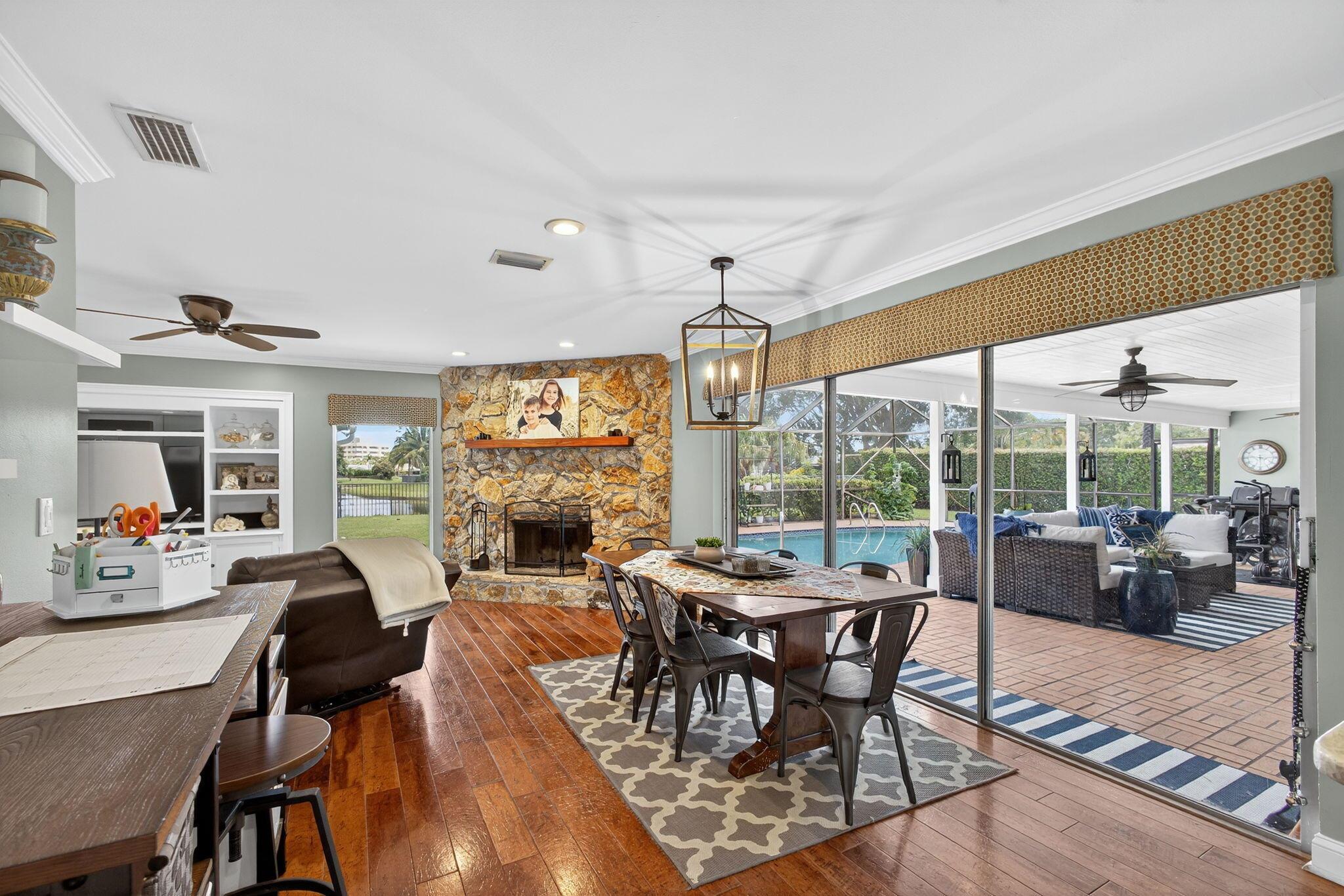Charming 4-Bed, 3.5 Bath Lakefront Home in Palm Beach Gardens! Discover your perfect home in the serene, non-HOA Garden Isles neighborhood! This 4-bedroom, 3-bathroom CBS home features a new roof, hot water heater, and a versatile fourth bedroom with a separate entrance, ideal for a mother-in-law suite or home office. Enjoy a sparkling pool and a large covered outdoor area, perfect for entertaining, surrounded by a lovely garden and serene lake view. Inside, you'll find a formal dining room, a living room, and a cozy family room with a fireplace, creating inviting spaces for every occasion.Prime location! Walk to nearby restaurants, hop on I-95 in seconds, or reach the Turnpike in minutes. Plus, you're just 10 minutes from PBI Airport.