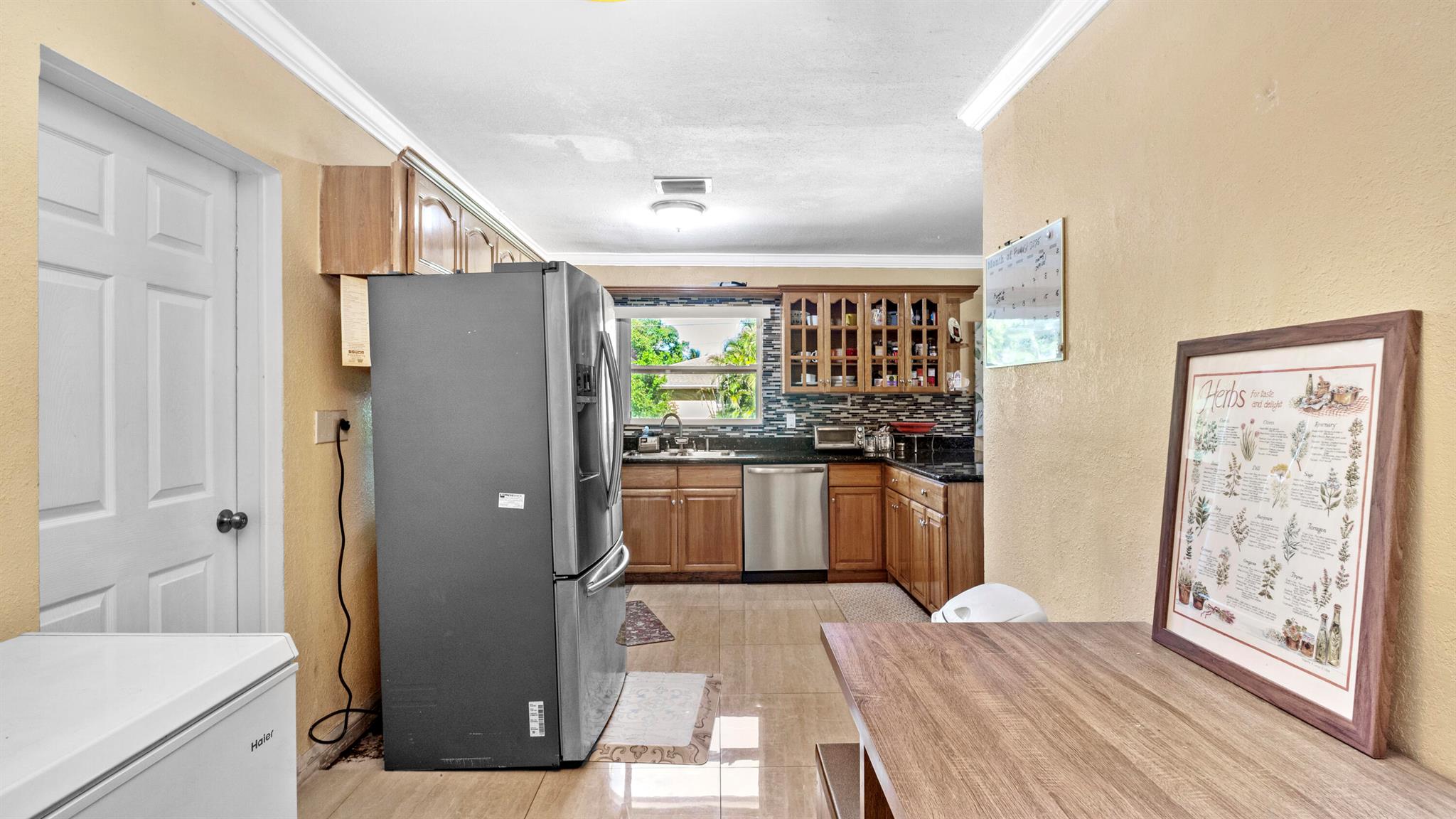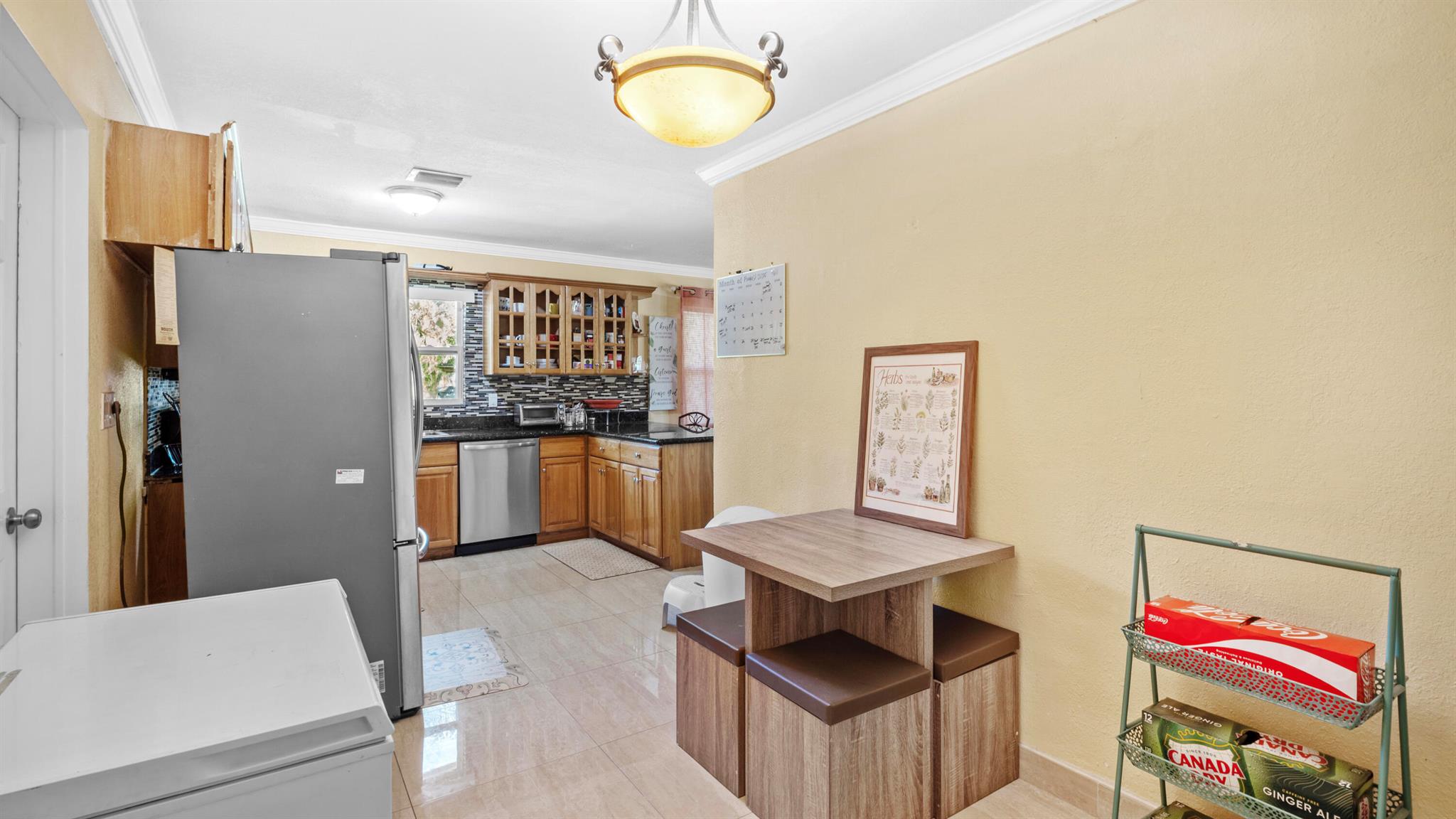 Beautifully updated 3BR/2.5BA home featuring a 2017 roof, new A/C and handler, and professionally appraised at $640,000 in June 2025. Includes impact windows, all-new appliances, and a granite kitchen. Two master suites one perfect for an in-law setup plus three elegantly renovated baths. Spacious laundry room with sink, landscaped backyard with covered patio, and ample parking with two covered spaces, storage, circular, and side driveways. While some cosmetic updates are needed, this is a home with great bones and solid construction, offering comfort, value, and potential.