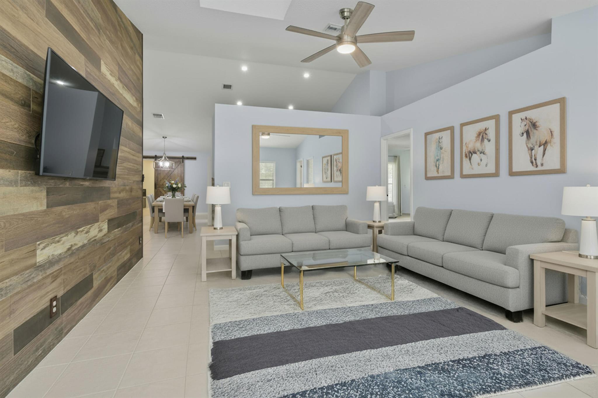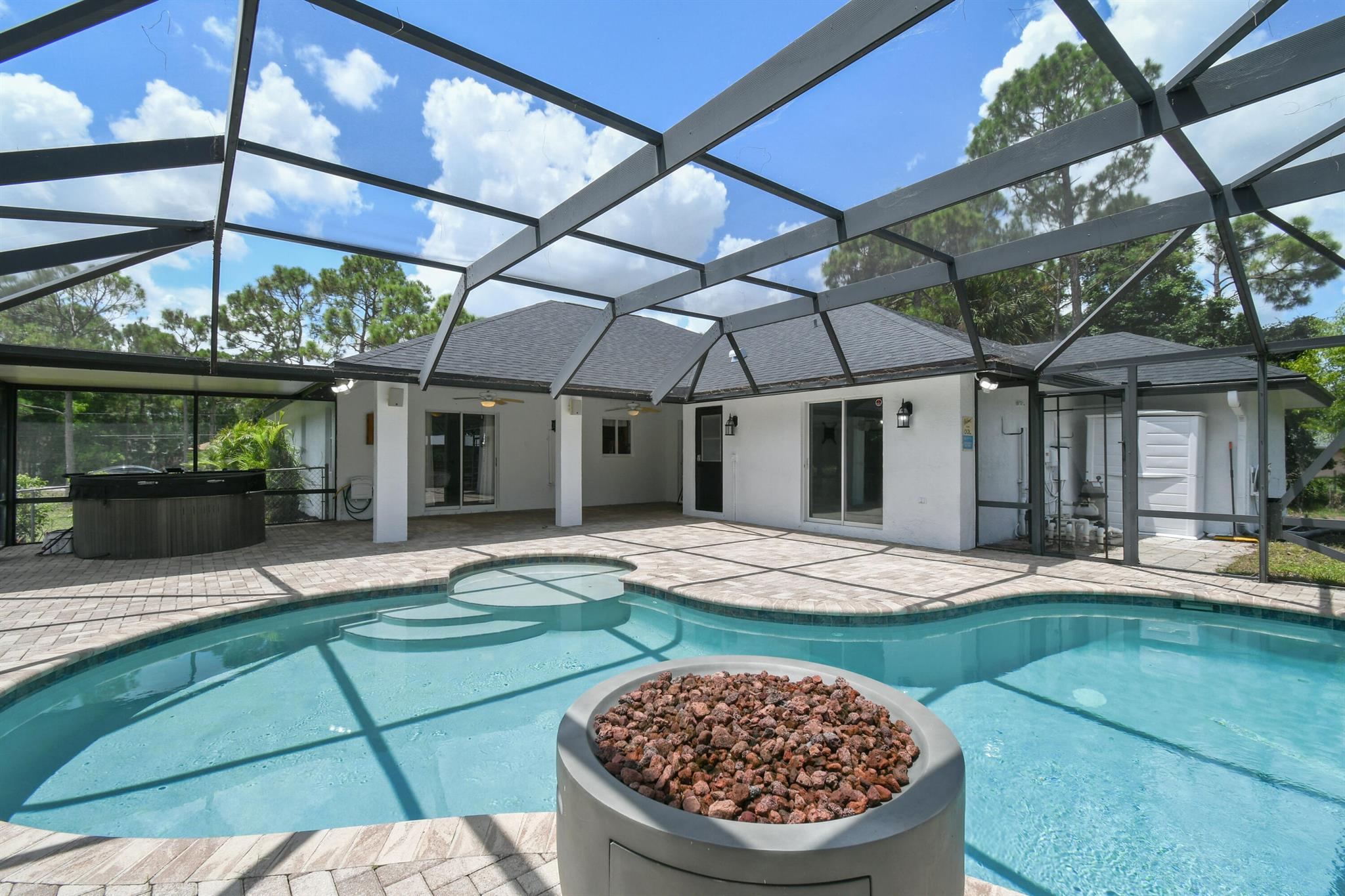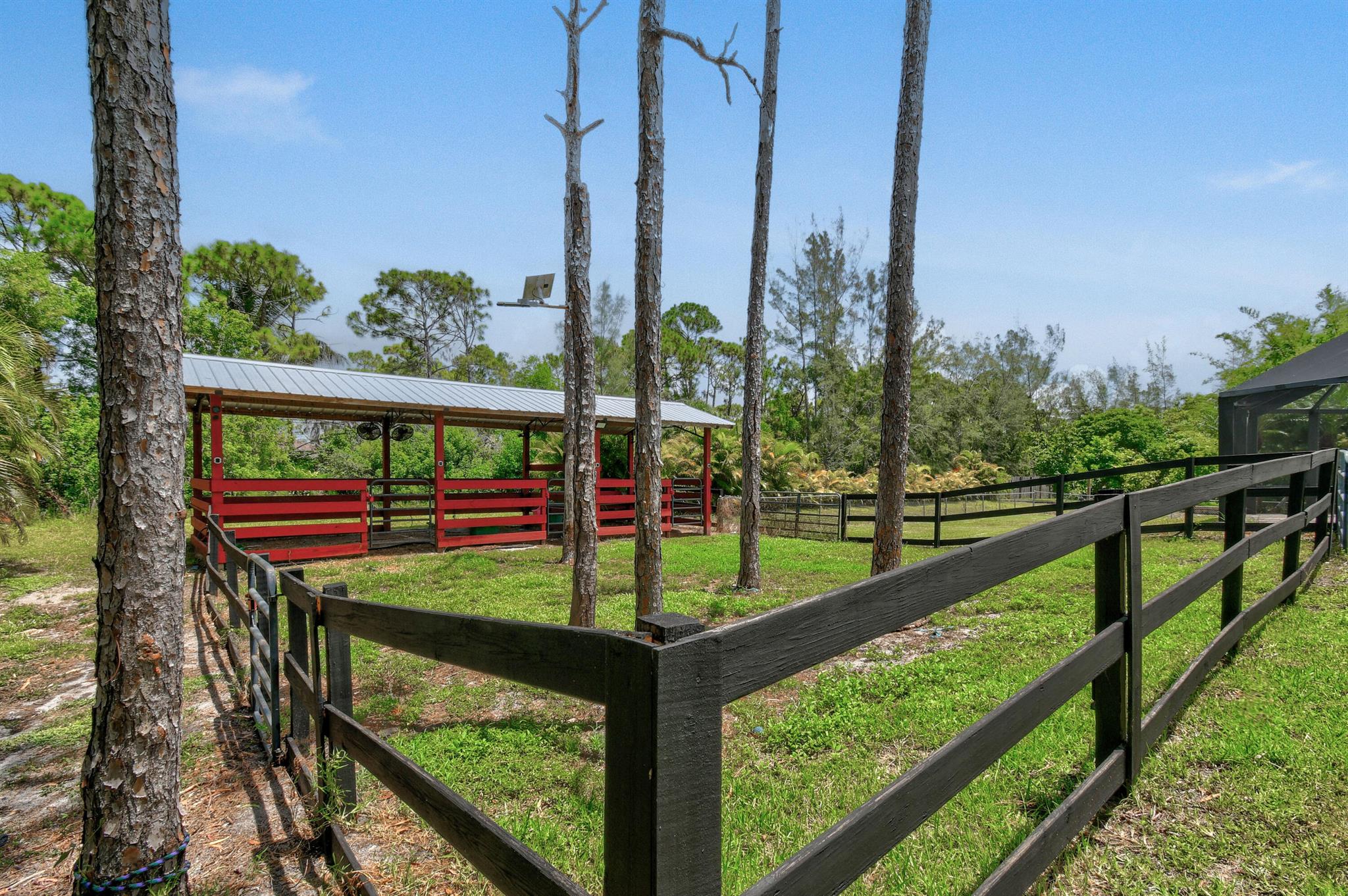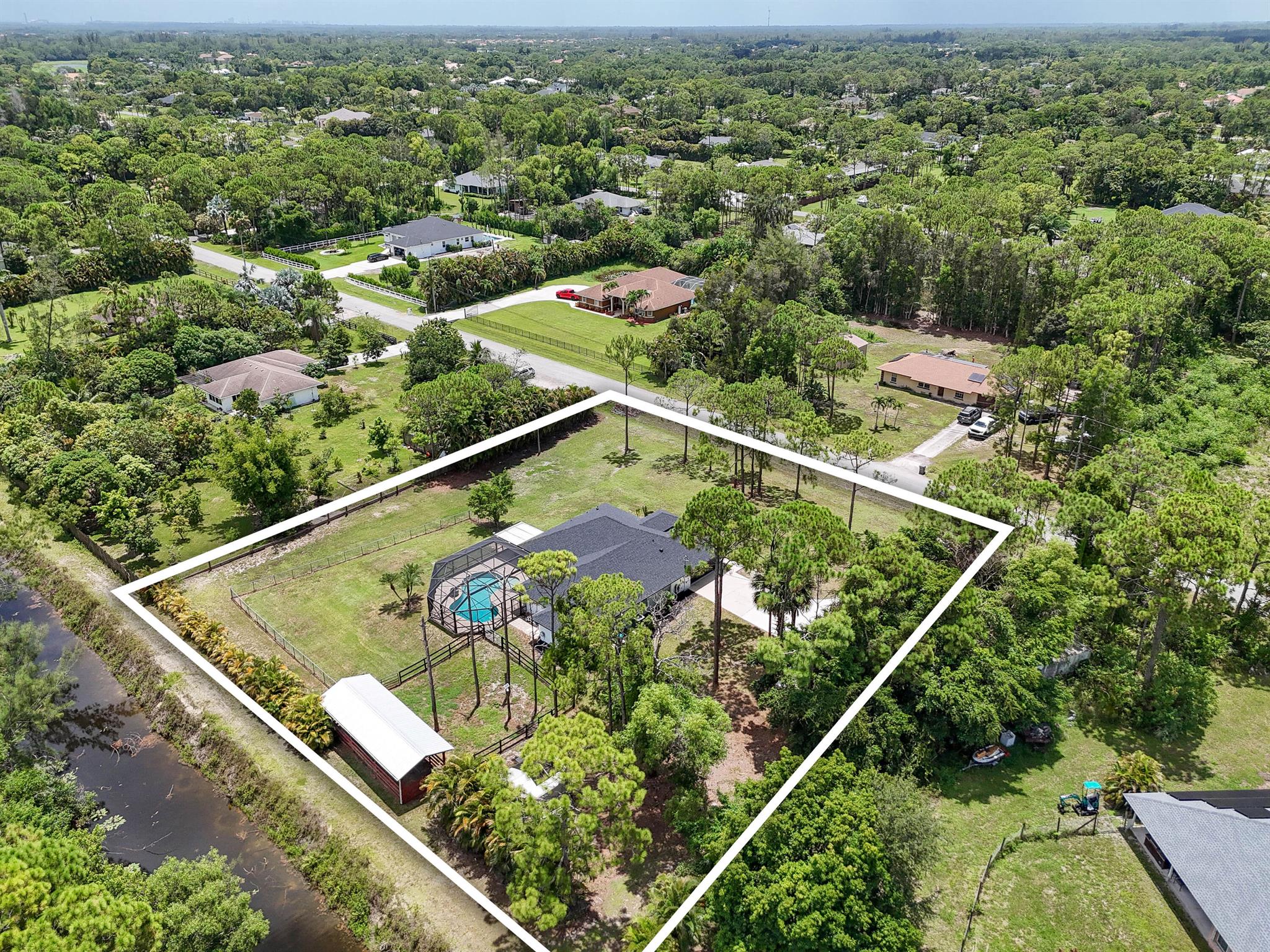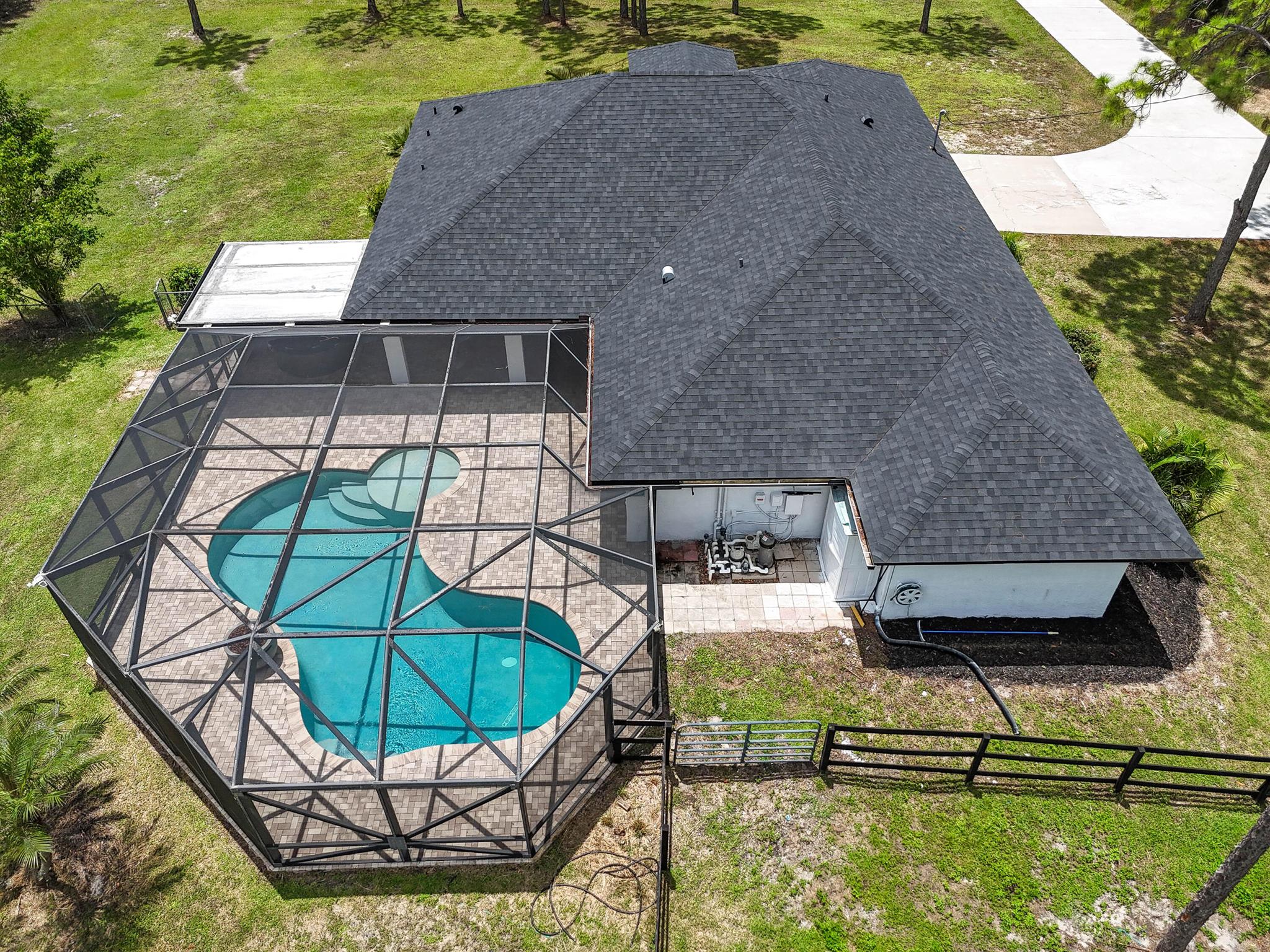 1.29 acres of upgraded Acreage living -- turnkey, private, and equestrian-ready. This CBS 4-bedroom pool home offers a rare combination of land, lifestyle, and location in one of the most desirable pockets of The Acreage. With a brand-new roof, new HVAC system, updated water system, and a refreshed black-and-white exterior, the property delivers immediate peace of mind and long-term value.Inside, vaulted ceilings and wide, connected living spaces create an airy, open feel. The 2020 family room flows into a screened-in pool area with over 1,600 sq ft of covered outdoor living -- perfect for entertaining or everyday relaxation. The pool enclosure features solar-ready heating, a cabana bath, and a lifetime structural warranty. The split-bedroom layout provides privacy, while the