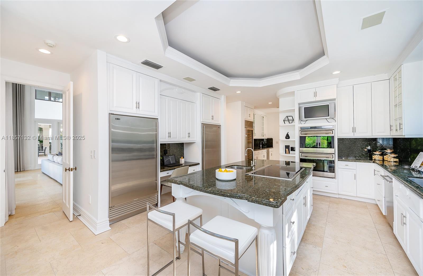 A one-of-a-kind, Mediterranean estate in the prestigious and private gated community of Tahiti Beach Island. Located at the end of a cul-de-sac, sitting on over an acre and featuring 25-foot-high ceilings in the foyer & living room. Perfect for entertaining, the large kitchen with wet bar and butler’s pantry leads to a light filled family room that opens to an extensive outdoor terrace, 24 x 40 pool and guest house. Boasting an opulent primary bedroom with dual closets, an oversized bathroom and a private balcony looking over the pool and yard. Tahiti Beach Island offers a private beach, tennis courts, pickleball & access to all of Cocoplum’s amenities.