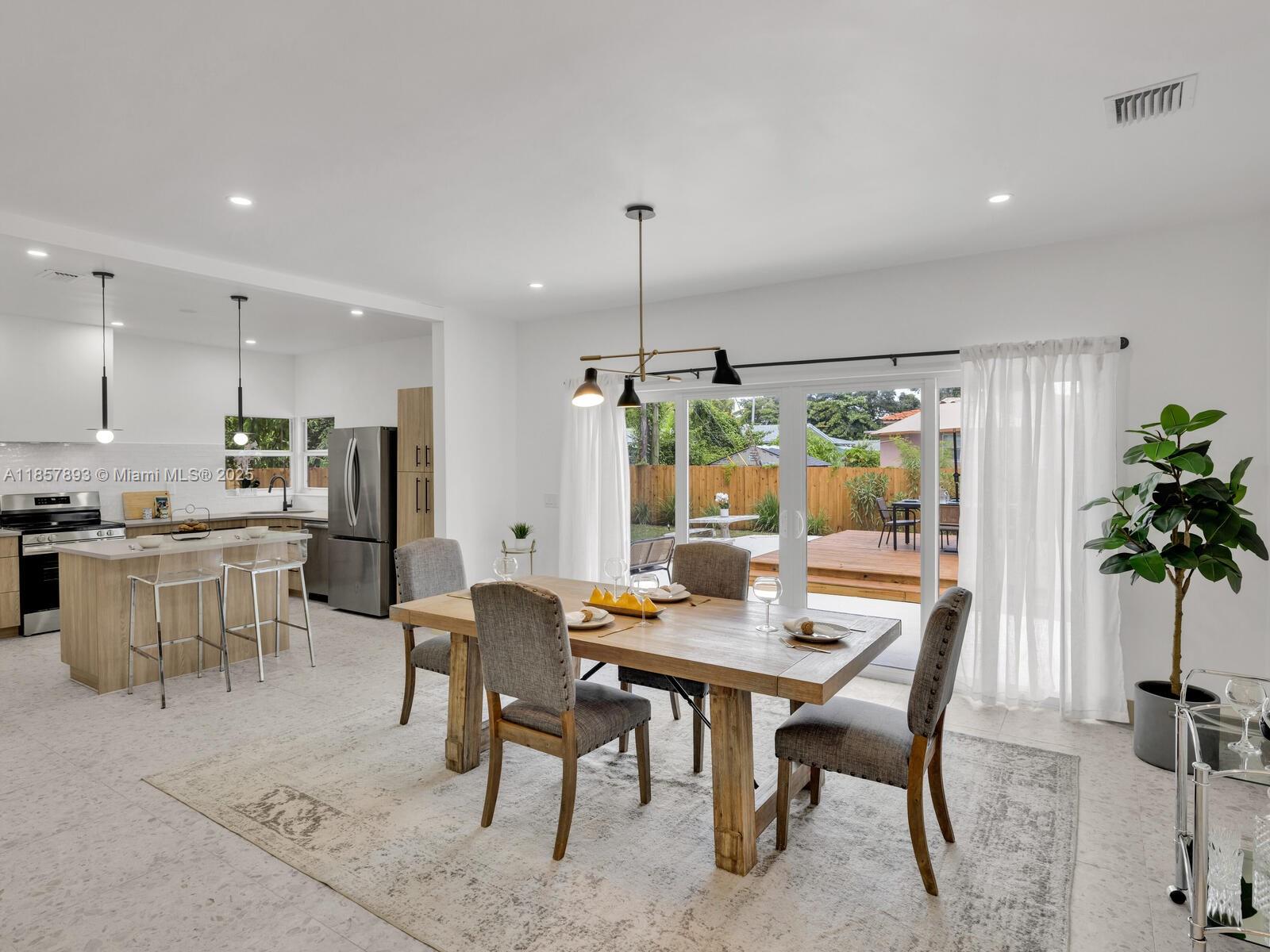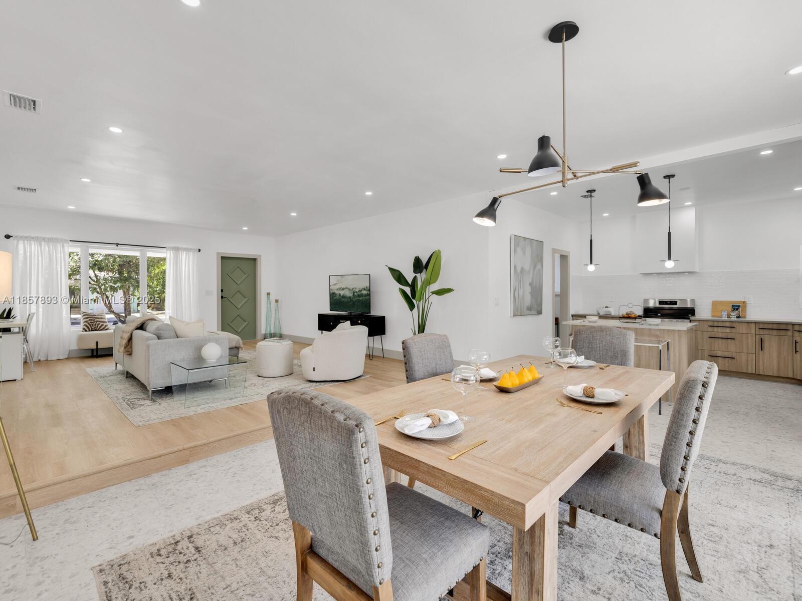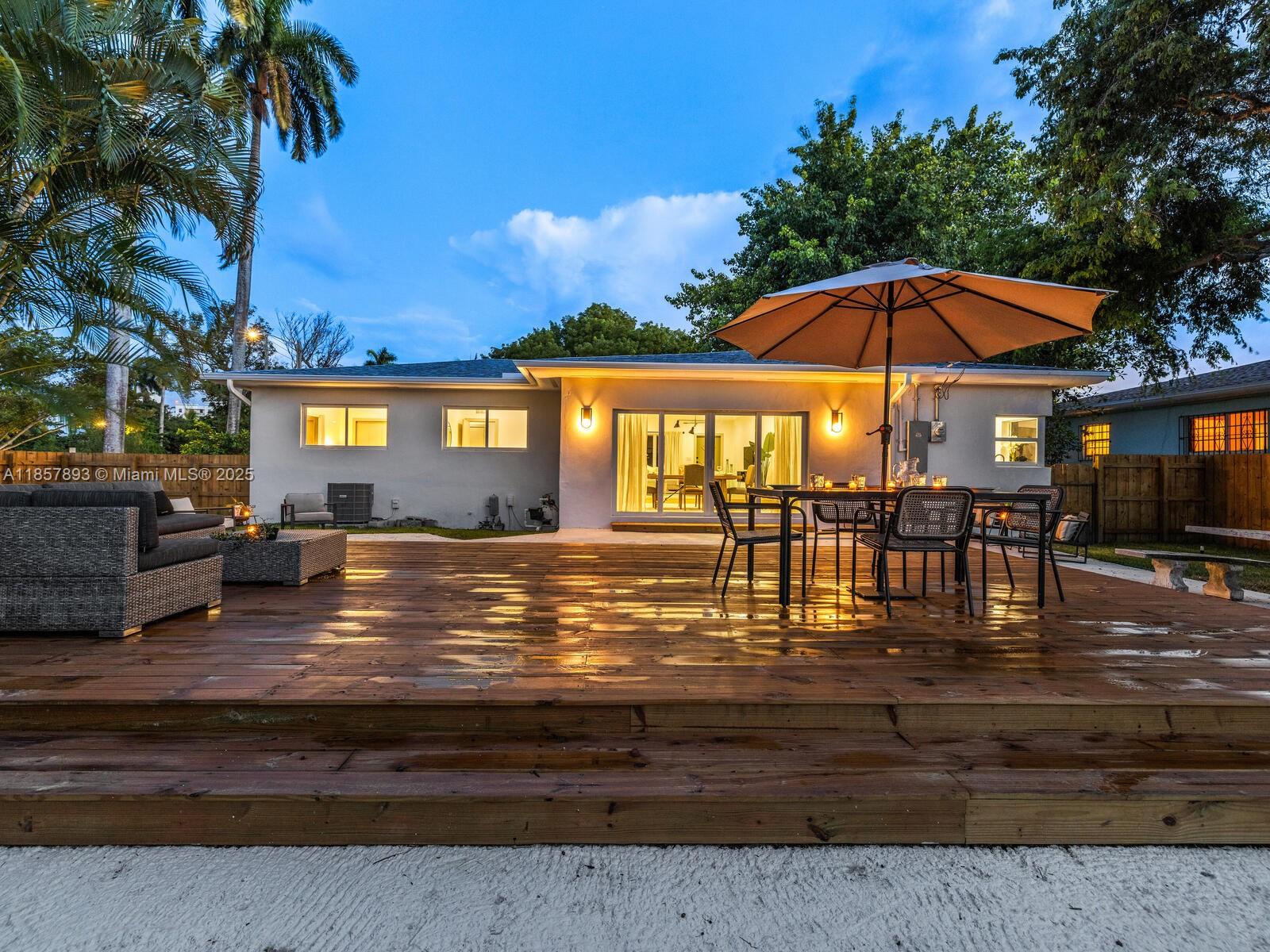 Welcome to The Parkside Retreat! Endless opportunities await you in this completely updated mid-century modern home on a large 8,960 SF corner lot. Great features inside and out— a cool, welcoming covered Terrazzo front porch; grand open-flow living room and bright dining, plus custom eat-in chef’s island kitchen with high ceilings and abundant counter space; triple-stacked bedrooms with two new designer baths, including a primary ensuite with walk-in closet; a laundry room; all new designer finishes, lighting, LVT flooring, roof, and impact windows; one-car garage; and sliding doors to entertainment gardens and a massive wooden sundeck esplanade. A great value in a fantastic, convenient unincorporated location with lower taxes and regulations, across from Biscayne Shores & Gardens Park.