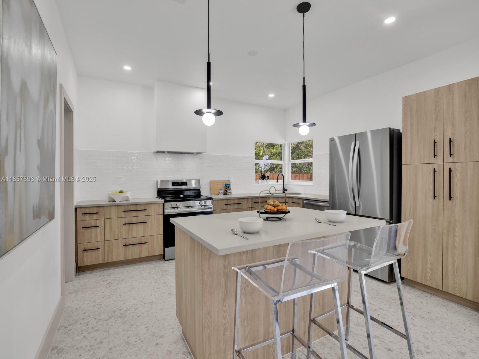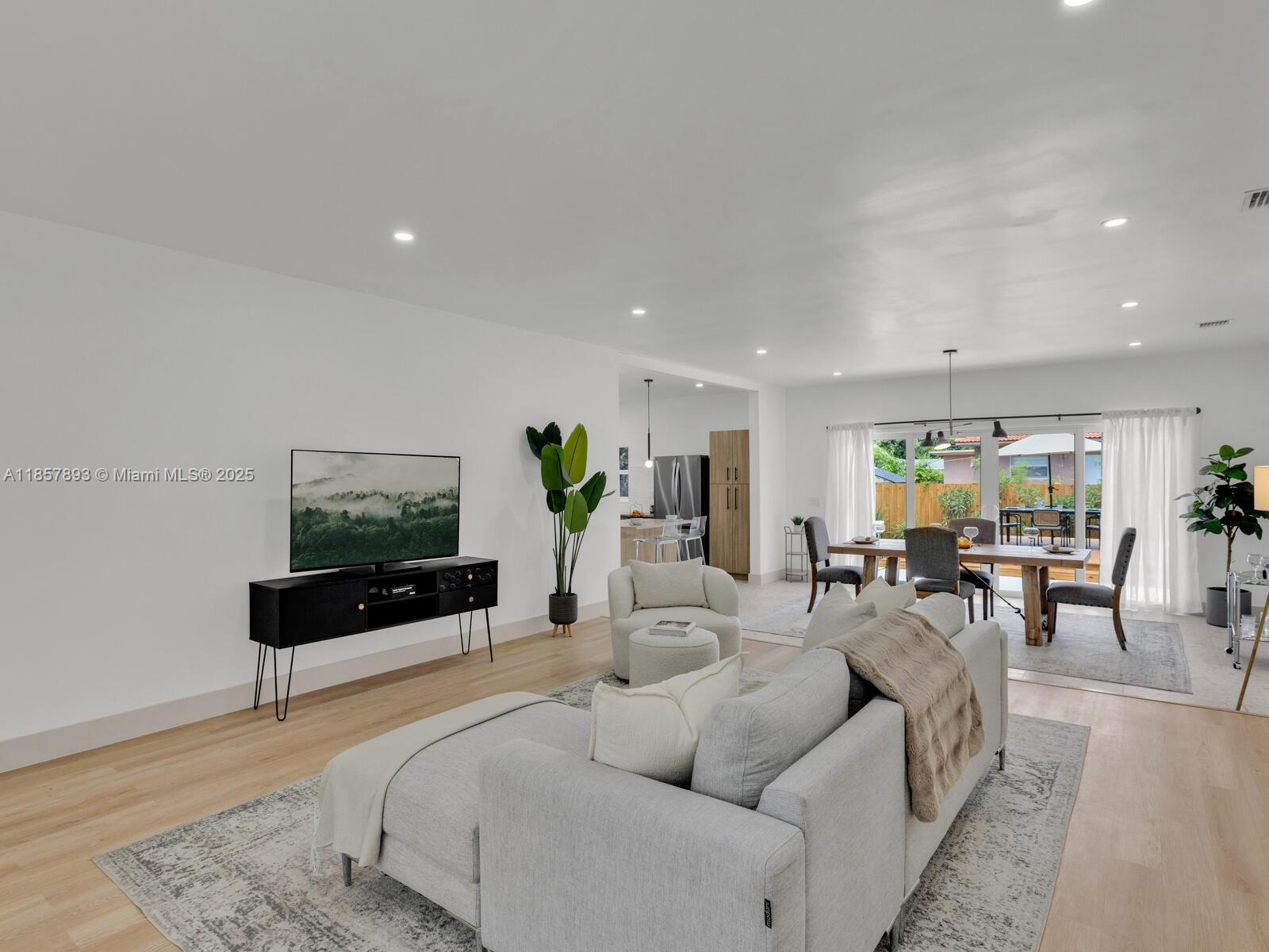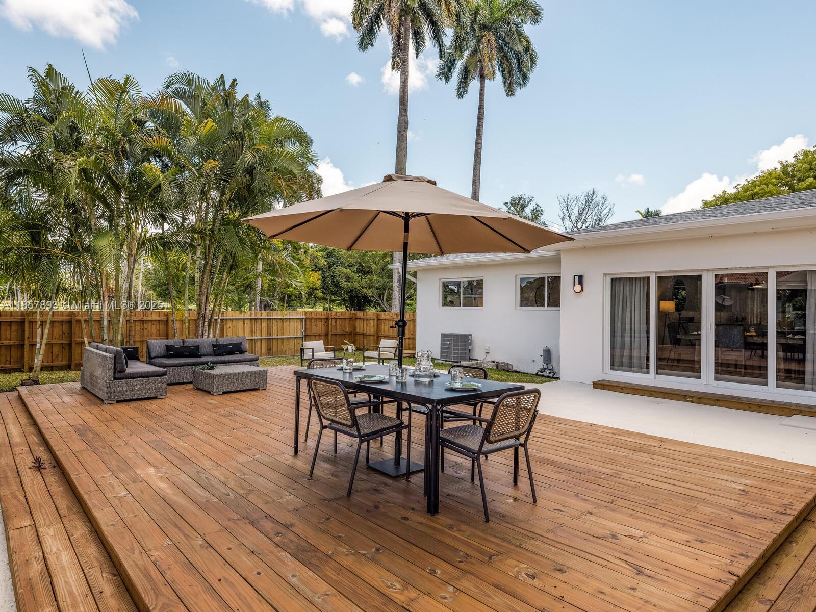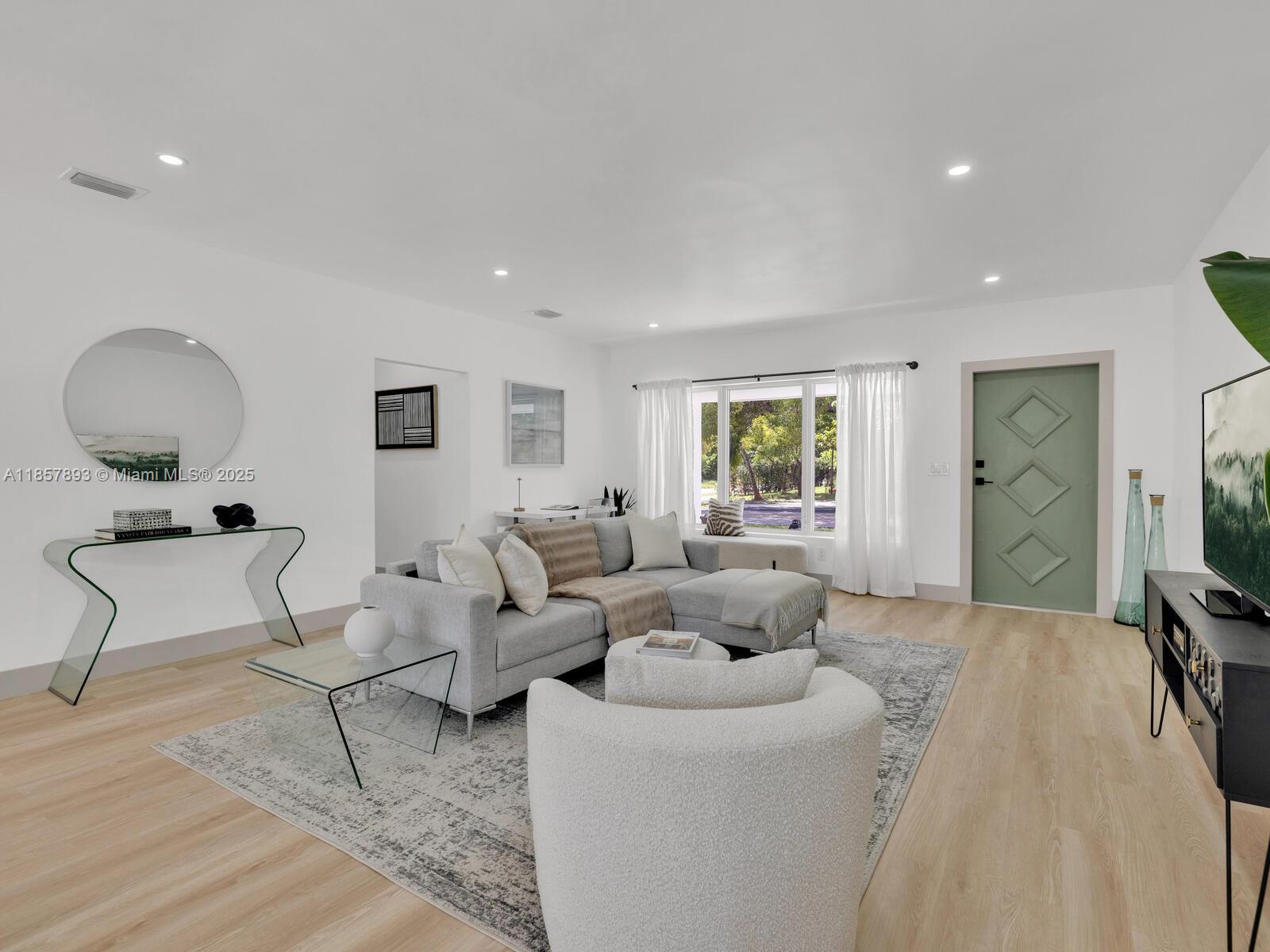 Welcome to The Parkside Retreat! Endless opportunities await you in this completely updated mid-century modern home on a large 8,960 SF corner lot. Great features inside and out— a cool, welcoming covered Terrazzo front porch; grand open-flow living room and bright dining, plus custom eat-in chef’s island kitchen with high ceilings and abundant counter space; triple-stacked bedrooms with two new designer baths, including a primary ensuite with walk-in closet; a laundry room; all new designer finishes, lighting, LVT flooring, roof, and impact windows; one-car garage; and sliding doors to entertainment gardens and a massive wooden sundeck esplanade. A great value in a fantastic, convenient unincorporated location with lower taxes and regulations, across from Biscayne Shores & Gardens Park.