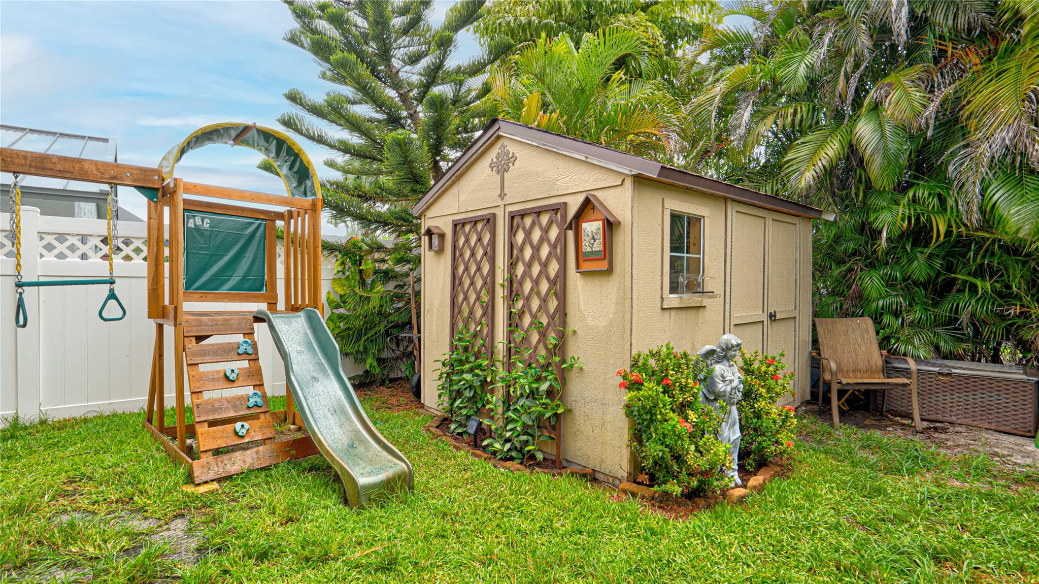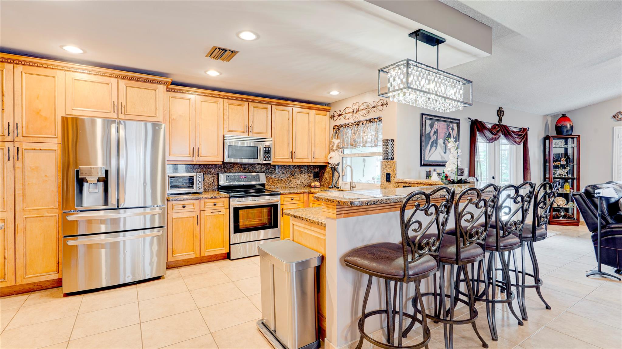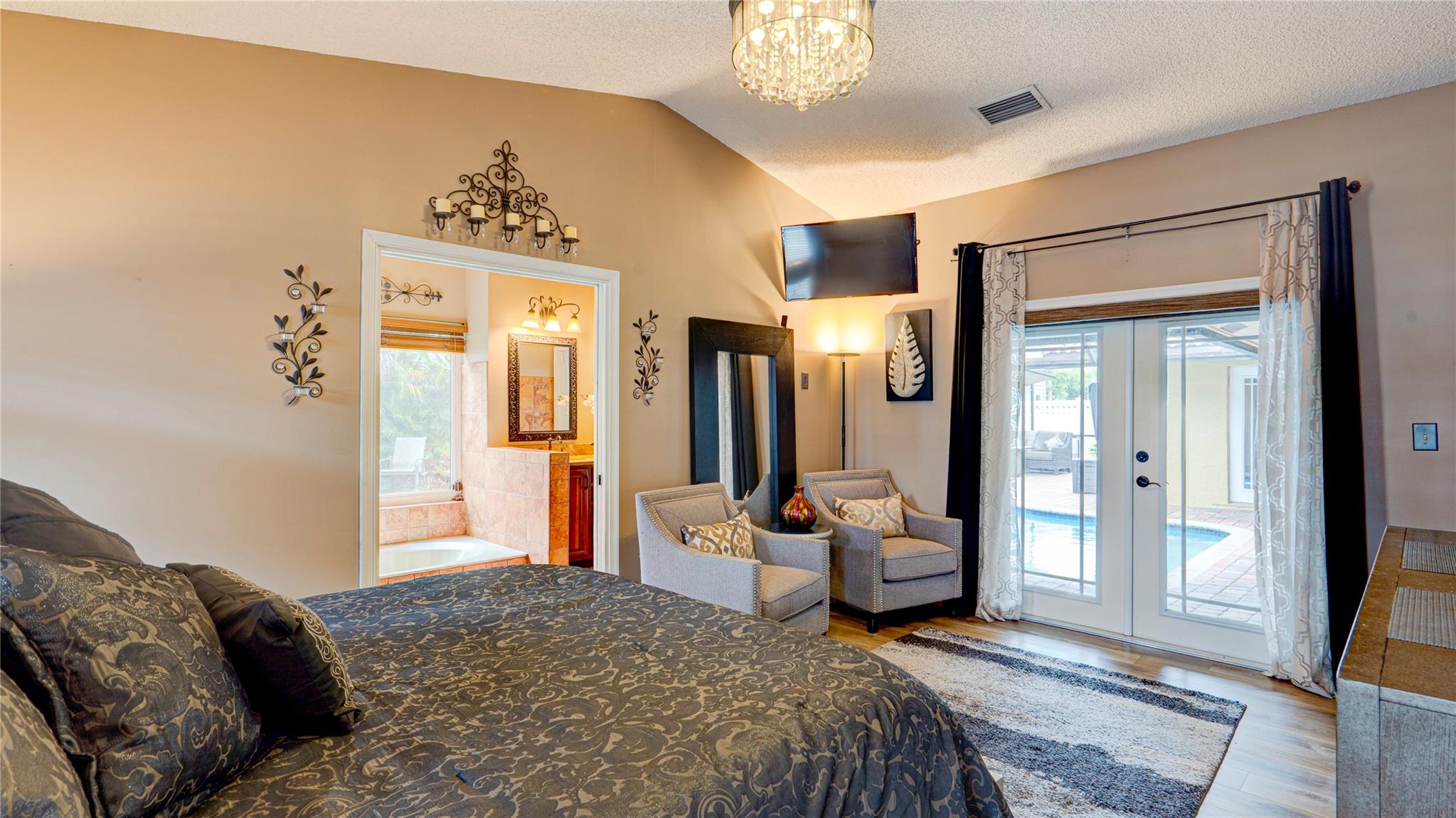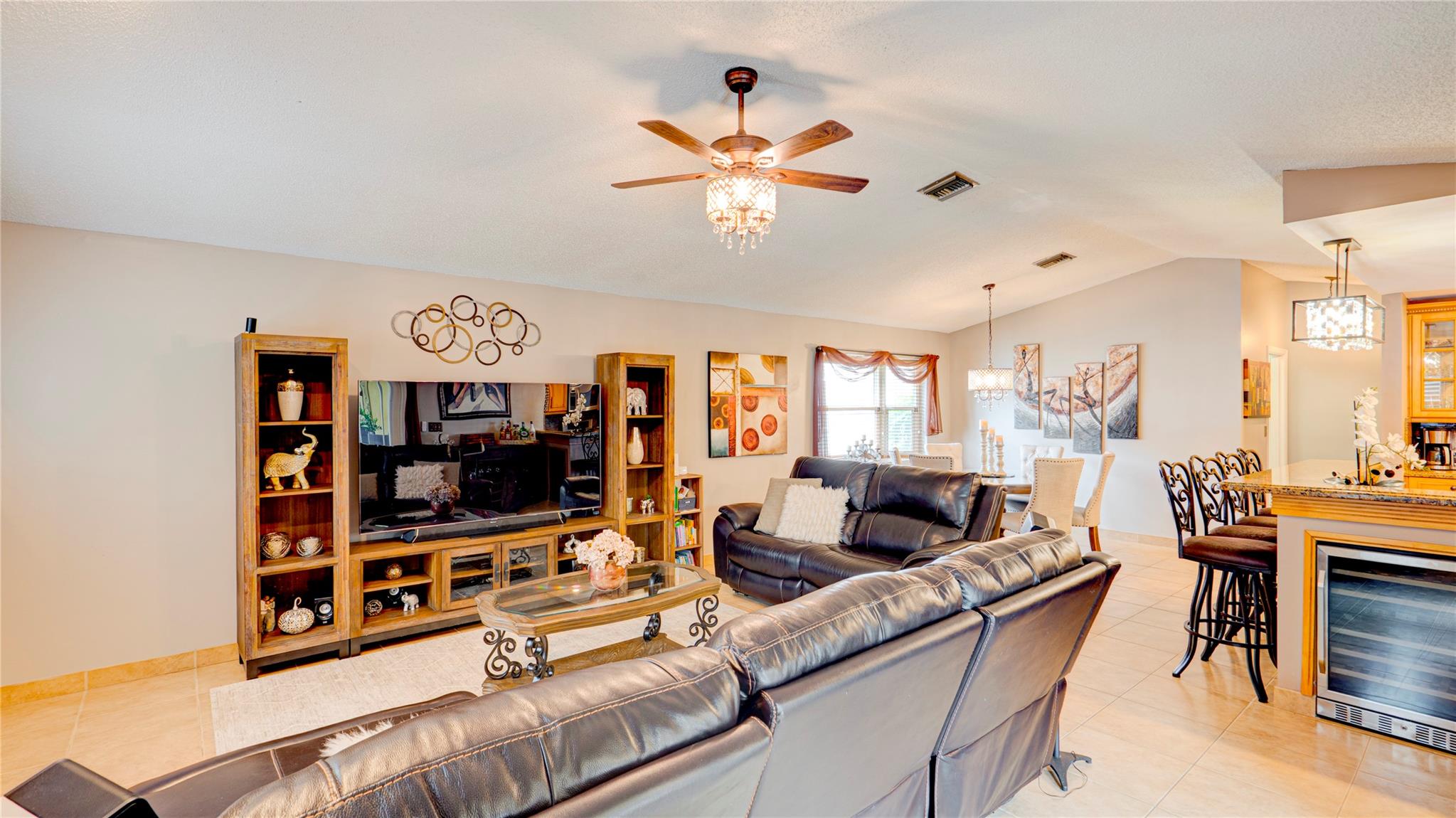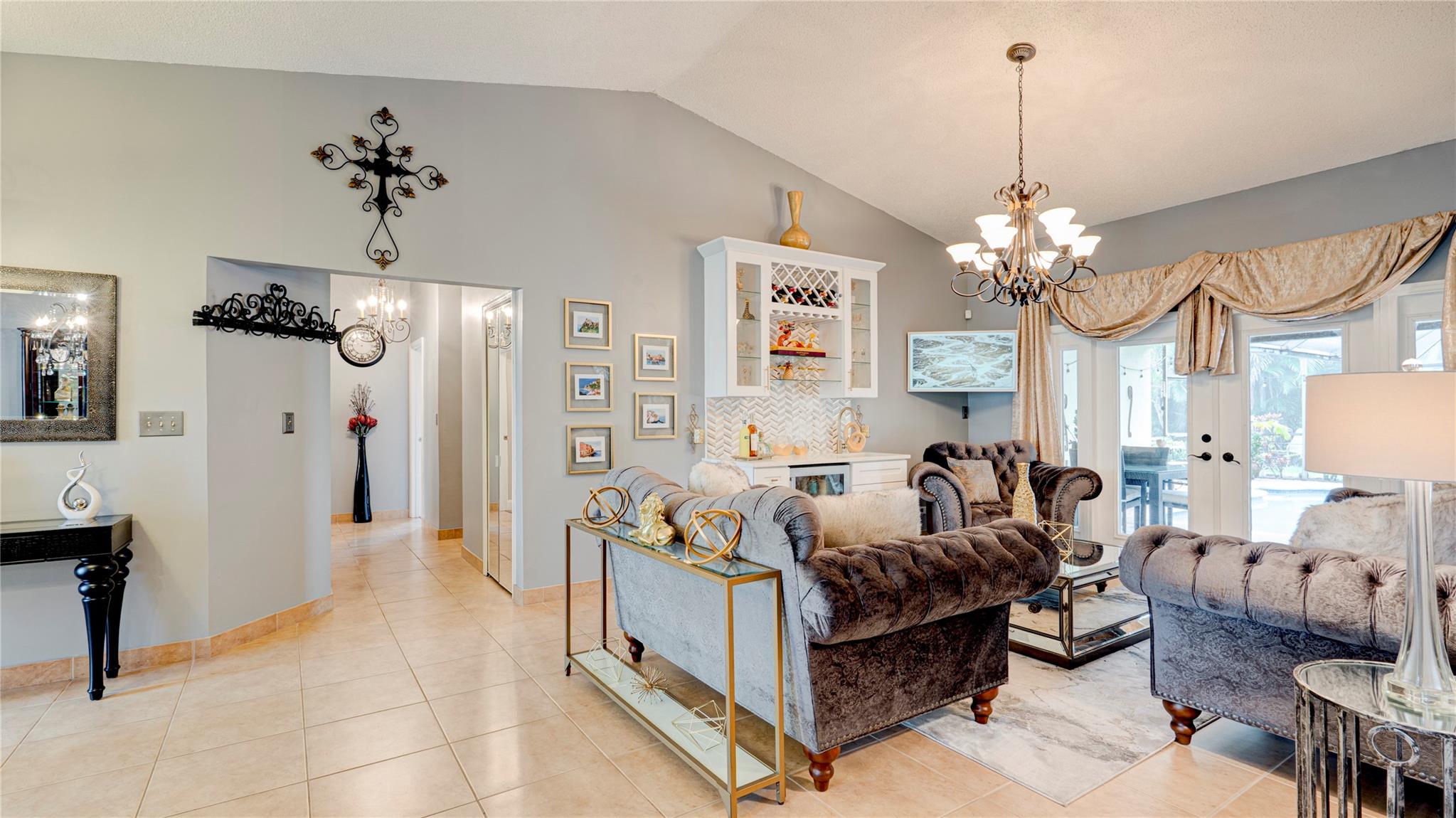 Meticulously maintained Coral Springs 4-bed, 2.5-bath with no HOA! Split floor plan with vaulted ceilings, custom wet bar, impact windows/doors, plantation shutters & cozy fireplace. Spacious walk-in closet adds everyday ease. Courtyard-style backyard oasis features heated pool, fenced yard, new screened lanai, wired outdoor TV & shed with electric. Open kitchen/family room with coffee & wine bar, central vacuum & modern security (Ring & ADT). Steps from Cypress Hammock Park with trails, tennis, pickleball, basketball, pools & water park. Move-in ready with thoughtful updates—style, comfort & entertainment all in one!