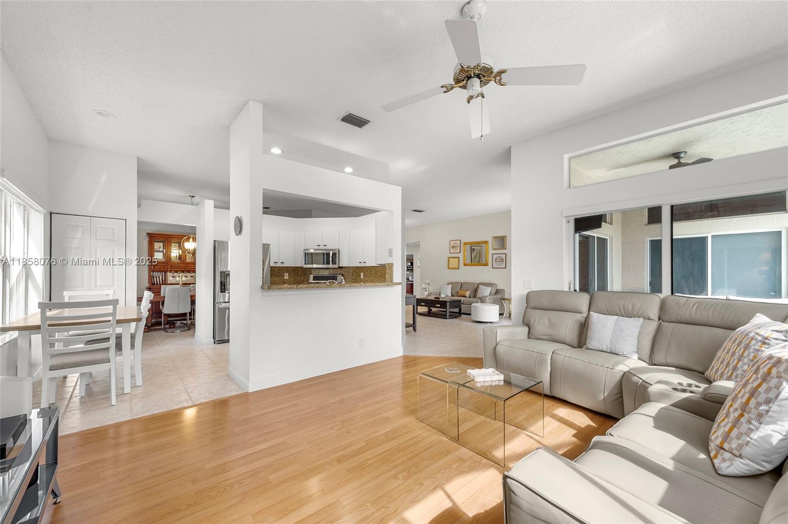 Ready to love where you live? Move-in-ready home in The Ridges offers 4 beds, 2 baths, and easy one-story living in Cypress Ridge. Sunlit spaces feature Spanish tile and wood-like vinyl, kitchen with SS appliances that opens to the family room. Impact garage and front doors. Relax & enjoy the screened-in private patio day & night. Primary suite has walk-in closet, soaking tub, separate shower, and access to the patio. Two-car garage. Near top-rated schools and resort-style amenities: family pool with aquatic and kiddie areas, tiki huts, pickle ball court, sport courts, playgrounds, parks with picnic/BBQ areas, miles of trails, classes and events, two 24/7 guard-gated entrances, and roving security. Weston’s A+ rated schools, restaurants, Cleveland Clinic, and shops are all within minutes.
