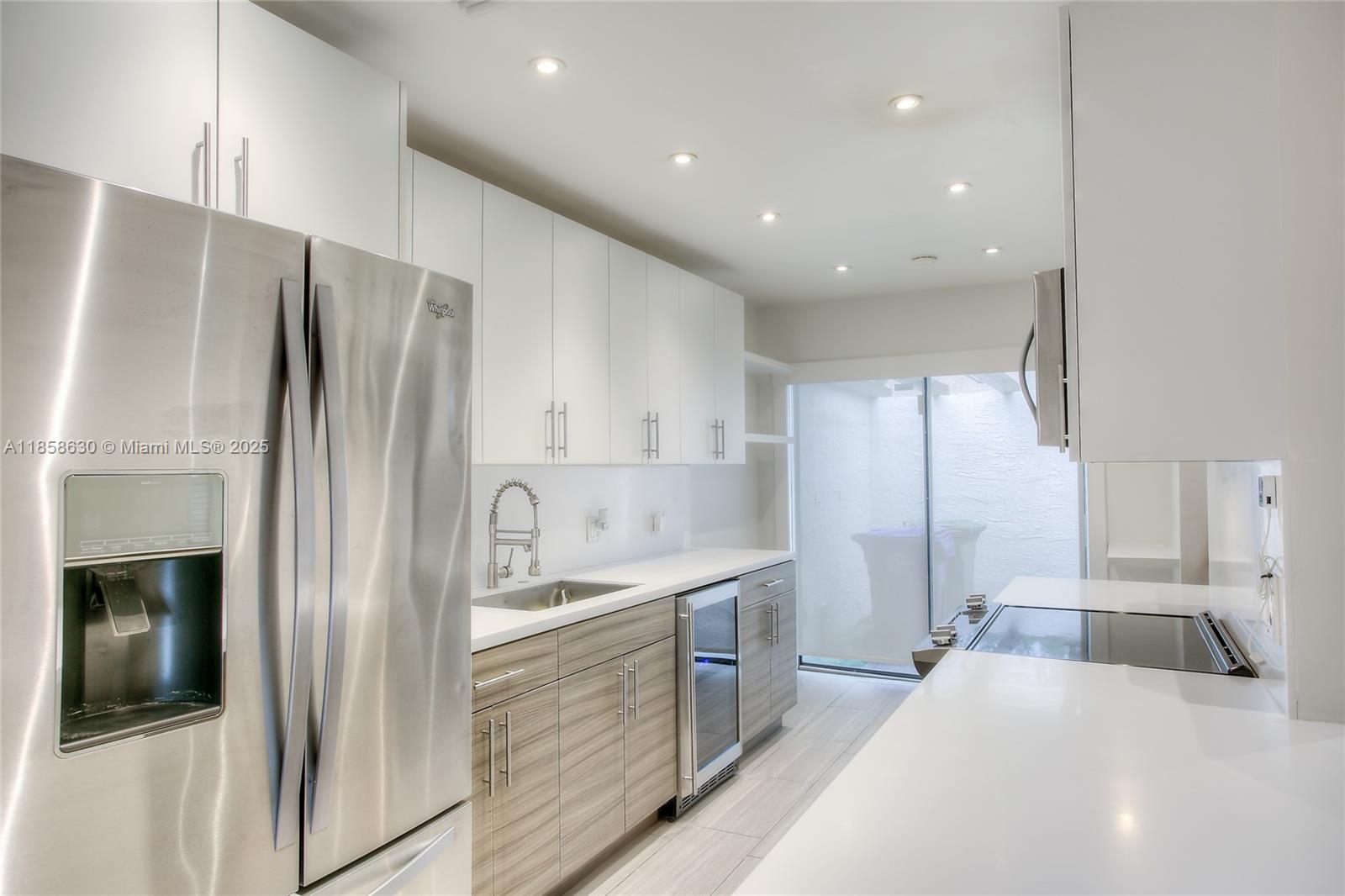 A full video of the property is available upon request. Nicely remodeled 2-bedroom, 2-bathroom townhome in the highly desirable East Lakes community of Pembroke Pines. Step inside to find modern wood-look tile flooring and LED recessed lighting throughout. The kitchen and bathrooms have been elegantly updated, featuring a sleek wine fridge. The spacious, fenced-in yard is perfect for family gatherings, complete with hookups for a TV and sound system. Enjoy peace of mind with recently updated A/C and electrical panel, along with a brand-new roof. Low HOA fee you’ll have access to amenities like a pool, playground, tennis court, and more. The property includes two assigned parking spaces and ample guest parking.