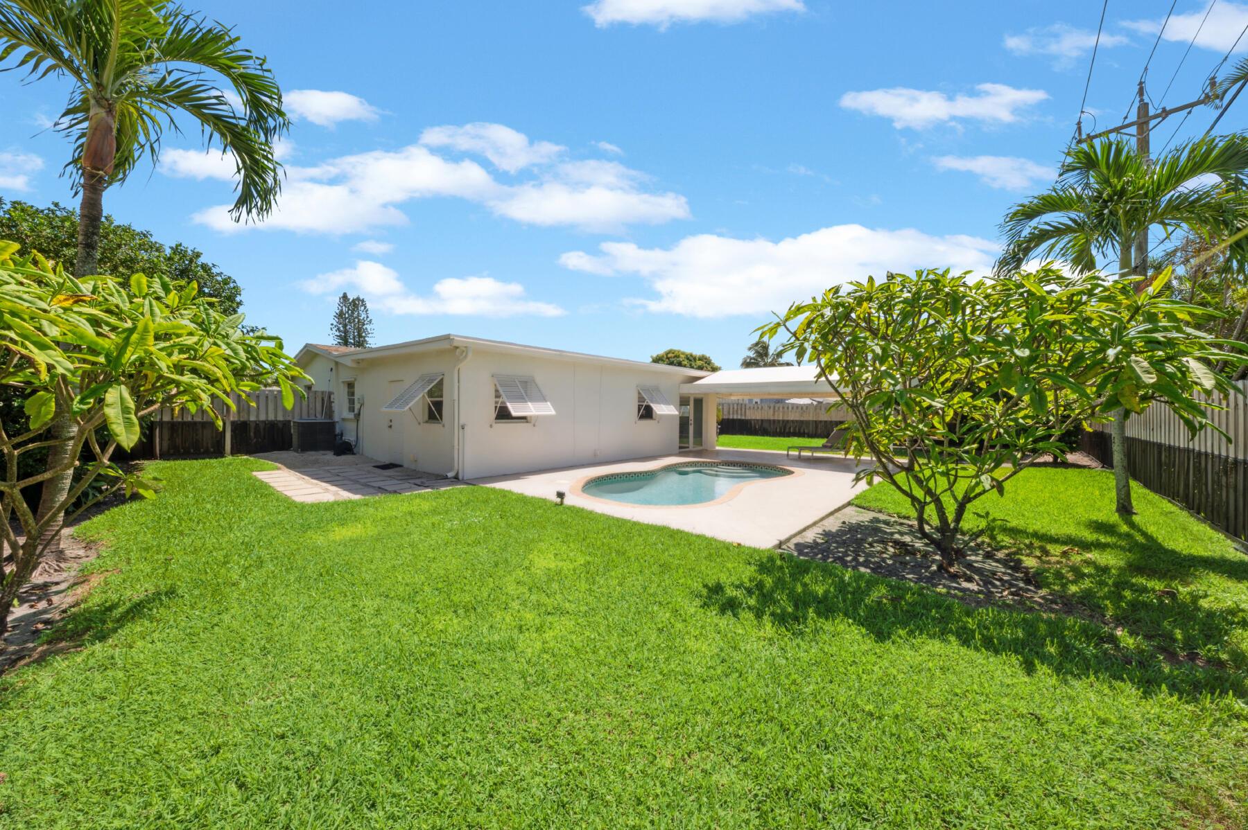 This stunningly remodeled 3br/2ba East Delray pool home truly has it all. Gorgeous wood grain porcelain tiles run throughout the home. The open, eat-in kitchen was completely reimagined with custom white shaker cabinetry, Calacutta quartz countertops and backsplash, high-end appliances, and designer hardware. The master suite boasts a separate sitting area and bath with fluted marble veined Italian porcelain tile, custom white shaker vanity with quartz countertop, and high-end polished chrome hardware. The spacious guest rooms enjoy walk-in closets and bountiful natural light. The stunning, oversized secondary bathroom includes a textured porcelain tile bath and custom wood shaker vanity with quartz countertops and chrome hardware. Additional whole-house upgrades include a new Nest