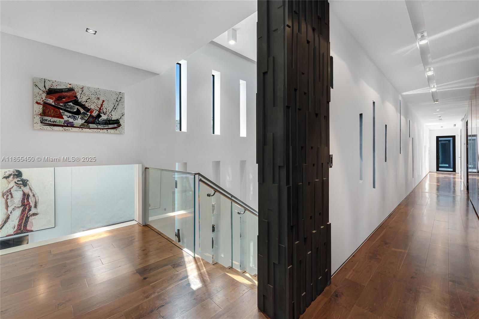 This striking modern tri-level waterfront residence blends bold architecture with refined luxury. Set on a 17,676 SF gated lot w/approx. 90FT of WF, the home offers 9,424 total SF with 5BR/7.5BA, expansive family, dining, & living areas all with water views. Highlights include marble & rich hardwood floors, custom millwork, chef’s kitchen with Wolf and Miele appliances, built-in aquarium, & seamless indoor-outdoor flow. Principal suite features an expansive terrace, spa-style bath, and massive walk-in closet. Additional amenities include a rooftop lounge with firepit & TV, a gym-converted garage, state-of-the-art theater, resort-style pool w/waterfall, summer kitchen, custom bar, 45FT dock, 3 jet ski slips & direct Intracoastal access. This residence epitomizes the Miami lifestyle.