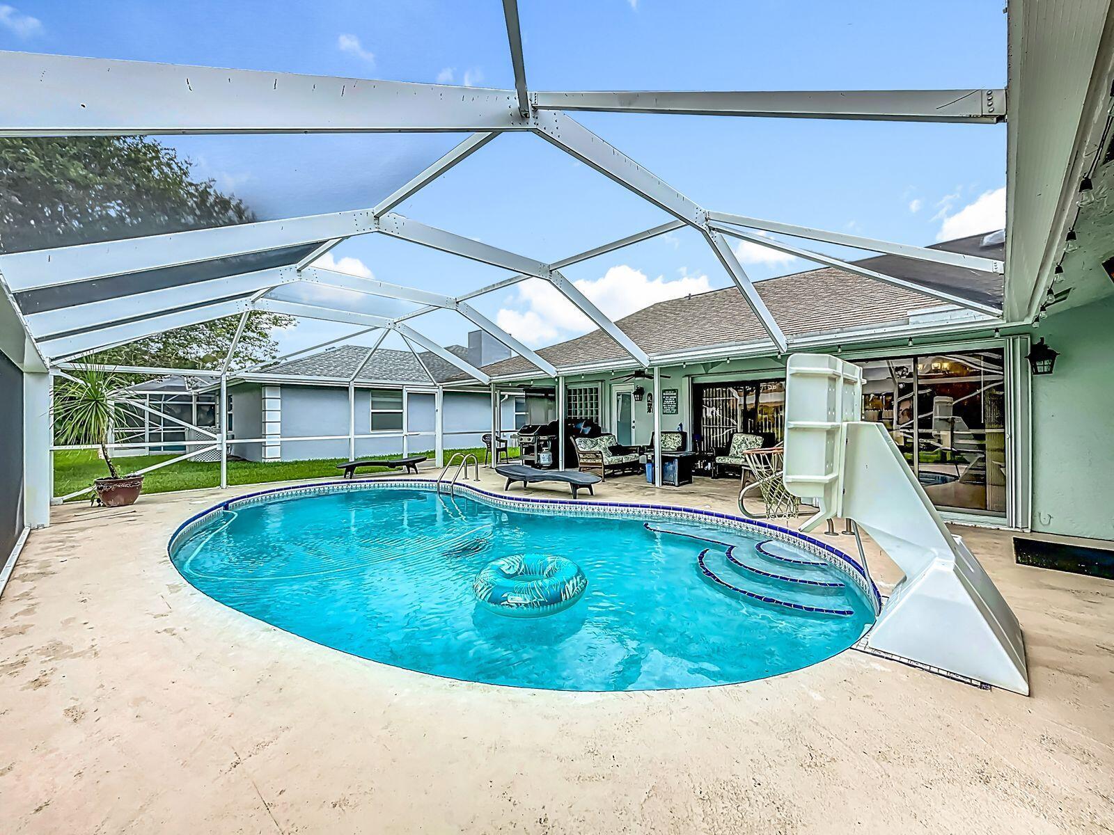 **Seller concessions up to $5,000**PRICED BELOW RECENT APPRAISAL!! Welcome to your tropical retreat in the heart of Wellington, just a short drive from vibrant West Palm Beach in beautiful Palm Beach County. This stunning 4-bedroom, 2-bathroom concrete block pool home offers 2,200 sq. ft. of expansive living space and sits on a serene canal, where you can watch playful otters and local wildlife right from your backyard. Step outside to your private oasis featuring a sparkling in-ground pool with depths ranging from 3-4 feet in the shallow end to 6-7 feet in the deep end. The large covered lanai and screened enclosure (installed 2022) provide the perfect setting for year-round outdoor living and entertainment day or night, complete with a custom peaceful water view upgrade.