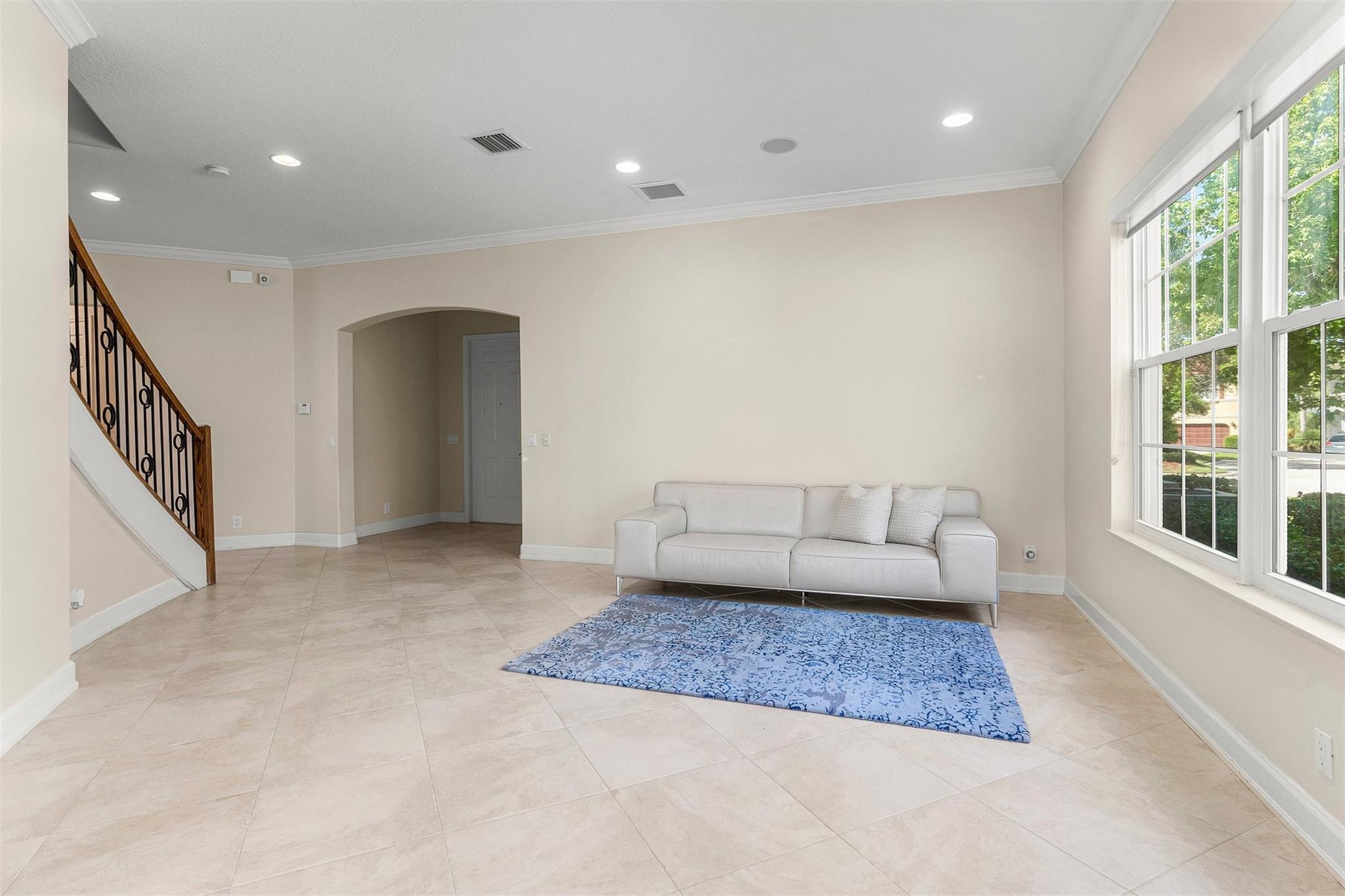 Stunning 5-bedroom, 4.5-bath lakefront home in a gated community with resort-style amenities. Enjoy wide water views and a light-filled layout featuring ceramic tile floors, knockdown ceilings, raised panel doors, and elegant Colonial trim. The gourmet kitchen offers European-style cabinetry, granite countertops, and stainless steel appliances. Upstairs, the spacious primary suite boasts a private lakefront balcony, custom closets, a sitting nook, and a spa-inspired bath with dual sinks, soaking tub, and separate shower. Generously sized bedrooms and open living areas make this home perfect for both everyday living and entertaining.