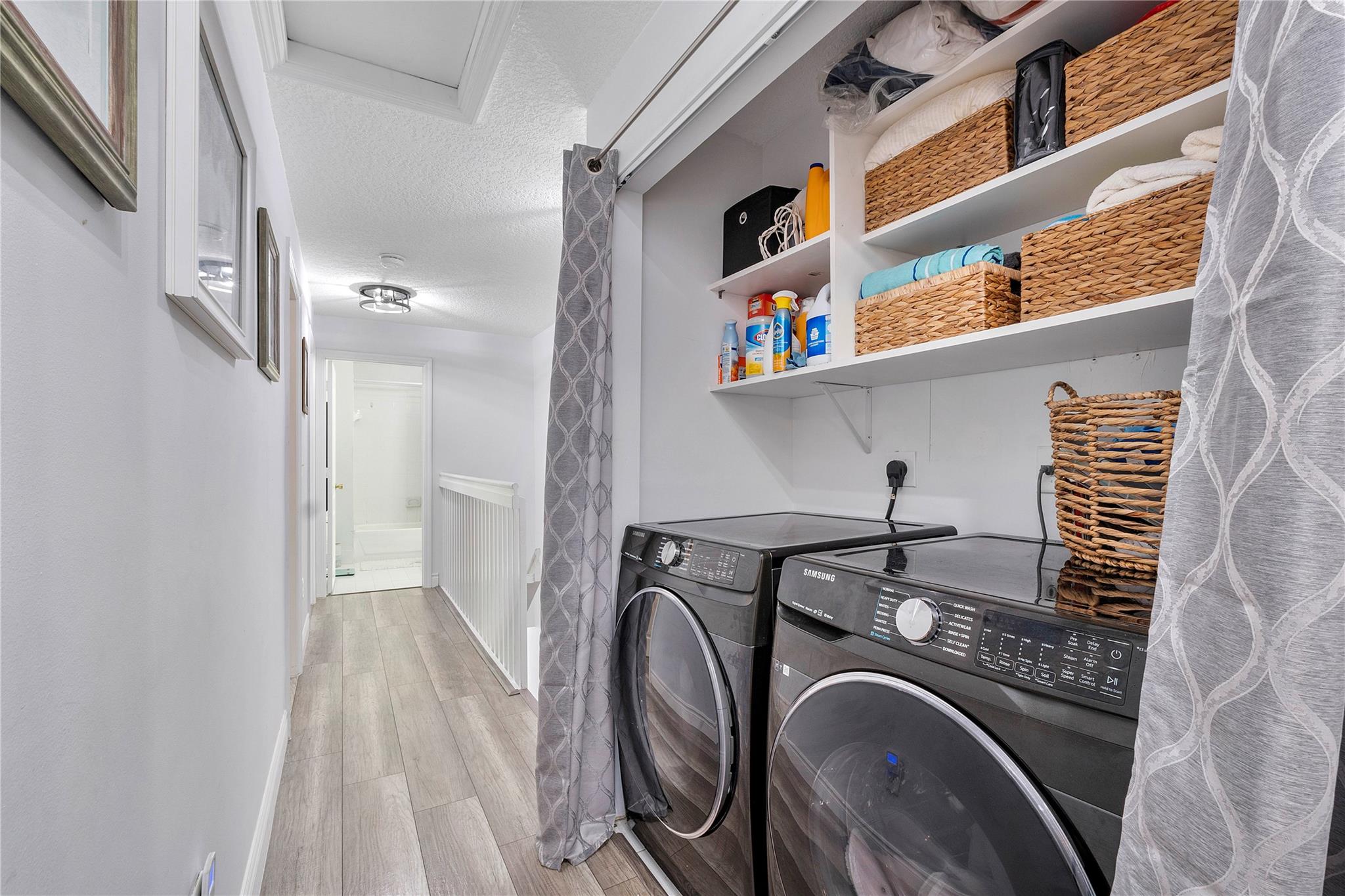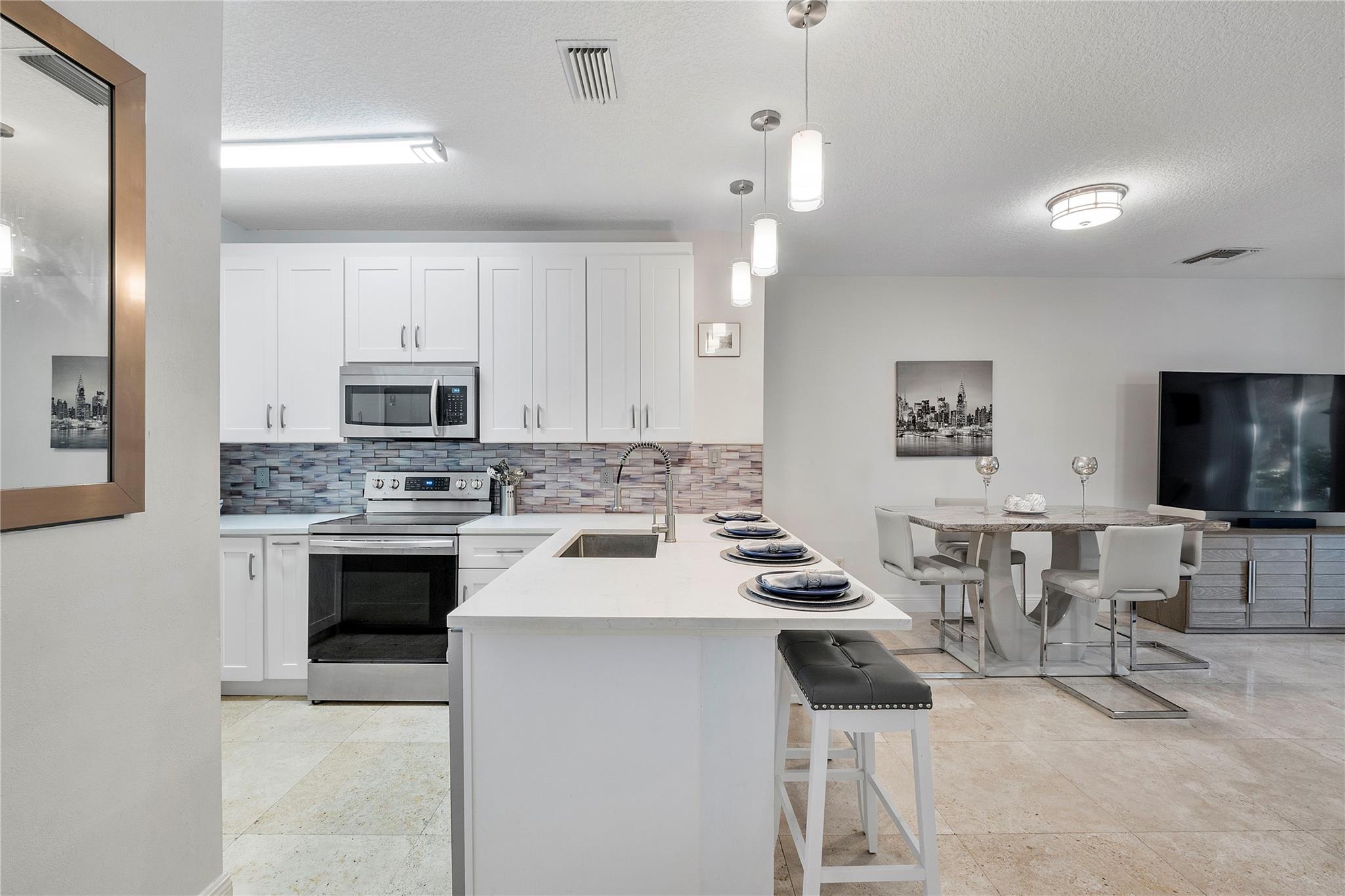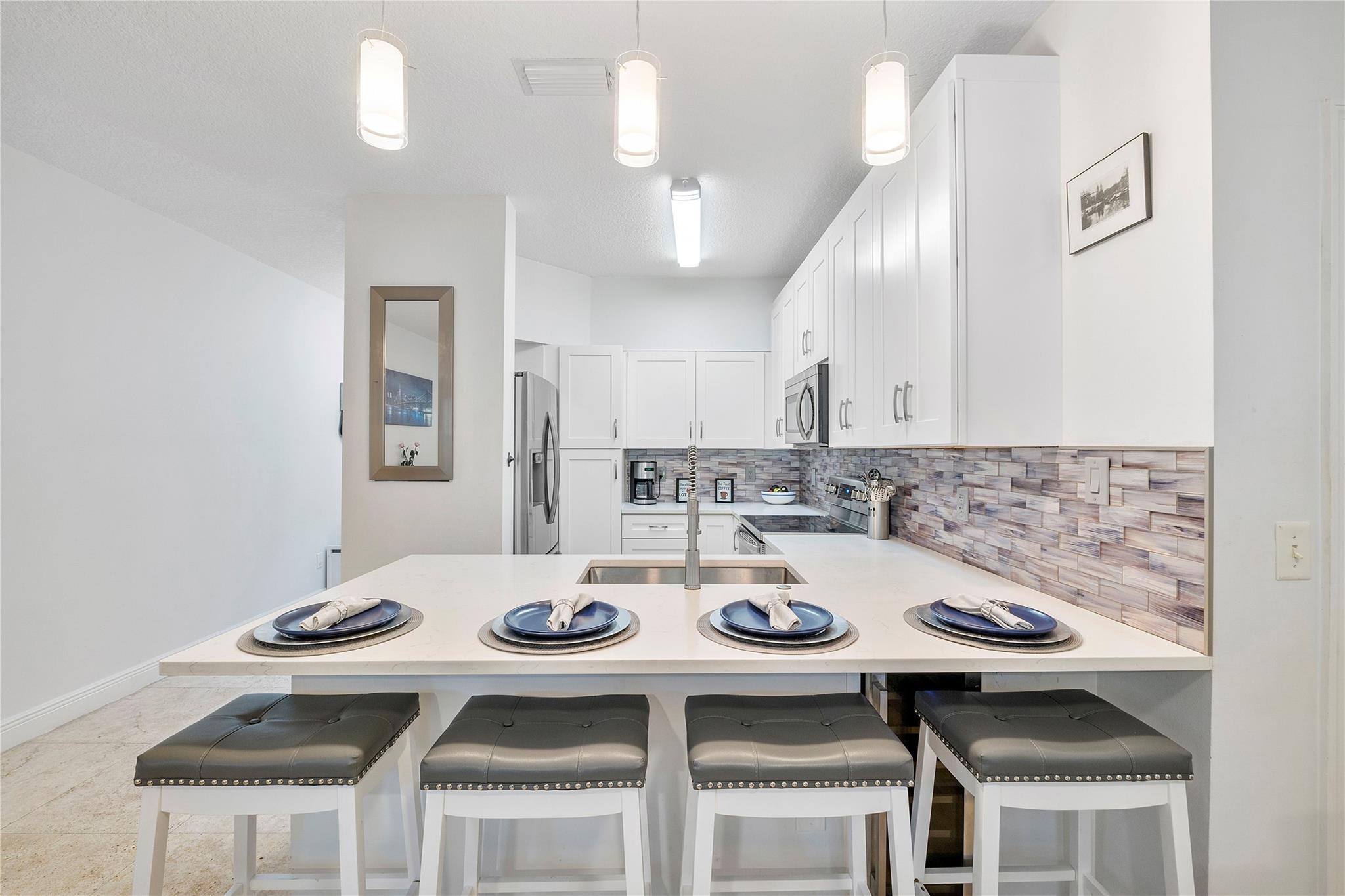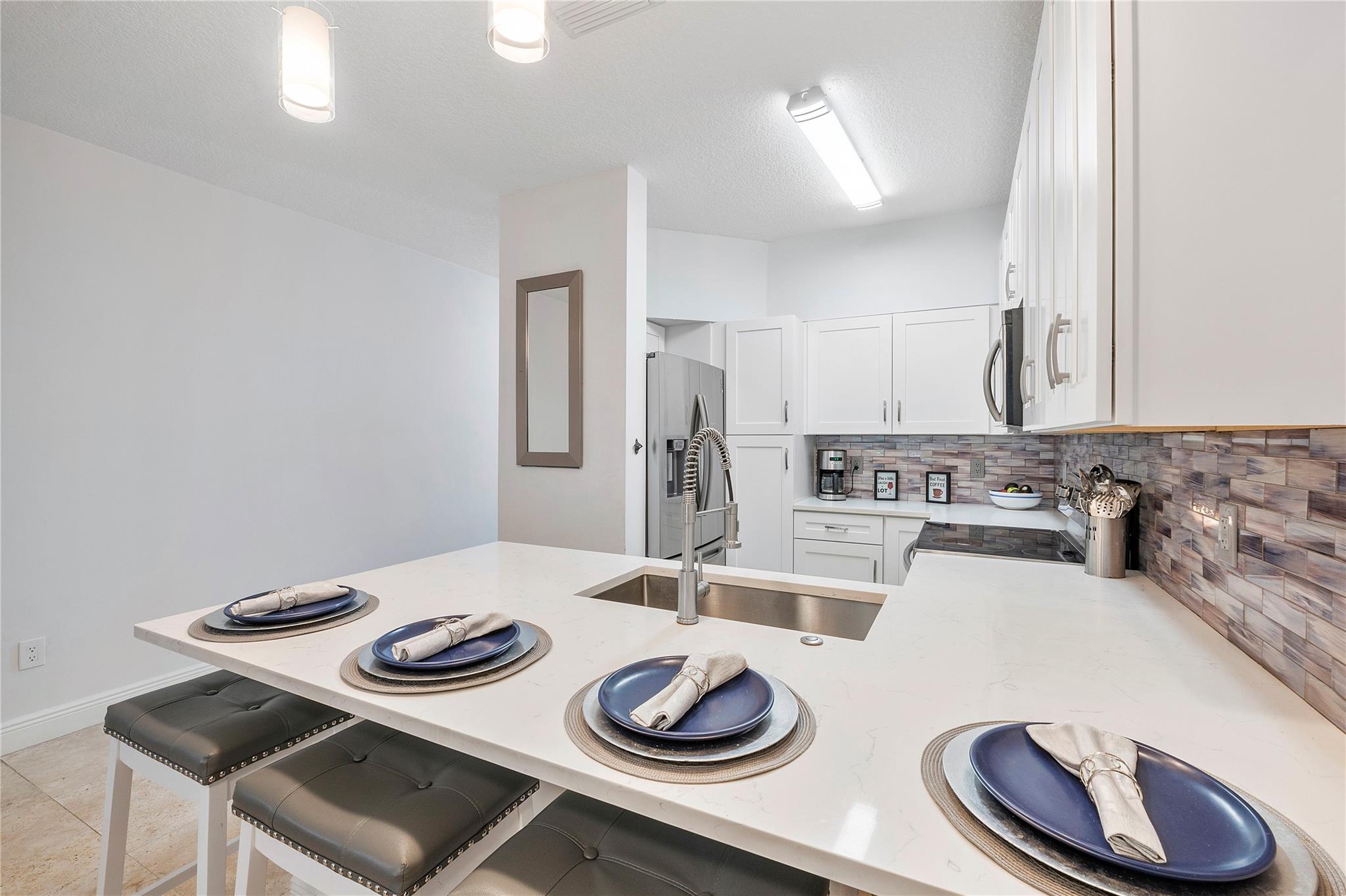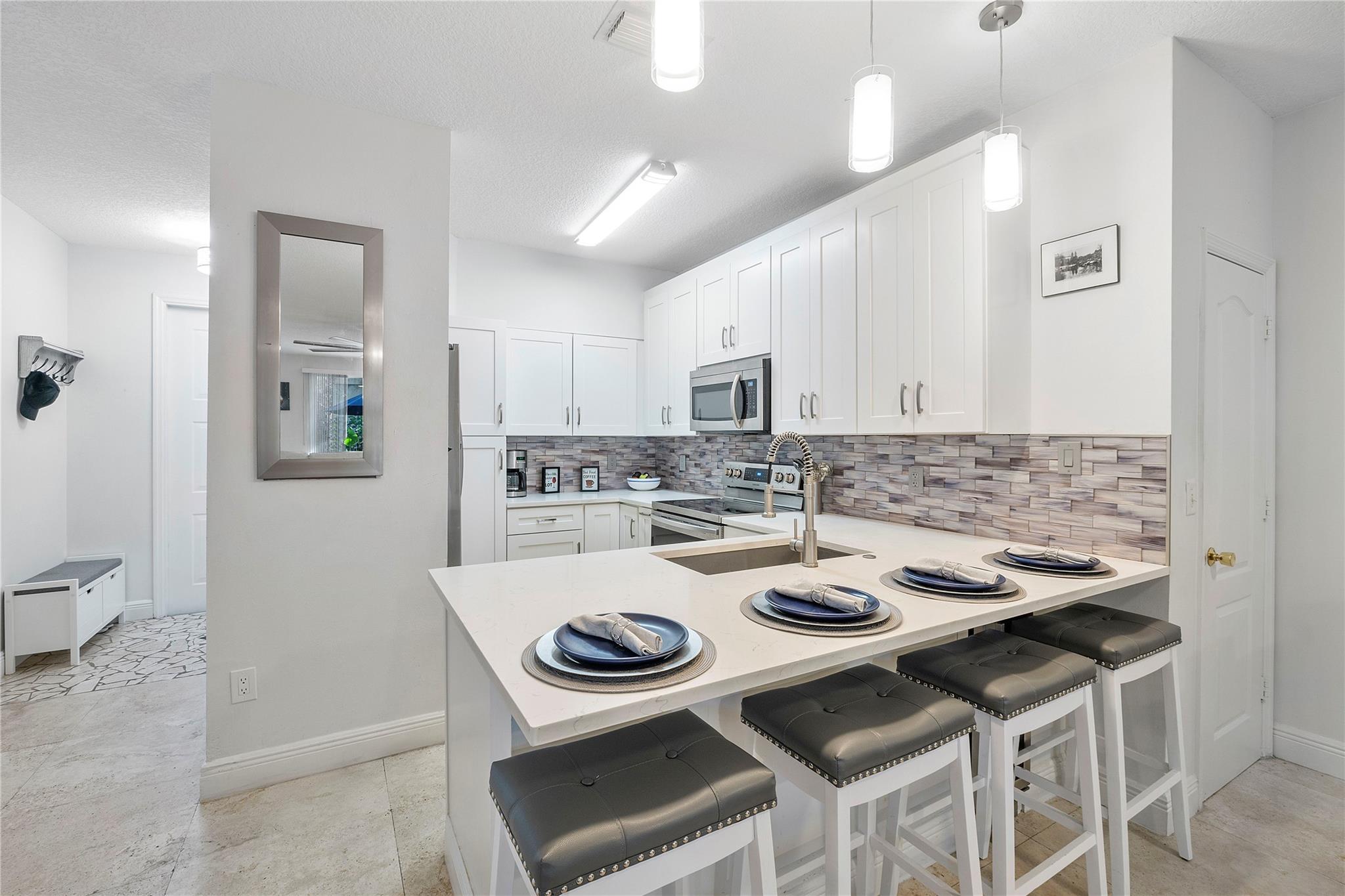 Bright and Spacious corner townhome with extra windows for natural light! This 3 bedroom, 2.5 bathroom gem in the gated community of Victoria Isles features a new roof, new custom kitchen with quartz countertops, new smudge-free stainless appliances, bar counter seating & built-in wine cooler, new water heater, new water resistant laminate flooring upstairs, marble downstairs, new washer & dryer, new lighting & ceiling fans, newer AC, recently updated master shower and more! Open living area looks out to the back patio and overlooks a nature preserve. No rear neighbors. 2 parking spaces at front door! Bonus exterior storage room. 100% storm shutters. Low HOA Fee covers gate & app, security, alarm, exterior & paint, landscaping, pool, clubhouse. Close to Promenade, highways and more!
