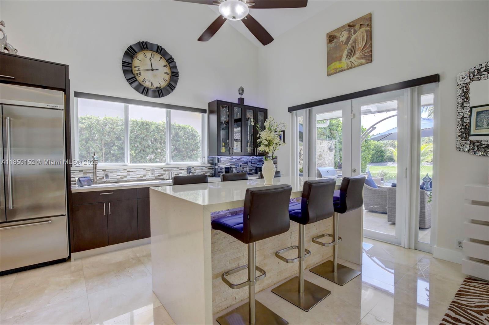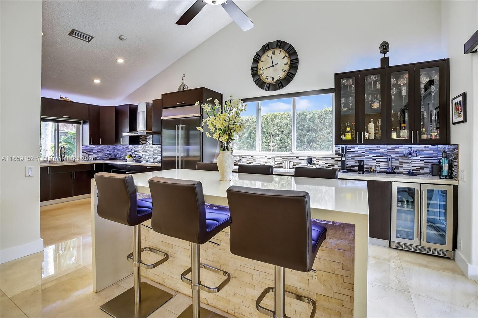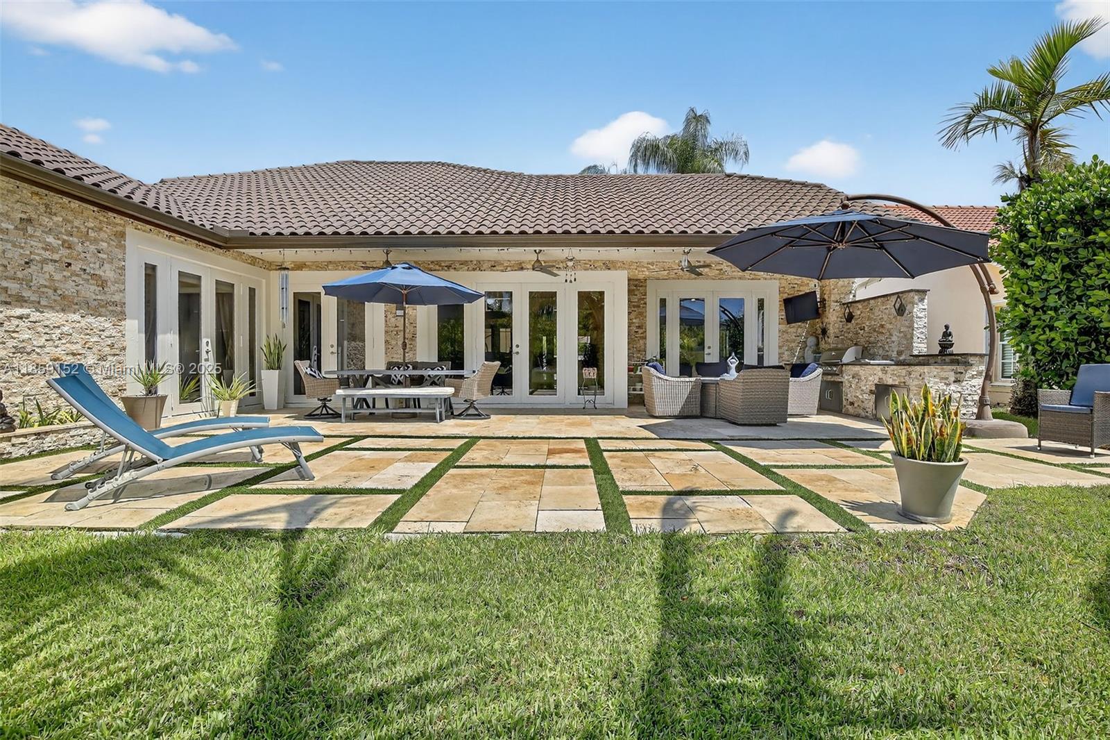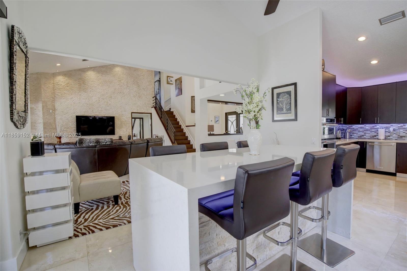 This stunning, fully renovated Estancia model waterfront home blends modern elegance with tranquil living in one of Weston’s most exclusive boutique gated communities. Featuring 4 bedrooms, 3 bathrooms, and an expansive open layout with soaring ceilings and walls of impact glass, every room is bathed in natural light and water views. The gourmet kitchen boasts a custom backsplash, quartz countertops, high-end stainless appliances, and abundant storage. The first-floor primary suite offers a spa-inspired retreat with soaking tub and walk-in waterfall shower. Outdoors, enjoy a Zen-style oasis with lush landscaping, a designer grilling area, and serene waterfront backdrop — perfect for both relaxation and entertaining. Luxury, tranquility, and exclusivity — all in one exceptional address.