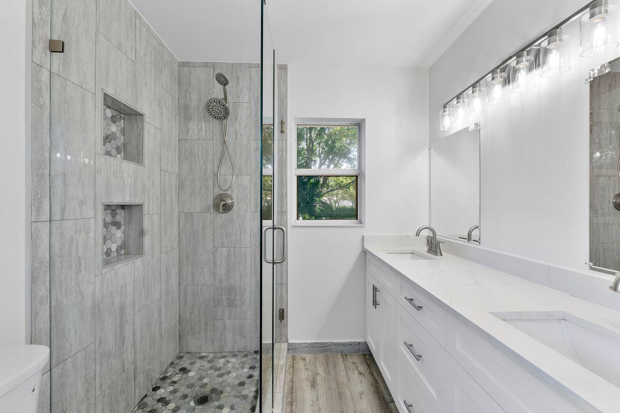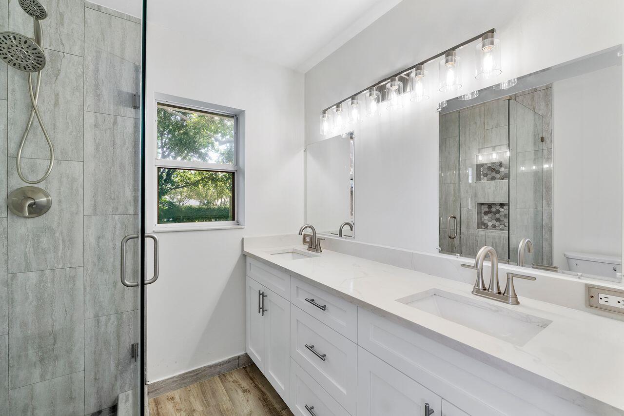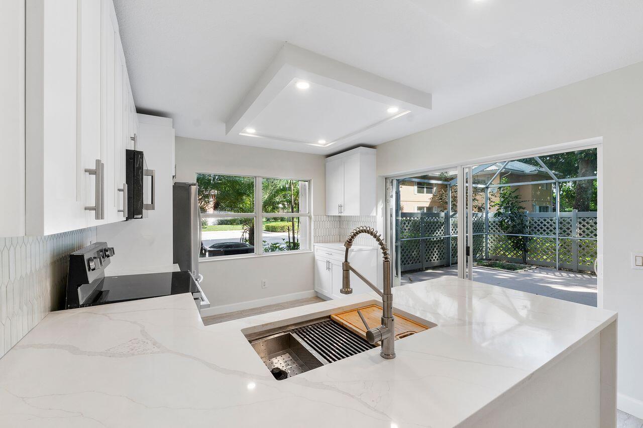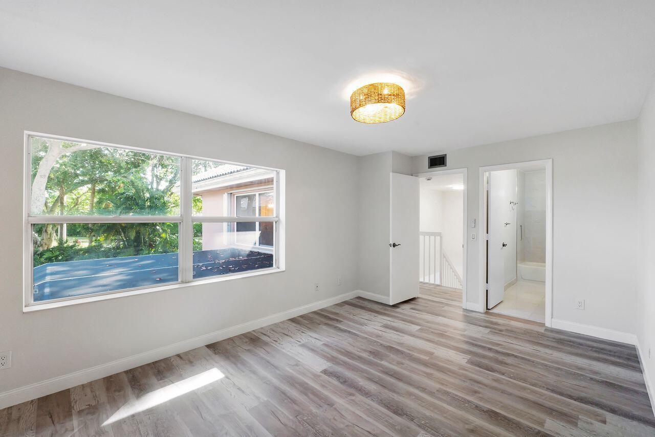 SELLERS ACCEPTING BACK UP OFFERS, This beautiful townhome with a newly renovated kitchen has white wood Shaker cabinetry, quartz counters & brand new stainless LG appliances. The first floor features the living, dining area, 1/2 bath & laundry (new washer/dryer). Beautiful neutral tile laid in a staggered pattern is throughout the main level. There's an impact slider off the kitchen & another impact window in the living room. All other windows (w/exception of upstairs BA) have accordian shutters. 2nd floor has neutral laminate flooring, 2 generous sized bedrooms w/ensuite remodeled bathrooms. No popcorn ceilings throughout! 2024 A/C & 2023 water heater. Located in a peaceful setting on a quiet cul-de-sac. Community is close to the Palm Beach Outlet Mall & great restaurants