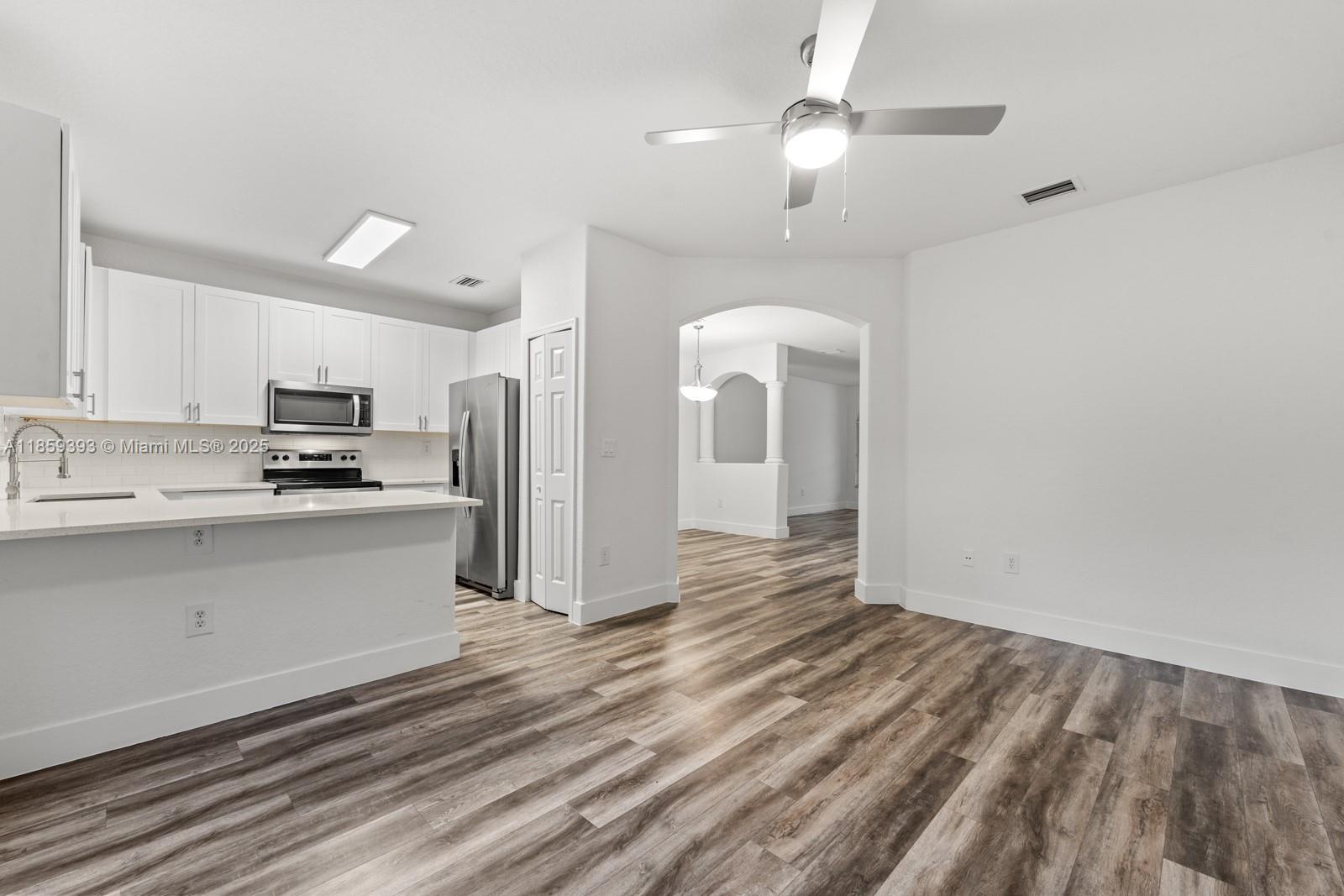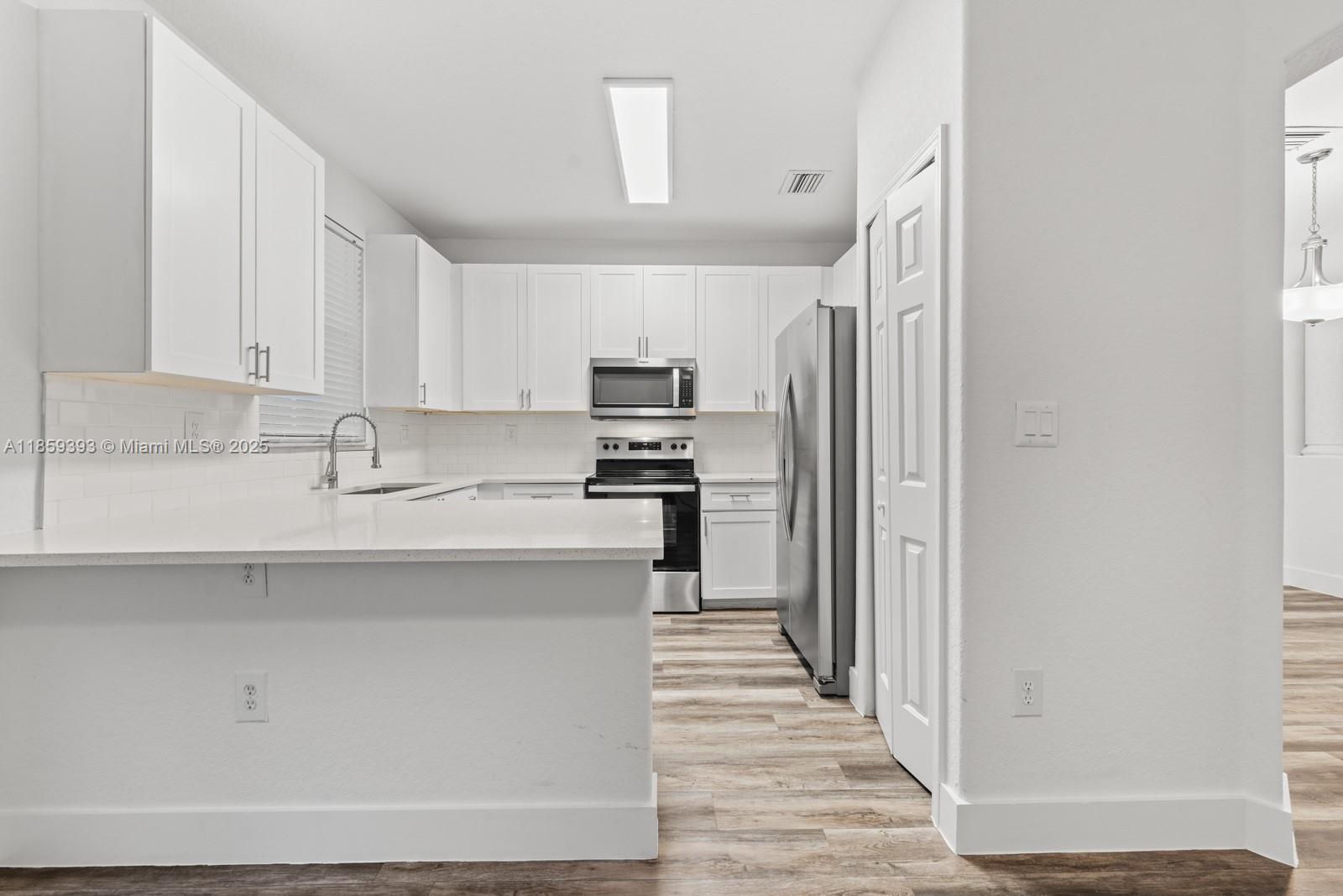 Price to sell! Beautiful, huge 4 bedroom 2.5 bath unit in a gated community with large patio and attached garage. Recently updated kitchen, white quartz countertops, updated white cabinets, stainless steel appliance package, backsplash. Updated vinyl plank flooring. Unit contains a brand new AC unit, storage room, walk in closets and community amenities include pool, clubhouse with gym and BBQ area. No HOA approvals, low HOA fees ($239 / month) include cable and internet.