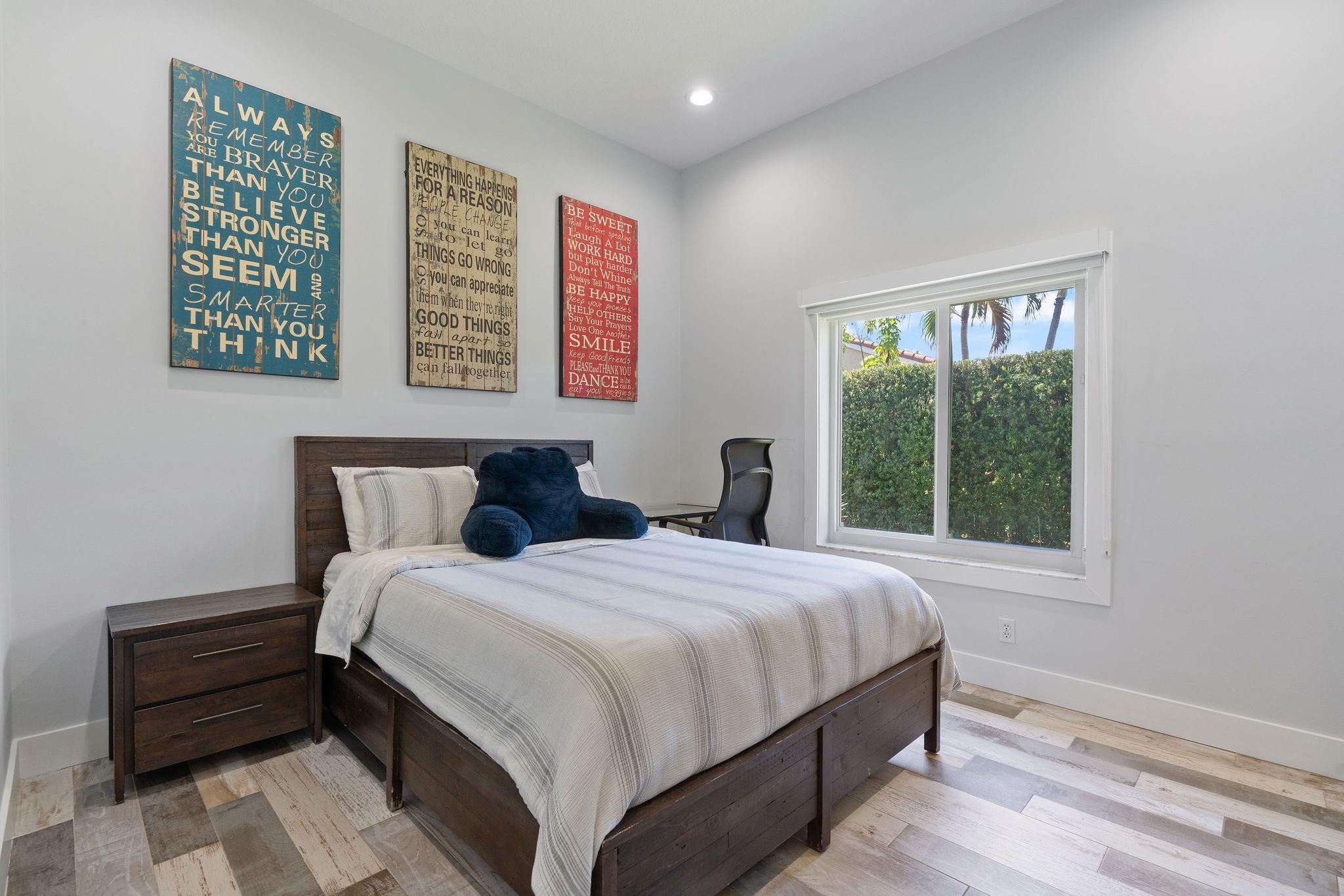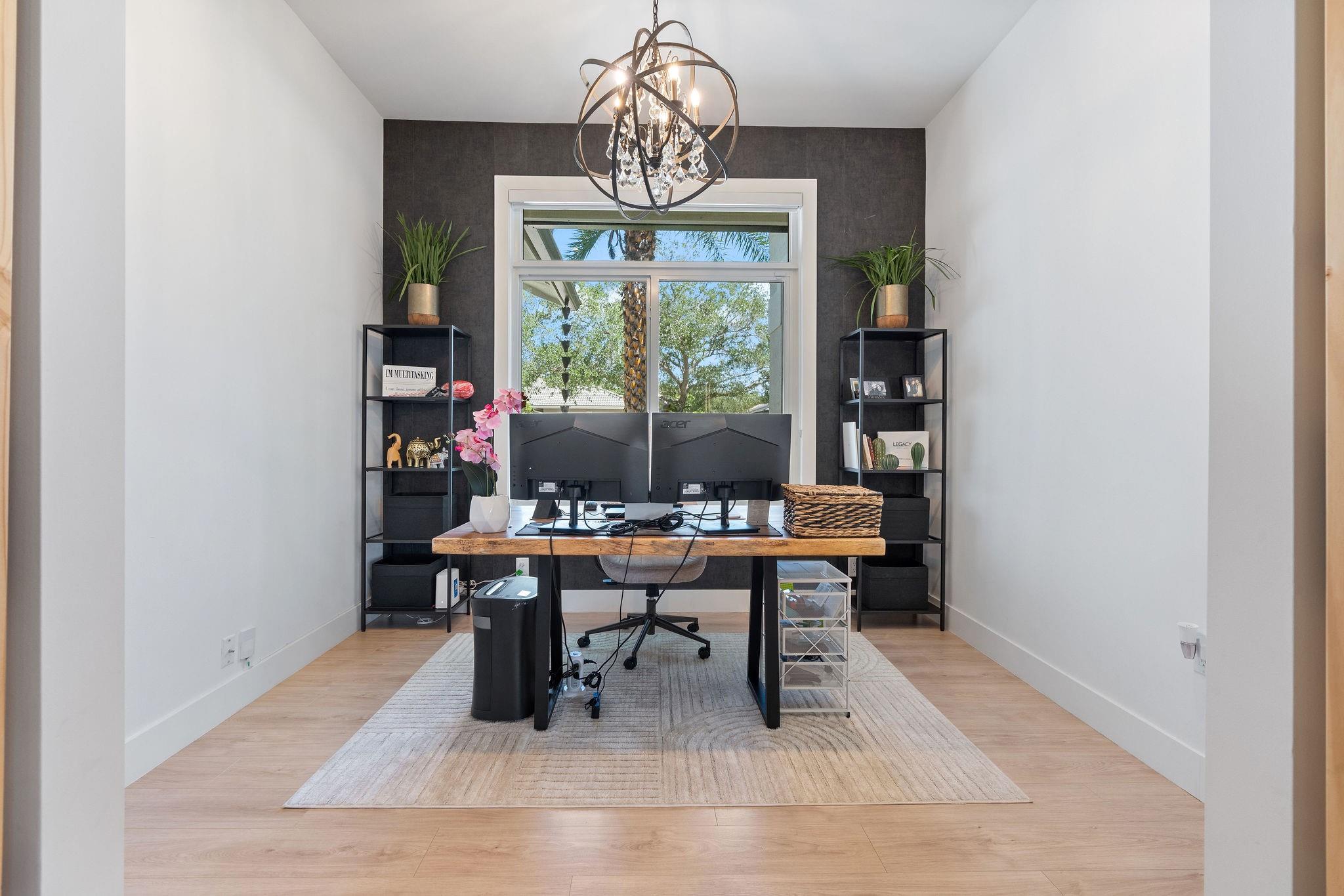 Located in the gated community of The Enclave, this completely remodeled 4-bed, 3-bath home plus office is truly turn-key. Every detail has been upgraded—new metal roof, impact windows, beautiful new floors, and a stunning chef’s kitchen with a large granite island. The open floor plan is perfect for family living and entertaining, flowing seamlessly to the outdoor oasis featuring a brand-new pool, spa, and tiled patio. The backyard is fully equipped with a built-in bug spray system for year-round comfort. Inside, enjoy upgraded bathrooms, an AC-equipped garage, and a full security system with cameras. Combining style, comfort, and functionality—this home has it all.