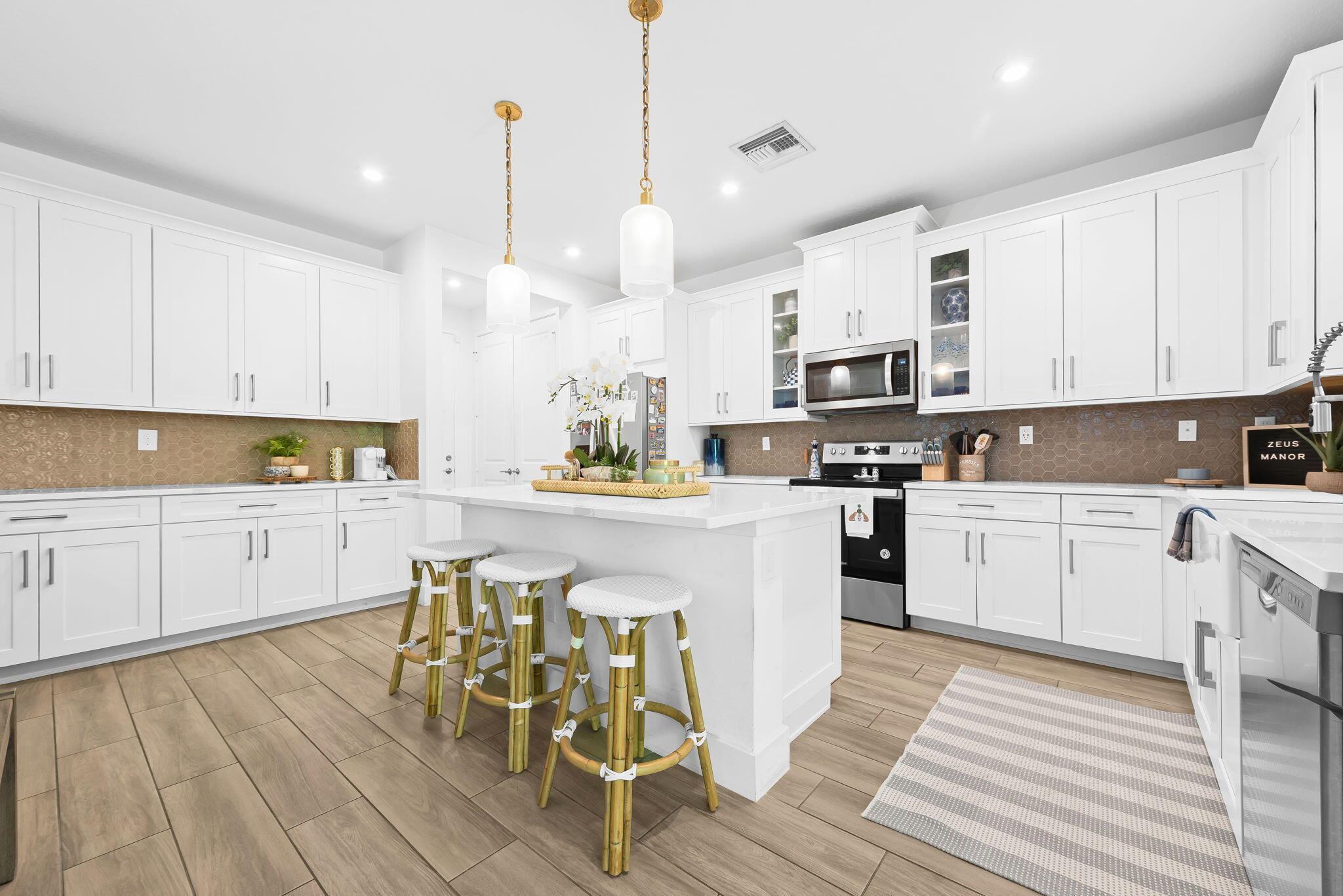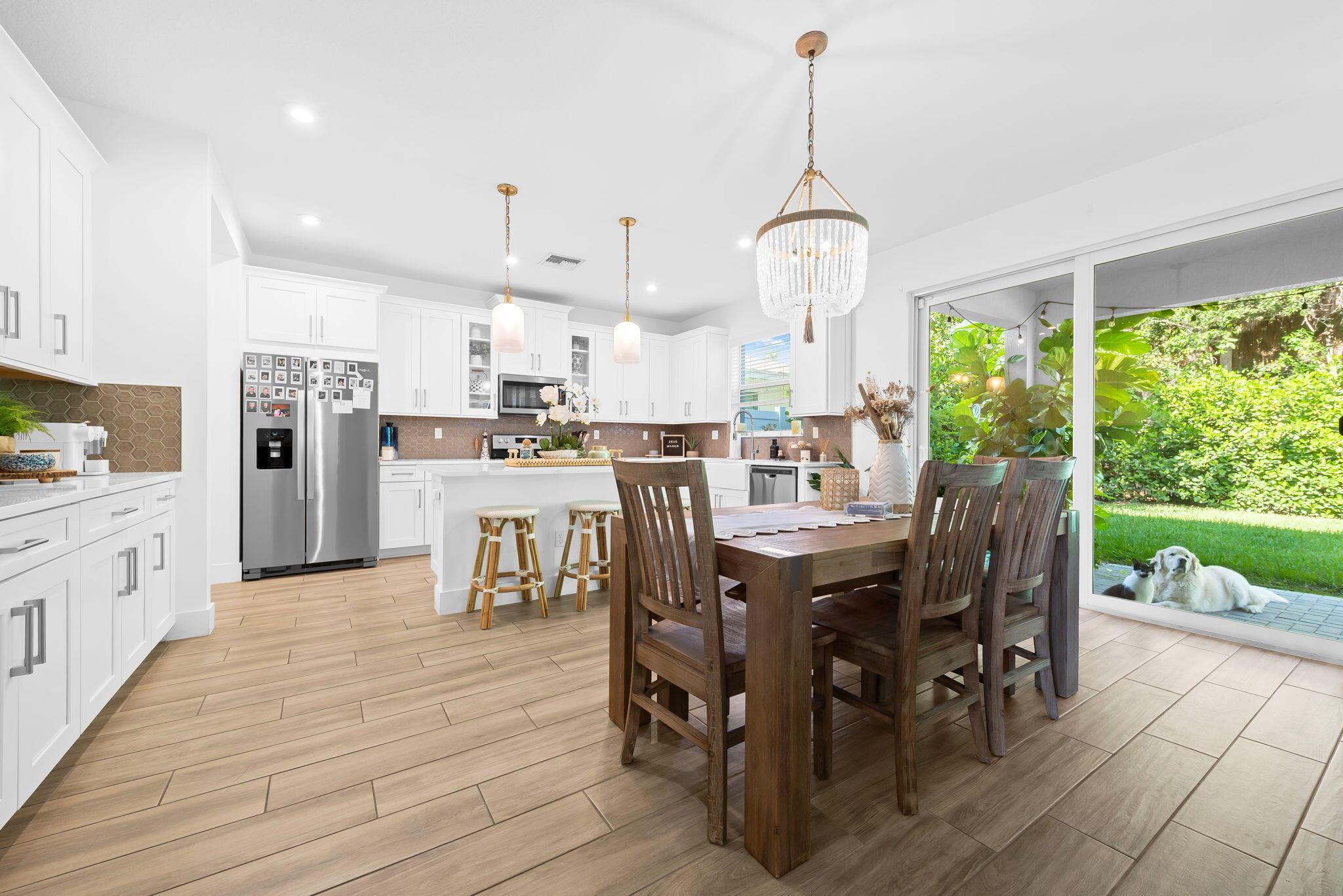 Built in 2021, New Everything, Low Insurance, Move-In Ready! Located in the gated community of Solcera that features a resort-style pool, playground, and dog park. Inside, the layout begins with a versatile flex room, then opens to a bright living dining area and a gourmet kitchen with abundant cabinetry and counter space. Sliding doors lead to a covered patio and fenced backyard that overlooks a lush landscaping area with oak trees. Upstairs, a spacious landing area with loft/den space connects to 3 bedrooms, including a generous primary suite. Enjoy low HOA fees, gated security, and easy access to I-95, Florida's Turnpike, top parks, Downtown WPB, and the area's best beaches.