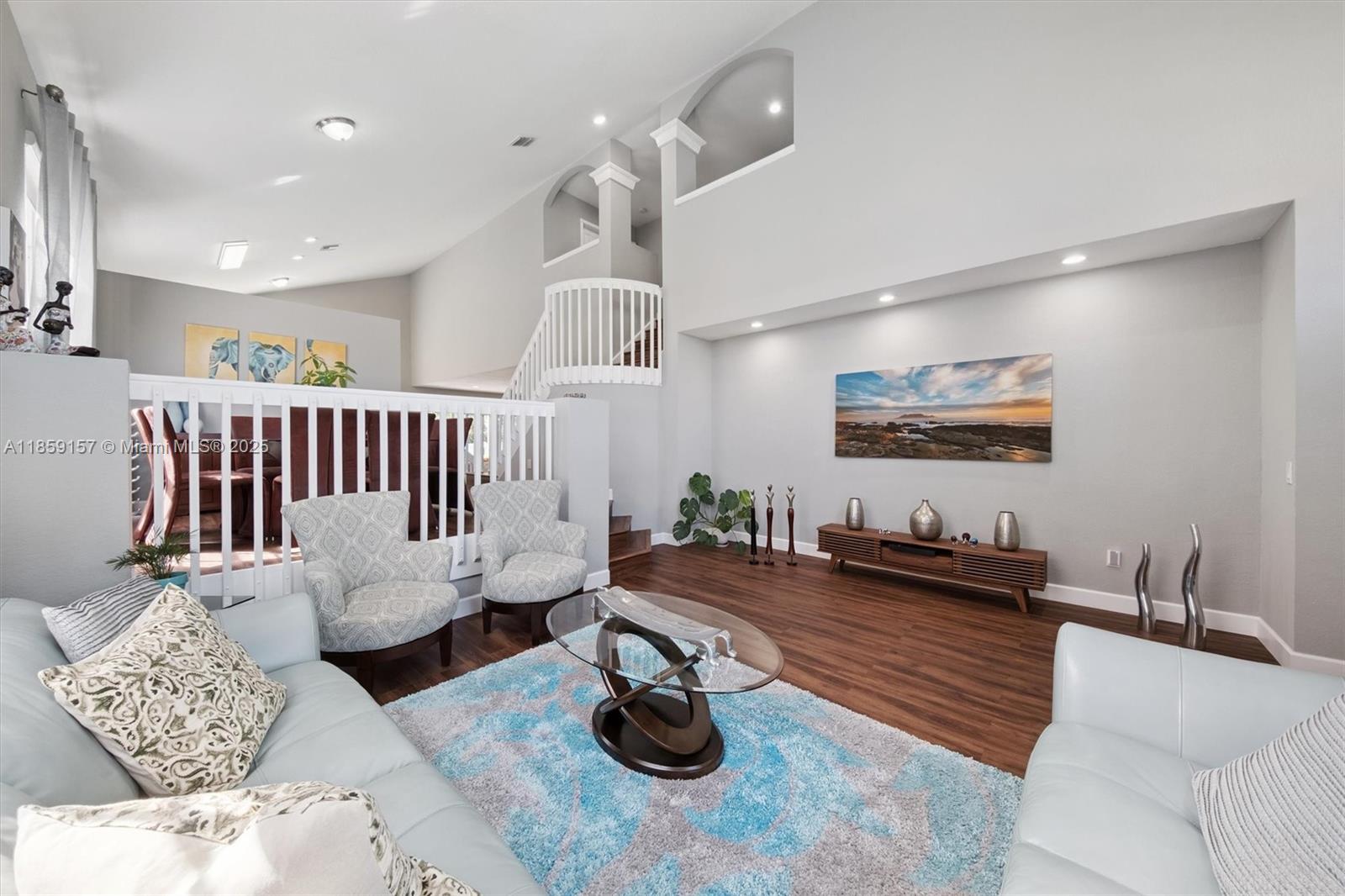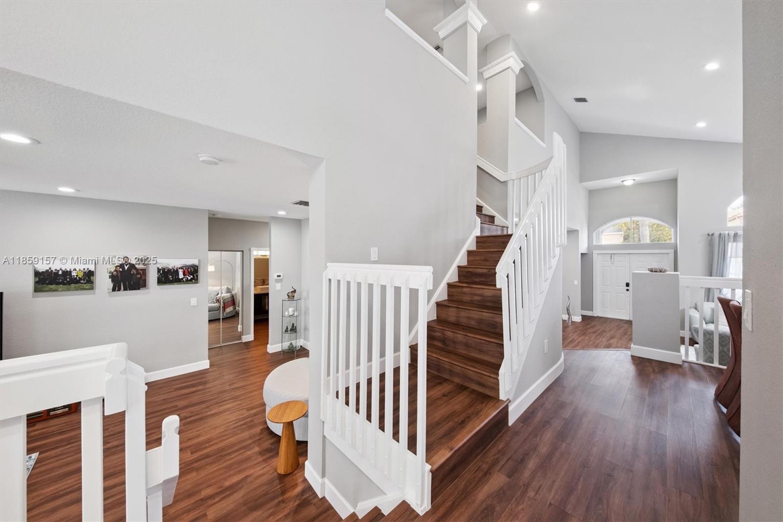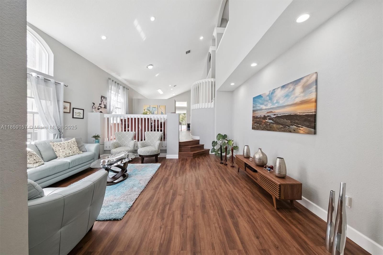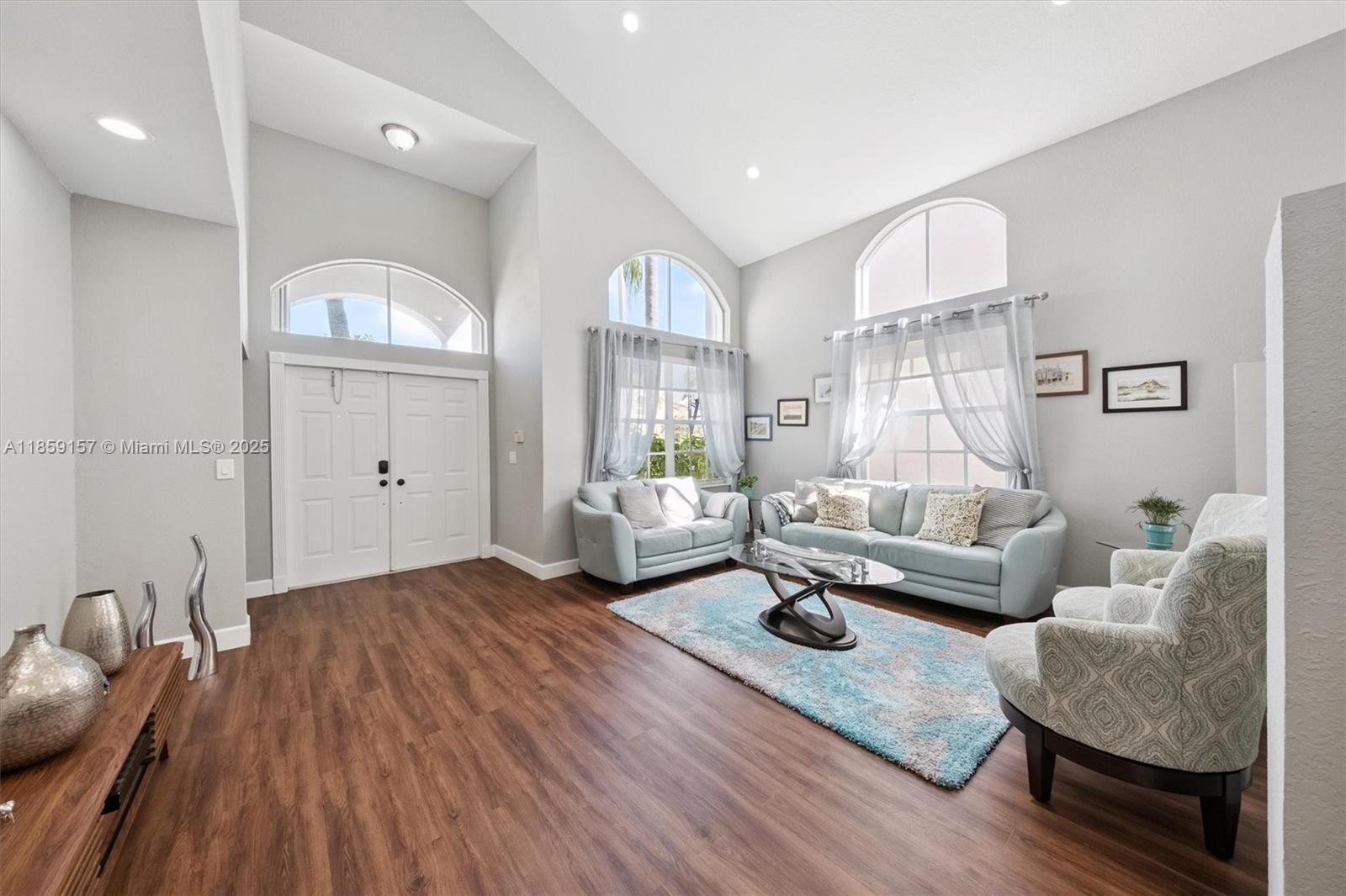 Prestigious Royal Bay at Towngate—one of Pembroke Pines’ most sought-after gated neighborhoods with top-rated schools. This bright and inviting tri-level 4BD/3BA home offers a main-level guest suite and an upstairs primary retreat with sitting area and custom closets. The backyard is both fun and luxurious—pool built in 2022 with DiamondBrite finish, salt chlorinator, therapy jets, and a covered patio with fans and lighting for year-round entertaining. Hurricane-ready with accordion shutters, Ring security, two new high-efficiency A/Cs, premium whole-house water filtration, and beautiful luxury vinyl plank floors throughout. Exceptional community amenities complete this ideal blend of style, comfort, and location.