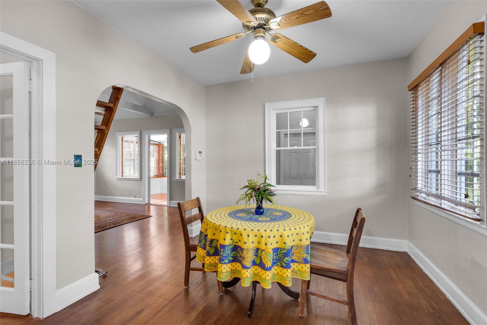 Price reduction for a quick sale! Beautiful updated historic home located in the Historic District of prestigious South Miami. Nestled in an area surrounded by native plants, birds, and butterflies, makes you feel in a tropical paradise all year round. Quiet one-way street by a canal leads to Brewer Park, a tropical Audubon Society birding location. Three bedrooms, two baths, formal living and dining area leading to a very spacious kitchen with an additional room. The spacious primary bedroom provides a serene retreat overlooking the lush backyard, with ample closet space and a private bathroom. A sunroom and loft offer additional space. Garage converted to utility room and laundry with Brazilian racks. This home combines functionality and charm with a beautiful and peaceful environment.