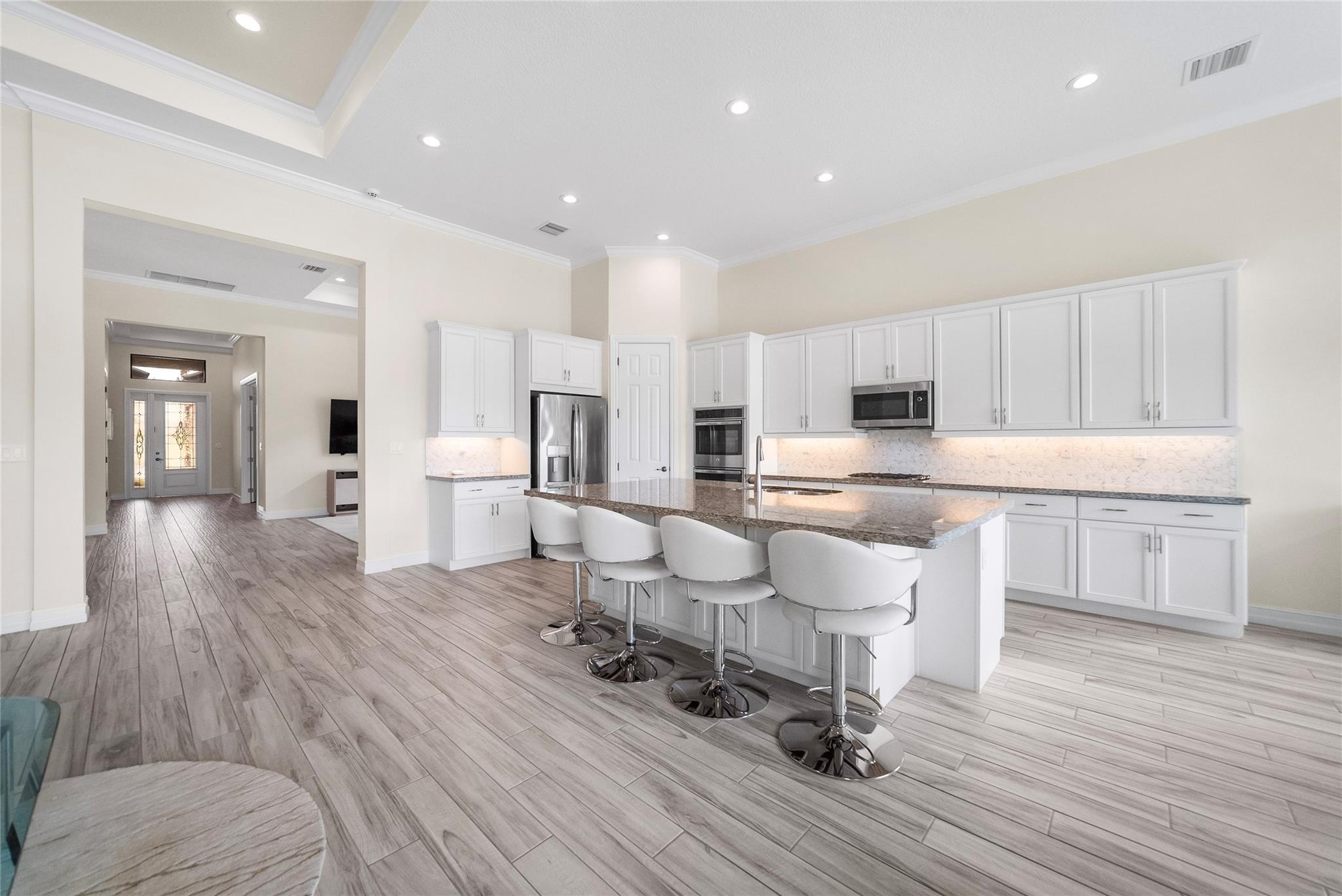 RUN! BEST DEAL & LOWEST PRICED HOME IN ALL OF FOUR SEASONS. Vera Model 3 Bedroom (3rd Bed As Office) 2.5 Bathroom Waterfront Home w/Extended Pavered Covered & Open Patio, Split Open Floor Plan, Porcelain Wood Looking Tile Floors Throughout, 12" Ceilings w/Crown Molding & Tray Ceilings, Impact Windows/Doors, Custom Front Door, Luxurious Remote Shades, Spacious Kitchen On Gas, Dual Ovens, Quartz Counters & Island w/Extra Storage, Pantry, Breakfast Area Overlooking Back Patio & Water, Large Primary Bed w/Sitting Area, Custom Walk-In Closet, Separate Tub & Shower, Dual Sinks, Bonus Room Could Be Converted To a Full 3rd Bed w/Walk-In Closet, Ample Laundry Room w/Additional Cabinets, Resort-Style Amenities, Heated Pool, Spa, Fitness Center, Cafe Tennis/Pickle Ball, 24-Hour Guard Gate, & More.