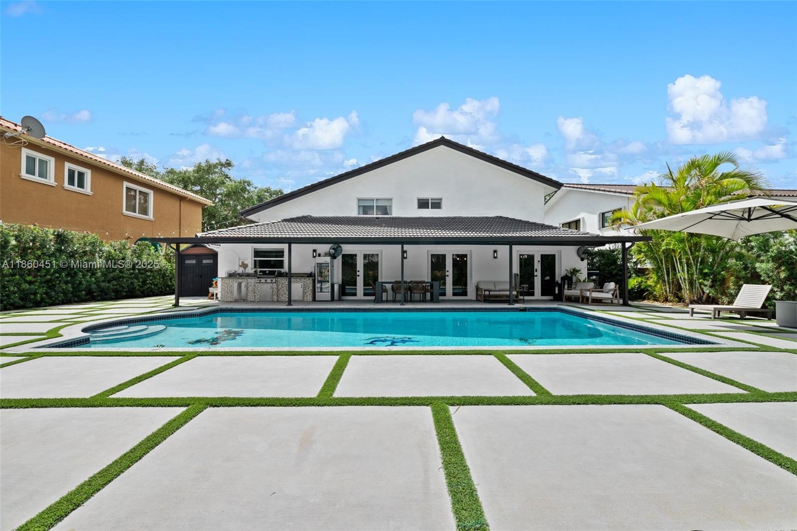 Discover this tastefully remodeled 5 bedroom residence in the prestigious Royal Oaks community of Miami Lakes, An extended driveway leads to a modern entrance, welcoming you into a home where contemporary style meets comfort. Enjoy a beautifully updated kitchen boasting sleek countertops, state-of-the-art appliances, and ample cabinetry perfect for culinary enthusiasts and entertaining alike. Master bathroom has been redesigned into a spa-like retreat with elegant finishes. The outdoor patio area has also been transformed, providing an ideal setting for relaxation and gatherings. Located near top-rated schools, shopping, dining, and major highways, this home blends modern luxury with everyday convenience. Experience the perfect blend of modern luxury & convenience in this remarkable home.