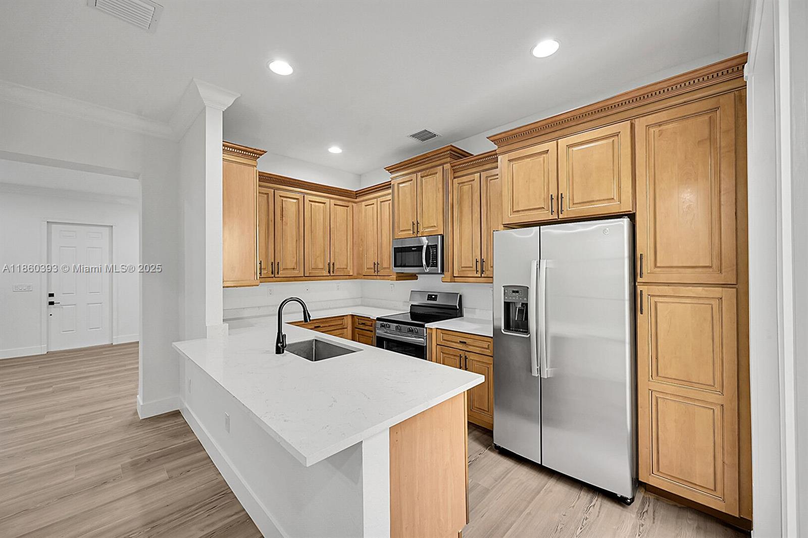Spacious, move-in ready 3-bed, 3-bath townhome in the sought-after Central Park community, featuring IMPACT WINDOWS/IMPACT GARAGE DOOR, a loft upstairs, 2-car garage, and waterproof flooring. The kitchen features stainless steel appliances, quartz countertops & ample cabinets, while the private courtyard is perfect for BBQs or relaxing. The first floor features a bedroom with full bath & a private entry—perfect for an optional renter or in-law suite. Additional perks include central vacuum, full-size laundry (upstairs), master bath w/walk-in shower & tub plus his-and-hers walk-in closets. Low HOA, resort-style amenities (pool, playground, clubhouse, fitness center), A-rated schools & just minutes to the beach, shopping, dining, dog parks, Mizner Park, Costco & the new Boca Raton ice rink.