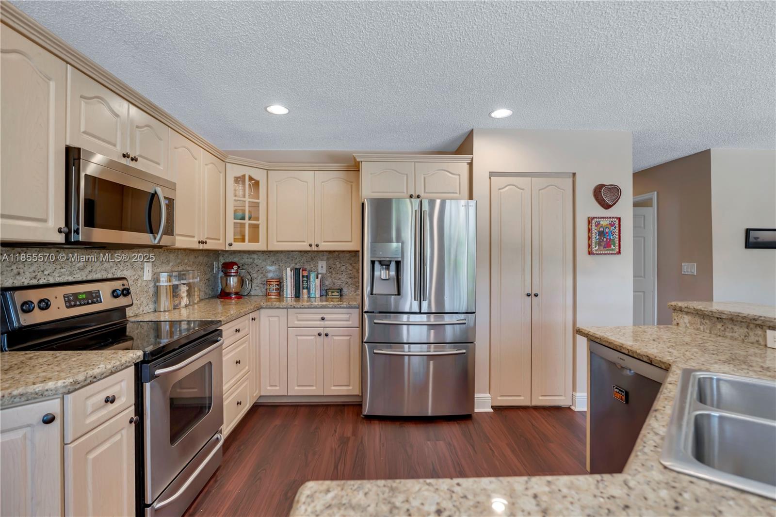 Welcome to this lovely 4-bedroom, 3-bathroom home in the desirable Marina Isles section of the guard-gated Silver Lakes community. You're welcomed by high ceilings and a peaceful lake view from the dining area. The kitchen offers granite countertops, stainless steel appliances, and plenty of space. Downstairs includes a bedroom and full bathroom, perfect for guests or a home office. Upstairs, the oversized master suite features walk-in closets and a spacious bathroom with double vanities, a Jacuzzi tub, and a walk-in shower. Two additional bedrooms share a Jack and Jill bathroom. The backyard is quiet and serene with a lake view and room for a pool. Enjoy community amenities like a clubhouse, multiple pools, and sport courts—all in a prime location near A-rated schools and shopping.