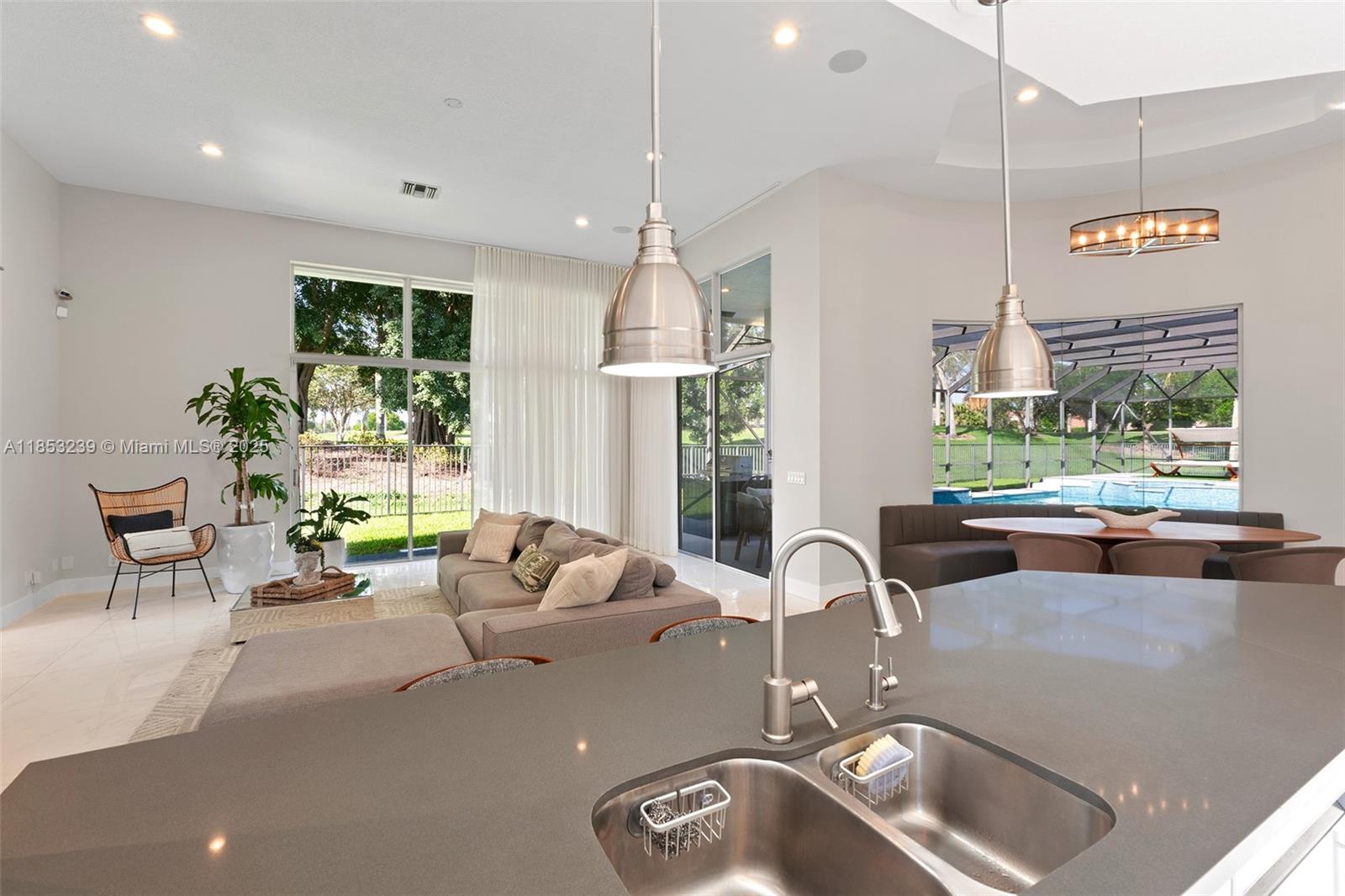 Welcome to Casa Solaris, a stunning custom home in Weston Hills filled w/ natural light, elegant finishes, & custom woodwork throughout. Enjoy golf course views framed by floor-to-ceiling windows & beautifully designed woodwork. Property offers 5 en-suite bedrooms w/ walk-in closets, a spacious office, & oversized clubroom w/ bar & climate-controlled 400-bottle glass wine cellar perfect to entertain. The primary suite offers pool views, a spa-like bath w/ soaking tub under a picture window, & a custom wood entertainment unit w/ vanity. Kitchen features white cabinetry & walk-in pantry. Includes laundry room, 3-car garage, heated saltwater pool w/ new tile & cover, renovated deck, summer kitchen w/ BBQ, 2019 roof, & full water purification + alkaline system. Near A+ schools.