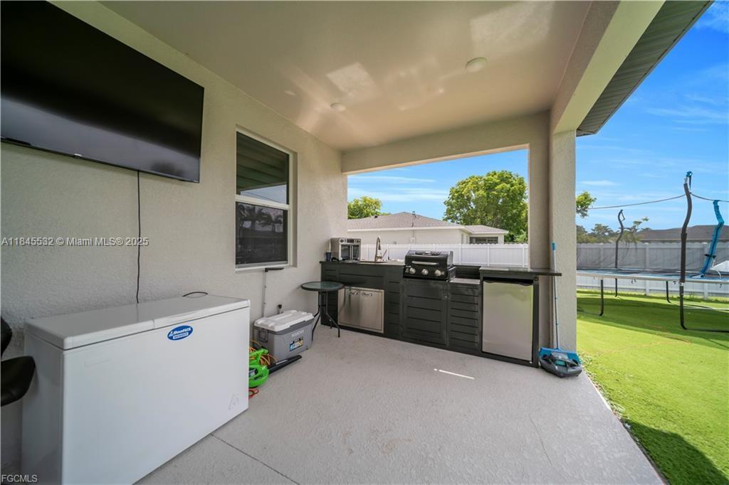 Discover the “Gran Caiman” model on an oversized lot in Southwest Florida! This new construction home offers 3 bedrooms + den and a 3-car garage converted into a 2-bedroom guest apartment with full kitchen and bath—ideal for guests or rental income. Enjoy a fenced backyard, outdoor kitchen, two pergolas, and a sparkling pool. Features include 9'4" ceilings with tray accents, 8-ft doors, tile flooring, and a modern kitchen with granite countertops, island, soft-close cabinets, and stainless-steel appliances. Built with solid concrete block, impact windows, high-efficiency A/C, sprinkler system, and elegant stone finishes. Furniture negotiable. Move-in ready—schedule your private tour today!