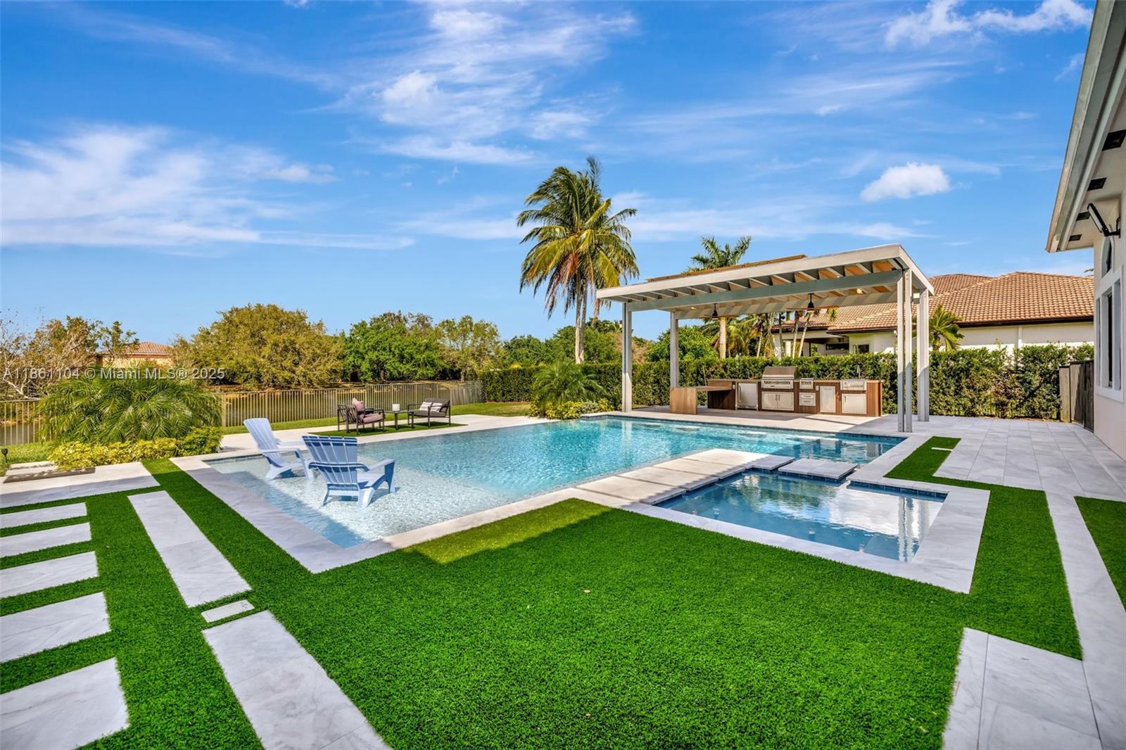 Luxurious estate home in exclusive guard gated community of Riverstone. Completely renovated w/ the finest finishes. Lakefront - 1 story home consisting of 5 bedrooms, plus office & media rooms on 1 acre. Integrated smart home boasts Italian porcelain tile flooring & countertops, Monogram appliances, high end lighting & plumbing fixtures. Stunning kitchen w/ elongated center island. Primary his/her baths - floating vanities & stand alone jacuzzi tub. Newly constructed infinity pool features marble pavers, jacuzzi, pool bar stools, tanning ledge & rain curtain. Pergola covers the outdoor BBQ kitchen. Impact glass windows/doors. Solar panels. EV charger. Attention to detail shows in every aspect of this home. Community amenities: tennis, b-ball & pickleball courts, pavilion & playgrounds.