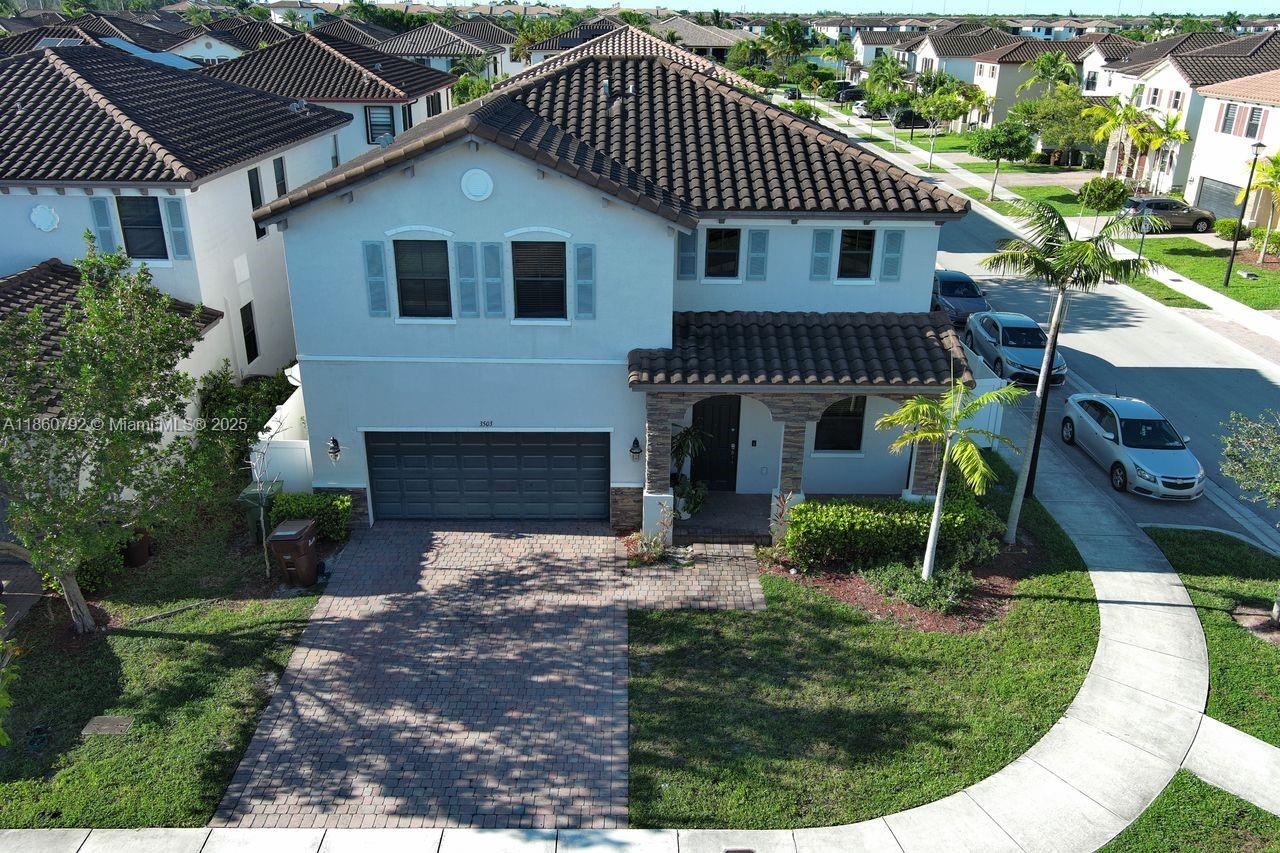 Welcome to this beautiful 2-story corner-lot home offering 2,800 sq ft of living space in one of Hialeah’s most desirable community BONTERRA. This residence features 4 spacious bedrooms, 2.5 bathrooms, and a layout designed for comfort and style. The main floor boasts ceramic tile throughout, while the second level features warm wood flooring. A 2-car garage plus 2 additional driveway spaces provide parking for up to 4 vehicles. The large backyard with a paved patio is ideal for entertaining family and friends. Located in a sought-after neighborhood with top-rated schools, this move-in ready home also offers access to community amenities including a pool and more. A true must-see! Conveniently located near I-75, Palmetto (826), Turnpike & 924.