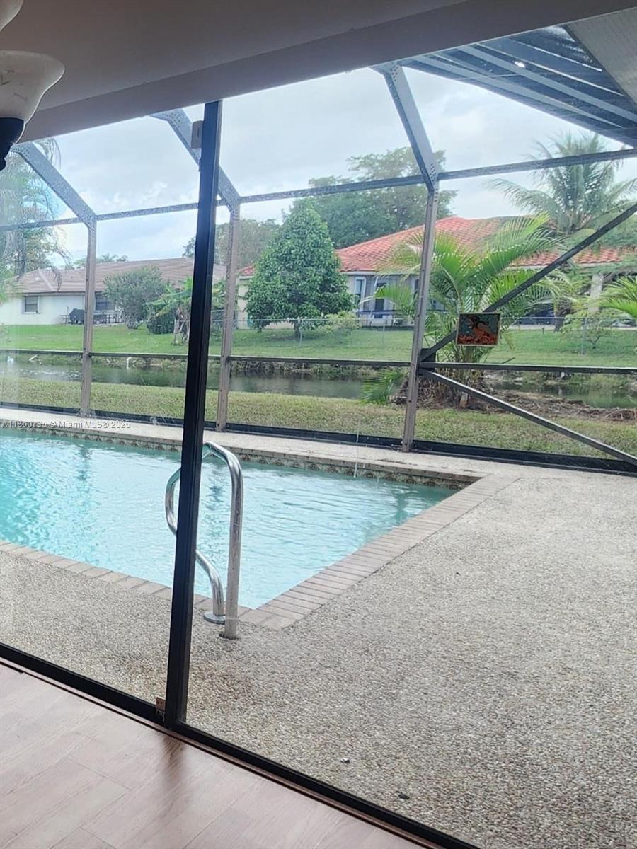 The house is after renovation: popcorn ceiling off, completely new bathrooms, painting, lights, fans, brand new A/C system, excellent condition washer and dryer machines, and water heater, popcorn OFF. Great 4/2.5 bedrooms one-story single house in an excellent family neighborhood - Cypress Lakes in Coral Springs. It has big rooms, a split layout, a big-screened patio, a pool, and a canal. Great kitchen with real wood cabinets, granite counters & backsplash, stainless steel appliances, breakfast nook has the pool & water views, vaulted ceilings, and accordion Hurricane Shutters. All rooms around the house have laminate floors. "A" rated schools, near Sawgrass Expwy, parks, restaurants, and shopping plazas. No HOA approval is needed; it's not a gated community.