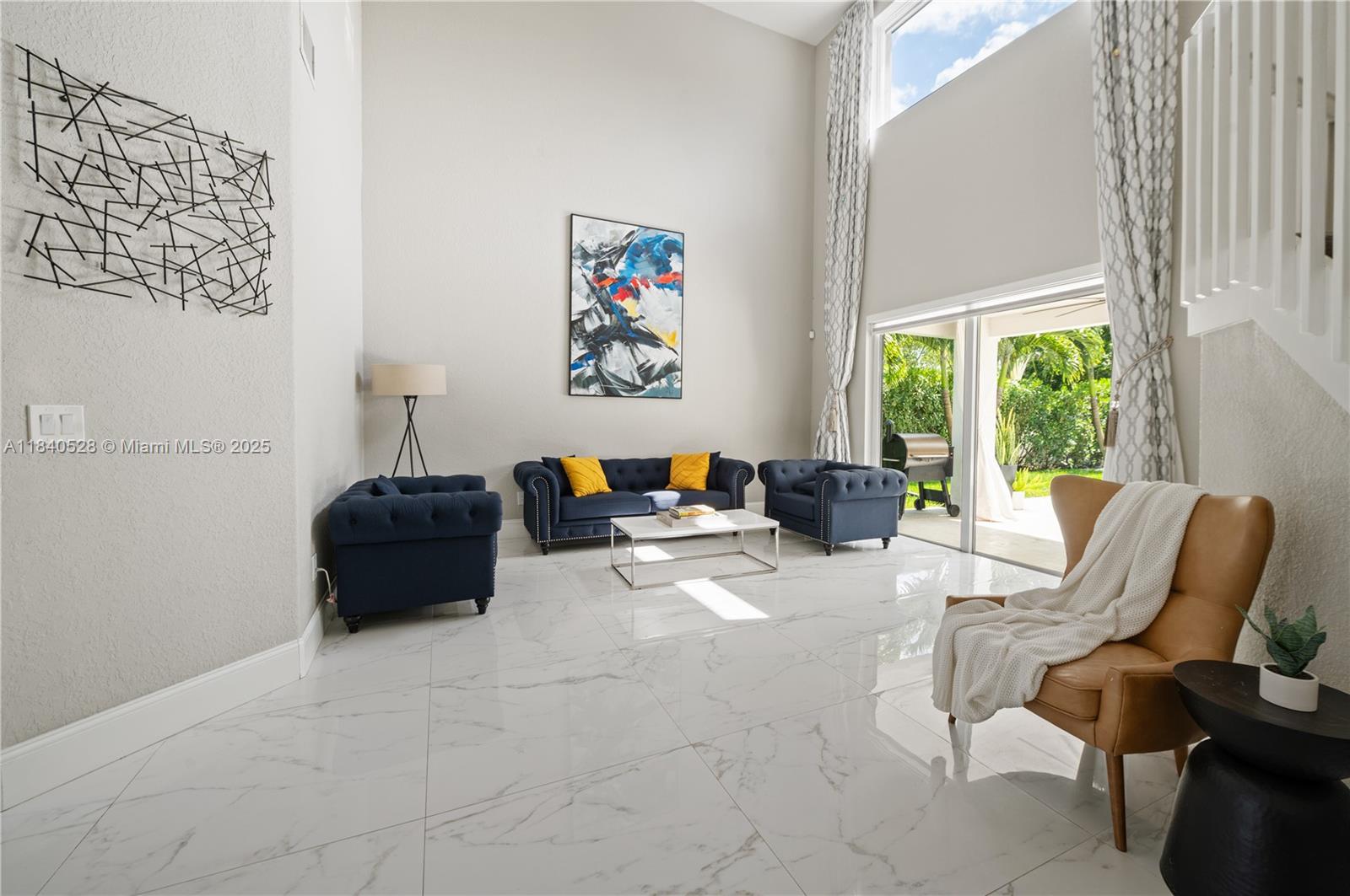 Stunning 6BD/4BA home in gated community of The Estates of Pembroke Shores! This spacious residence features a beautifully updated first floor with elegant porcelain flooring and a fully remodeled modern kitchen w/ quartz countertops, stainless steel appliances, and sleek cabinetry. Generous layout includes large bedrooms and a luxurious primary suite w/walk-in closet and spa-style bath upstairs. First floor has 1 bedroom/office and 1 full bathroom. Enjoy a private backyard oasis with heated pool, jacuzzi, and lush landscaping—perfect for relaxing or entertaining. New pool heater, A/C units 4 yrs each, water heater (4 months). Roof has 12 yrs. life. Impact Sliding doors and front door. Located near "A" schools, parks, shopping, and highways. Sellers may request 3-4 weeks post occupancy.