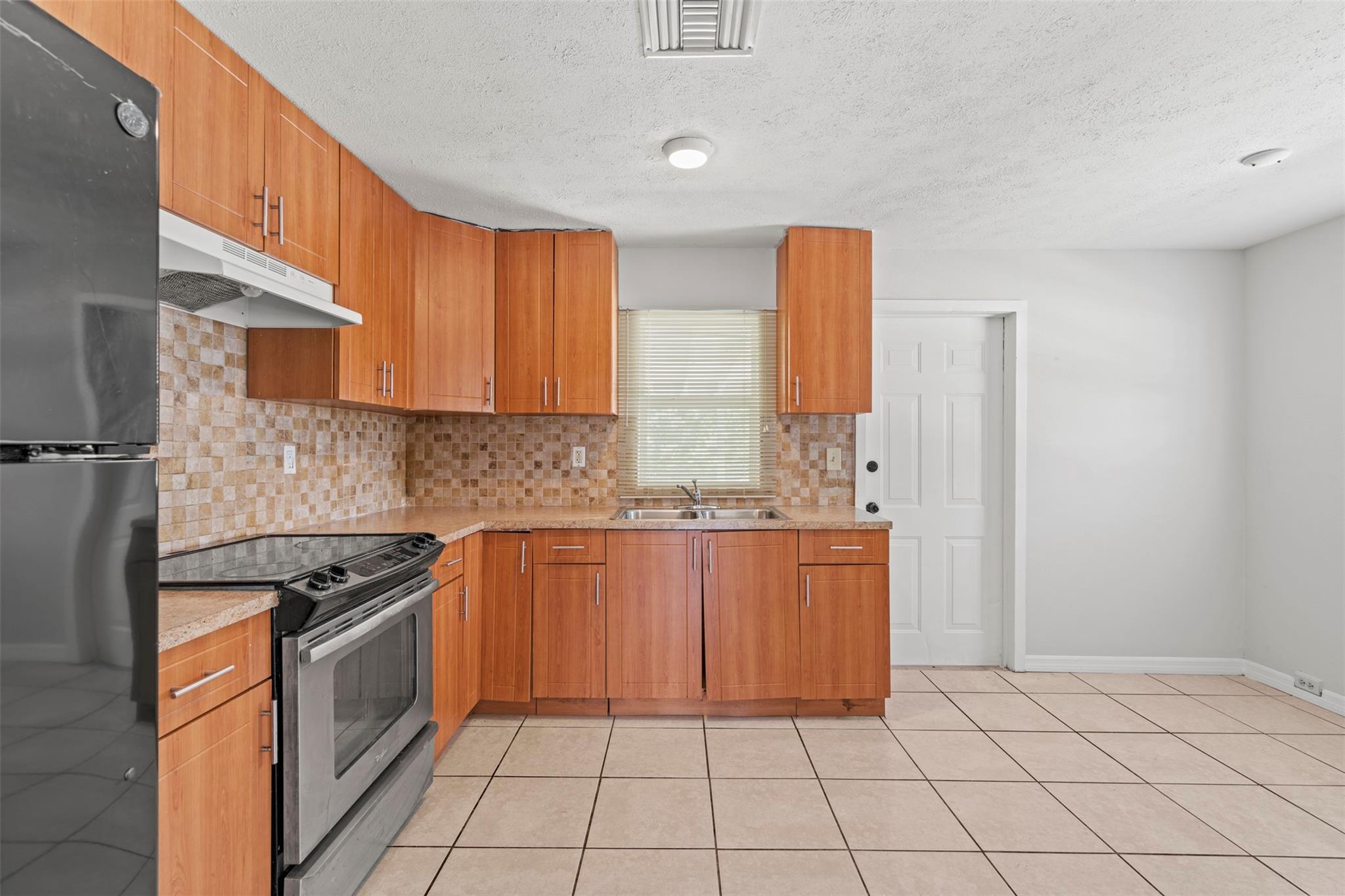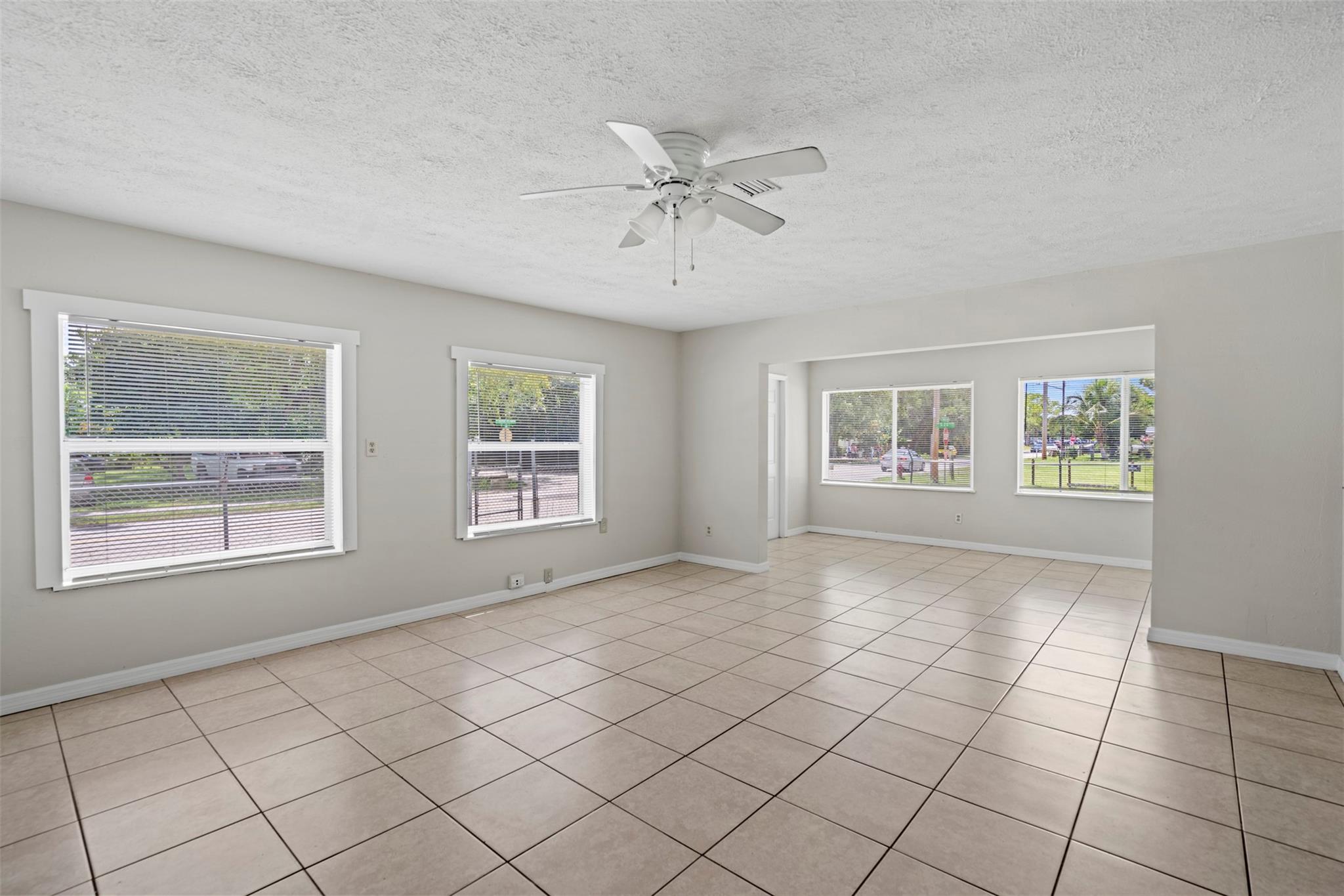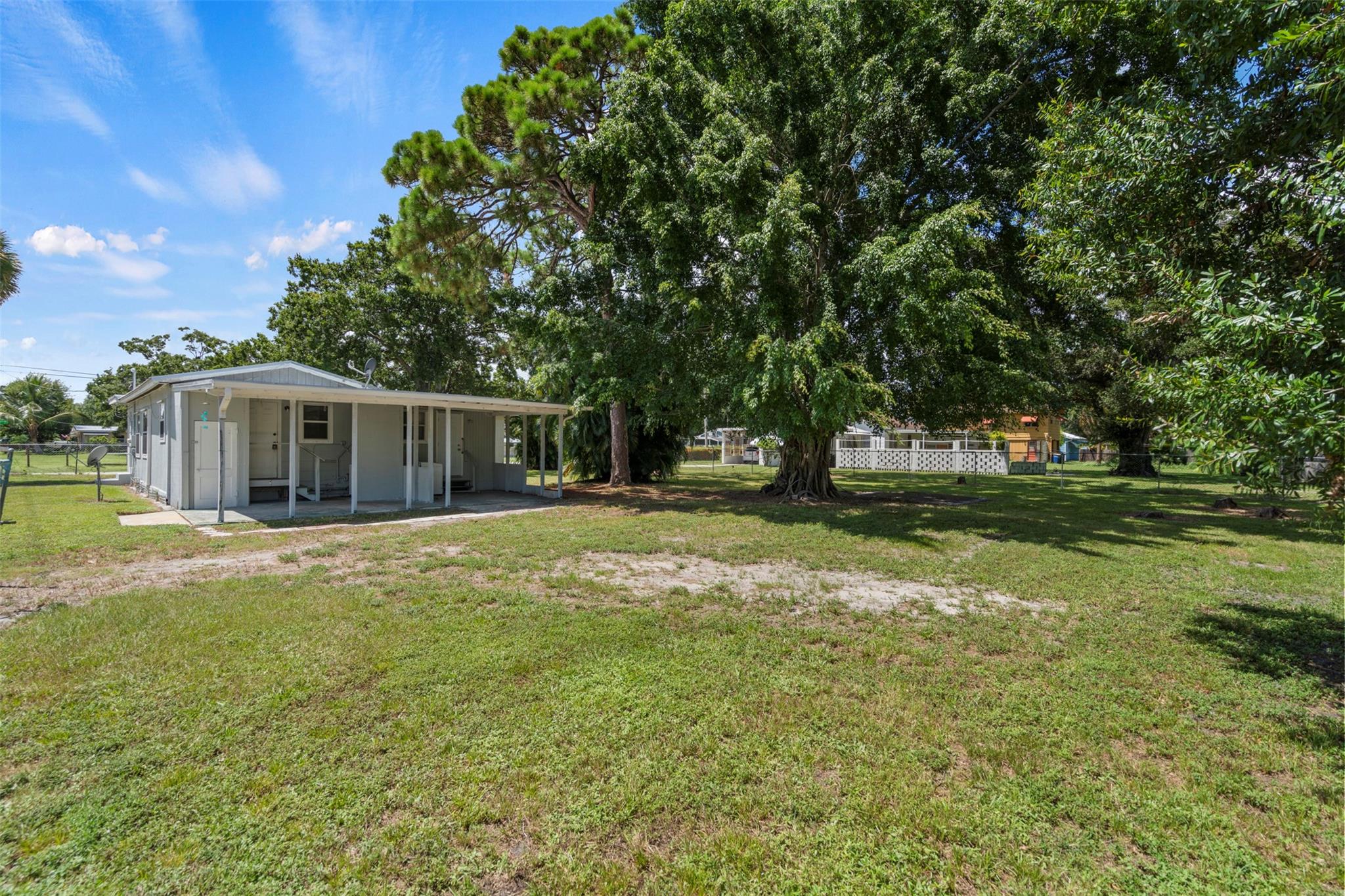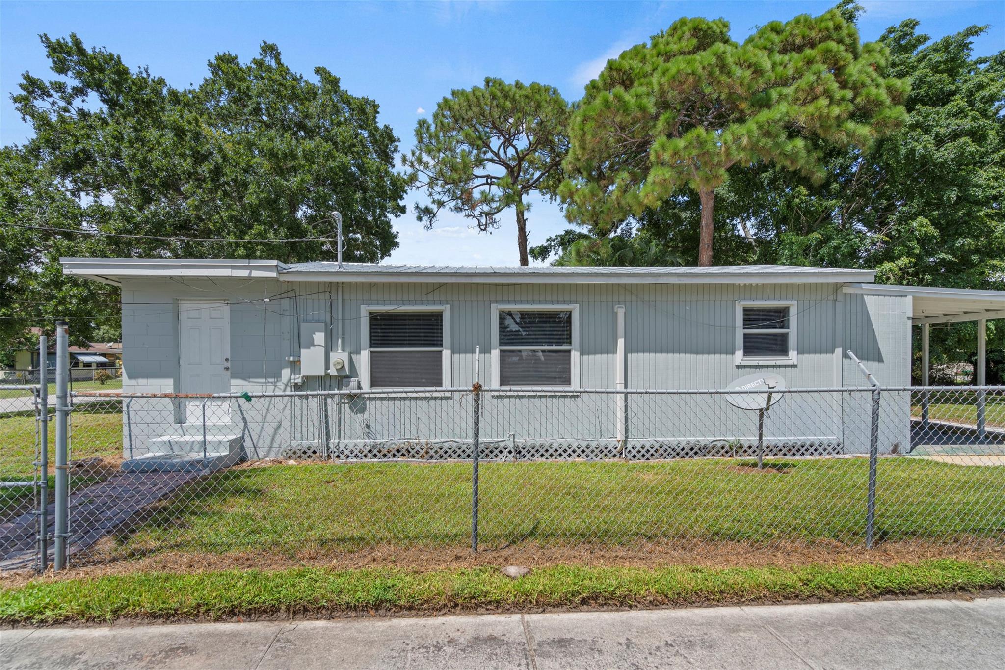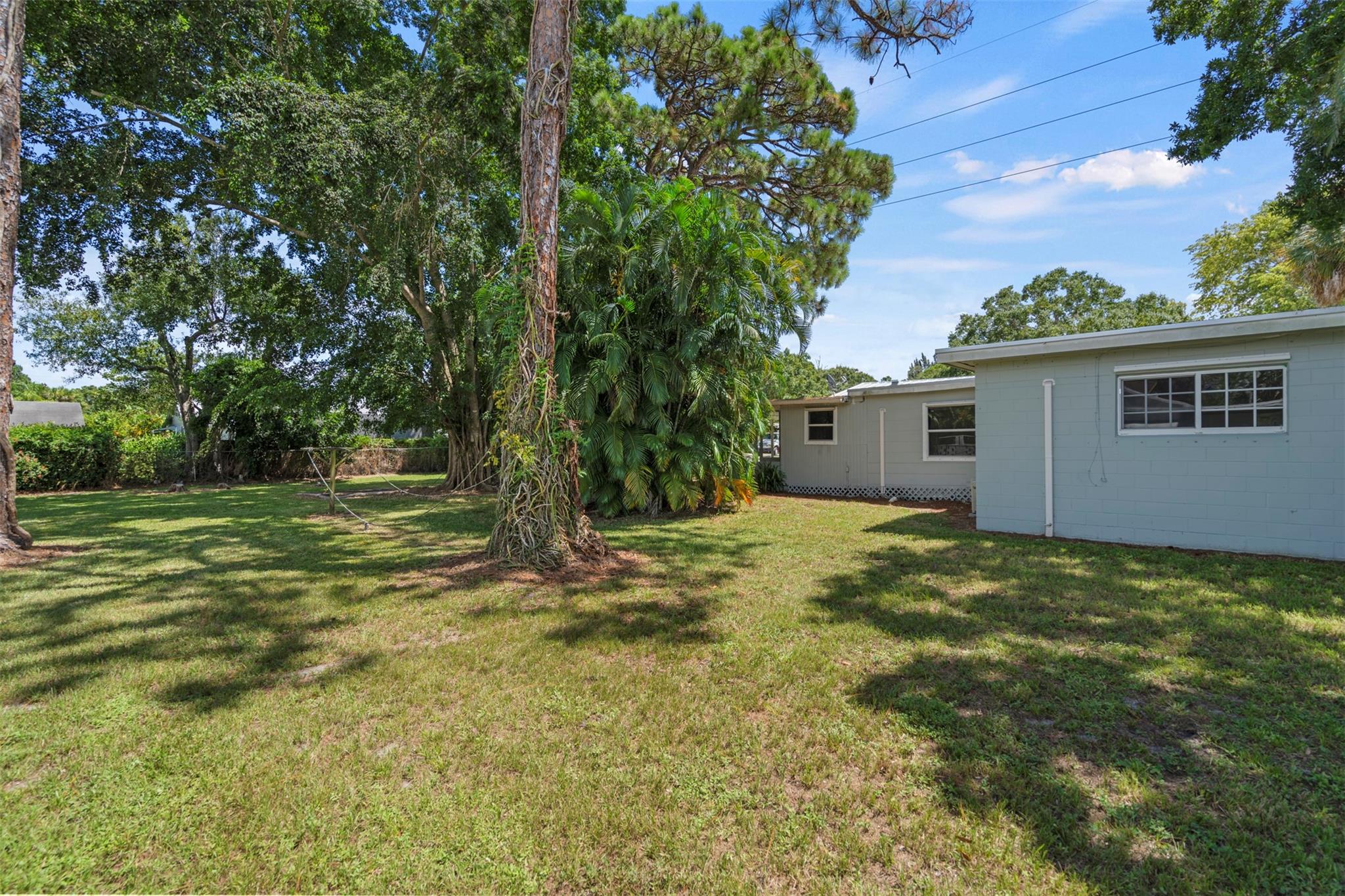 Spacious 3 bedroom, 2 bathroom home on a fully fenced 1/3 acre lot! This open layout features a welcoming kitchen, large family room, and a versatile front bonus room perfect for a den, office, or formal dining. The master suite offers its own private entrance from the back porch. Ceramic tile flooring runs throughout, and the windows were updated in 2014. Enjoy the covered back porch overlooking the large yard—ideal for relaxing or entertaining. Major updates include a NEW roof and AC in 2023. Nestled in a quiet neighborhood yet close to schools, parks, shopping, dining, and beautiful beaches!