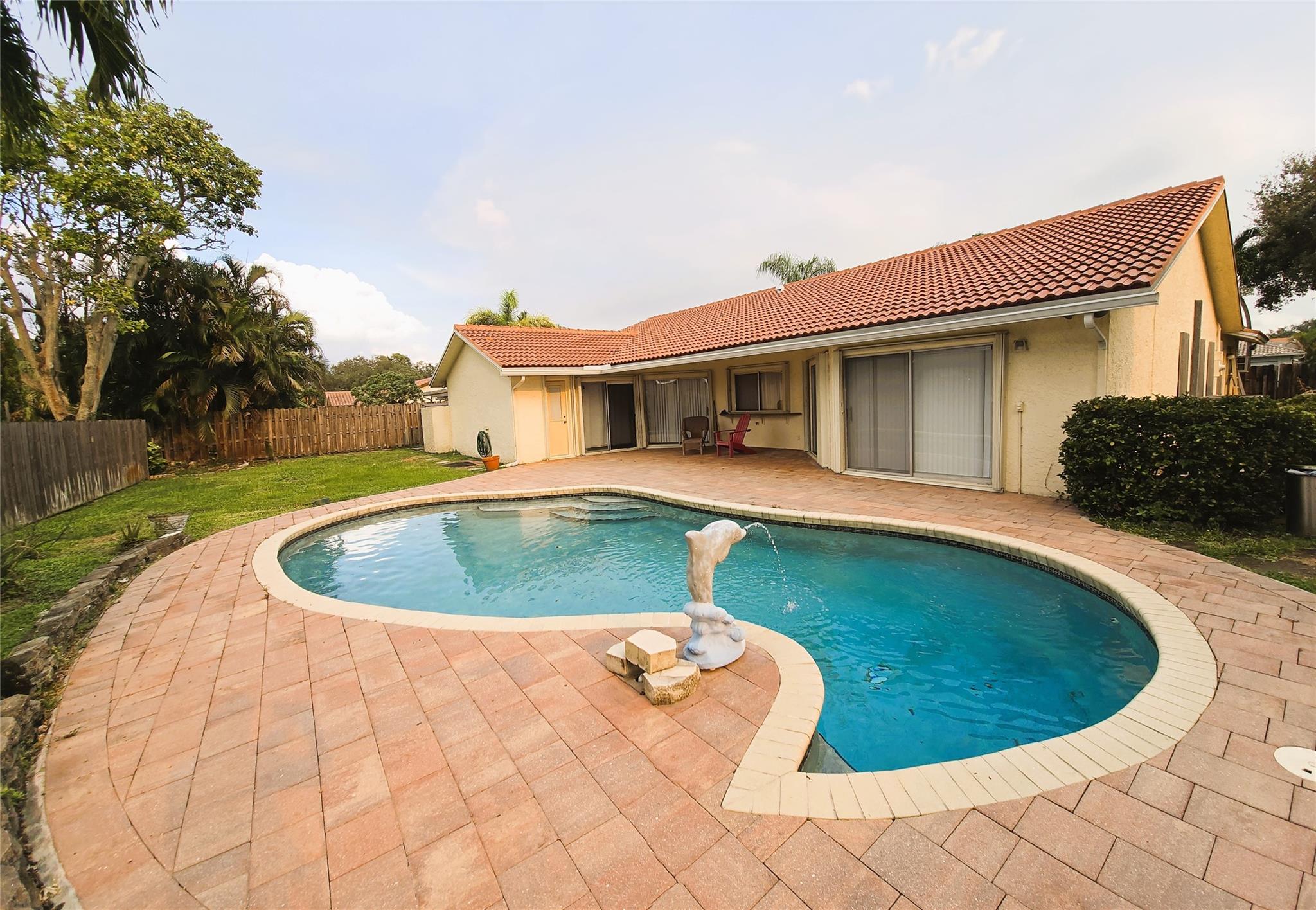 WELL MAINTAINED 4 BED 2 BATH HOME IN DESIREABLE JACARANDA LAKES WITH PRIVATE IN GROUND POOL, INTERIOR FEATURES UPGRADED KITCHEN WITH LONGATED WOOD CABINETRY, GRANITE COUNTER TOPS, ALL SAINLESS STEEL APPLIANCES, FLOORING COMBINATION OF TILE THROUGHOUT AND WOOD LAMINATE IN 2 BEDROOMS, REMODELED MASTER BATH, SPLIT BEDROOM PLAN FOR PRIVACY, NEW S-TILE ROOF,2024 FENCED YARD WITH DOUBLE GATED ON ONE SIDE FOR JET SKI OR ADDITIONAL PARKING, BEAUTIFUL OPEN POOL, PAVERS DECKING AND HUGE YARD. COMMUNITY OFFERS A JOGGING -WORKOUT TRAIL, WITH TENNIS COURTS ANF CHILD PLAY AREA. CENTRAL LOCATED COMMUNITY WITHIN MINUTES TO SAW GRASS MILLS MALL,595, I-75